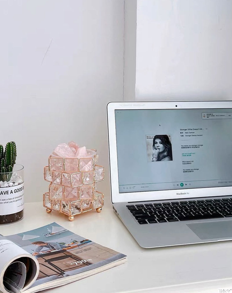 • 4겹 루빅스 큐브 크리스탈 램프 + 핑크 미네랄 스톤(녹지 않음) + 에센셜 오일