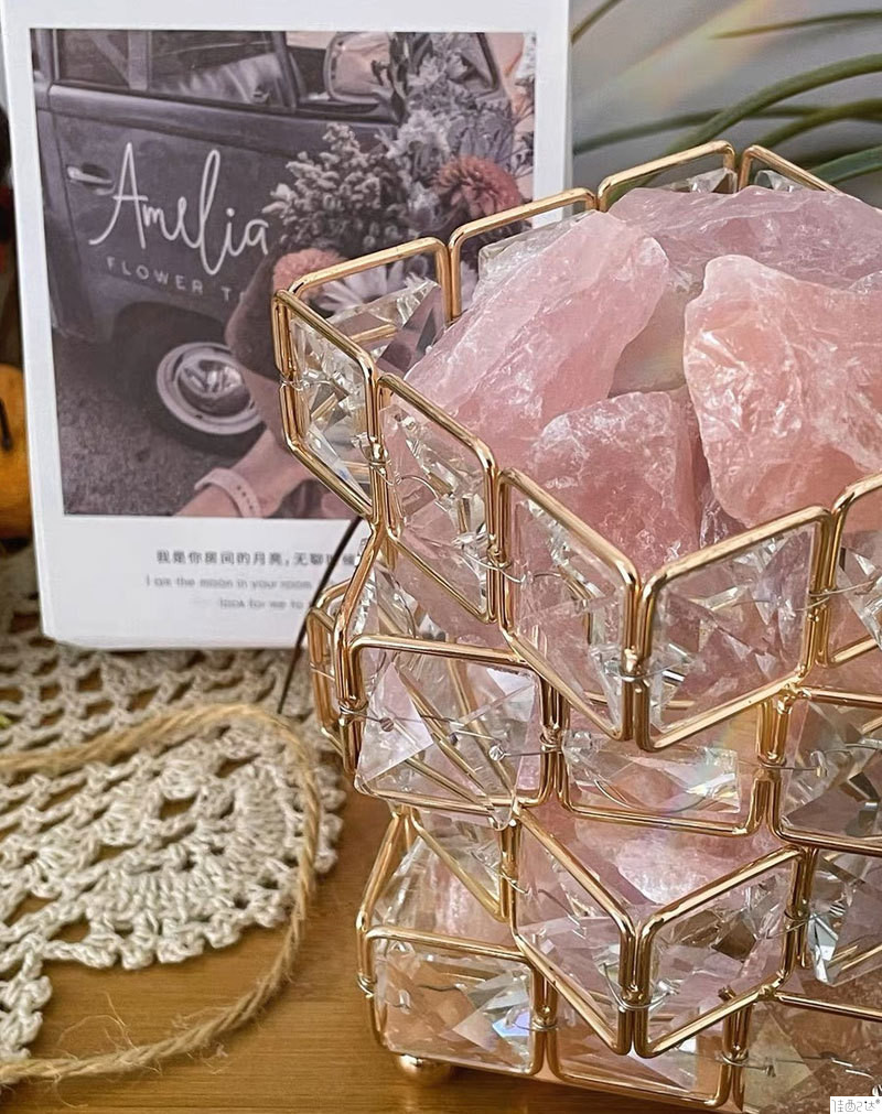 • 4층 루빅스 큐브 크리스탈 램프 + 핑크 미네랄 스톤(녹지 않음) + 선물 상자 포장