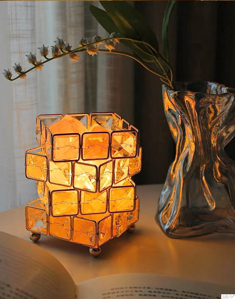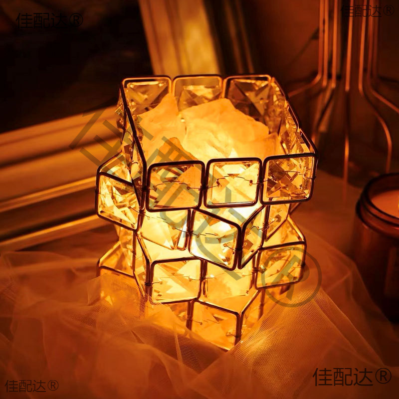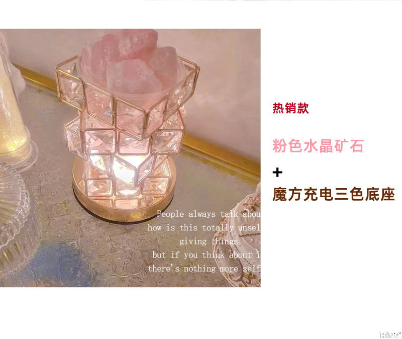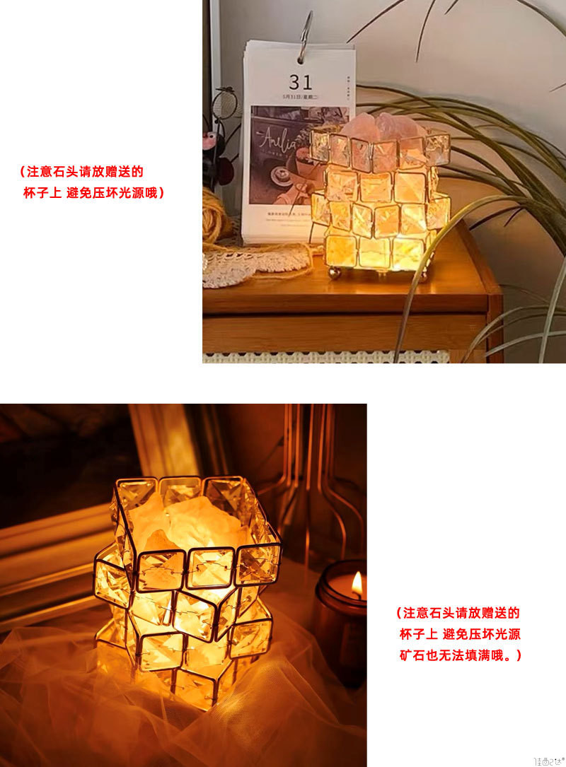 국경 간 루빅스 큐브 4 층 크리스탈 테이블 램프 천연 크리스탈 소금 스톤 침대 옆 야간 조명 공주 장식 인터넷 연예인 ins 소녀