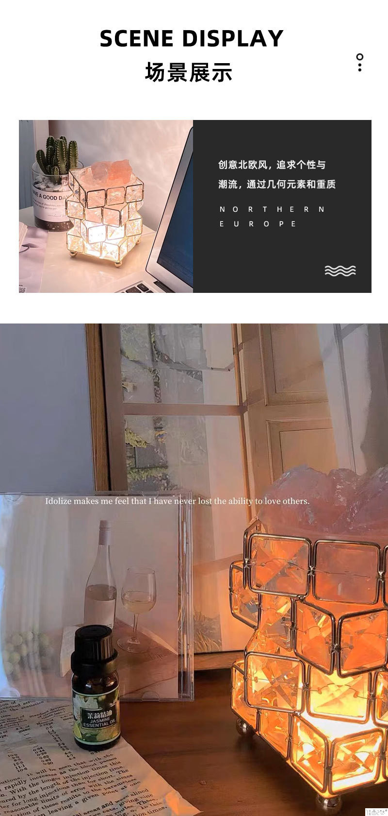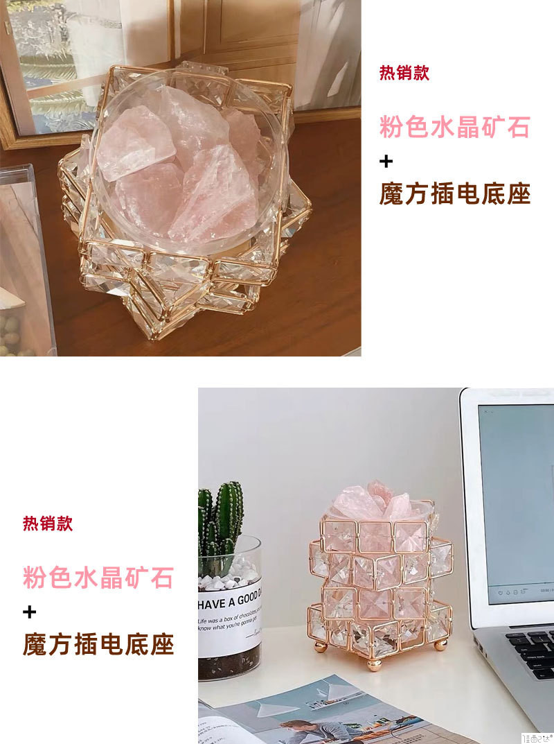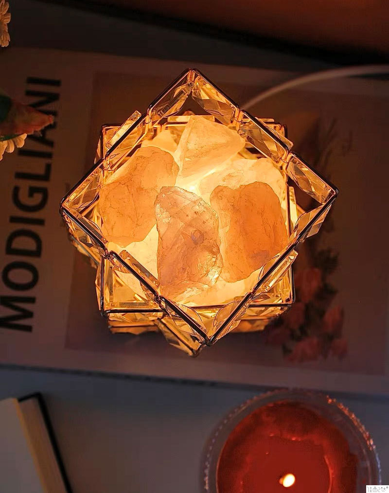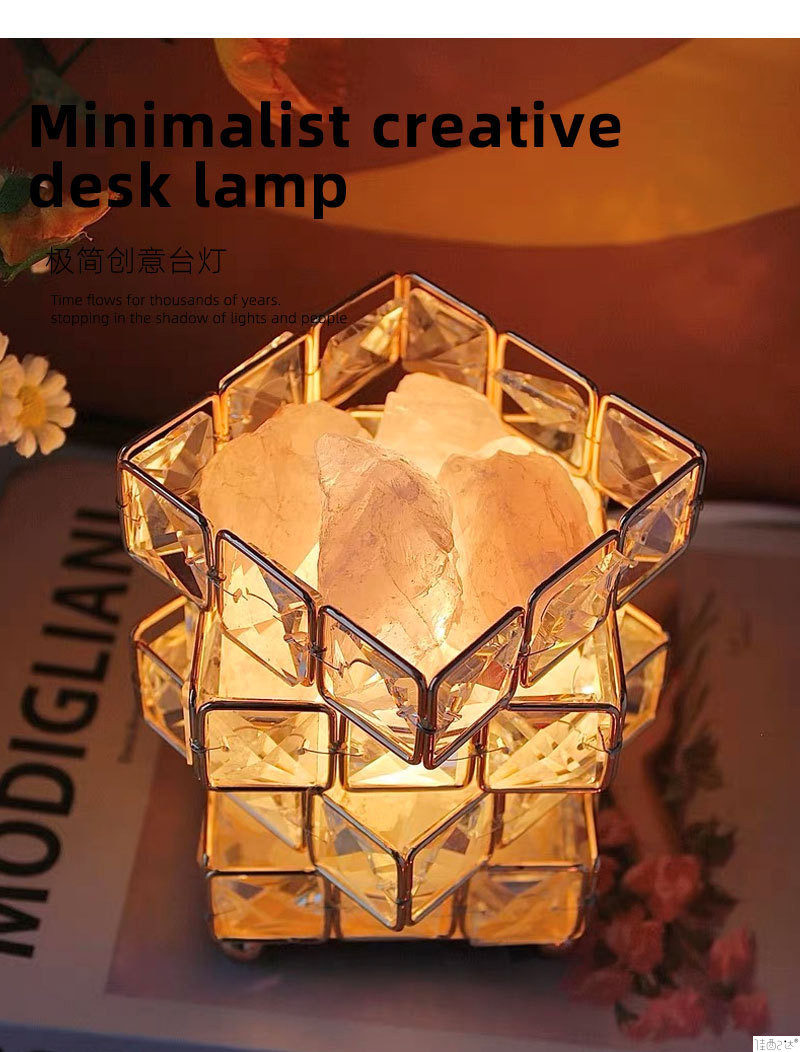 국경 간 루빅스 큐브 4 층 크리스탈 테이블 램프 천연 크리스탈 소금 스톤 침대 옆 야간 조명 공주 장식 인터넷 연예인 ins 소녀