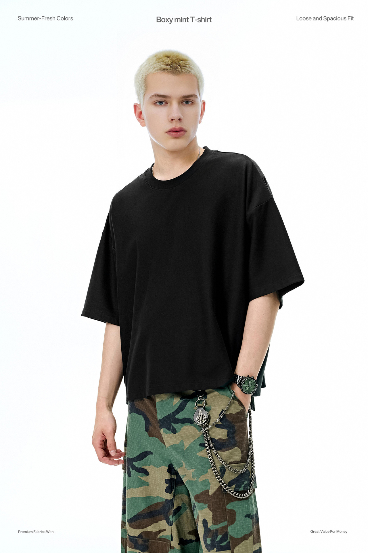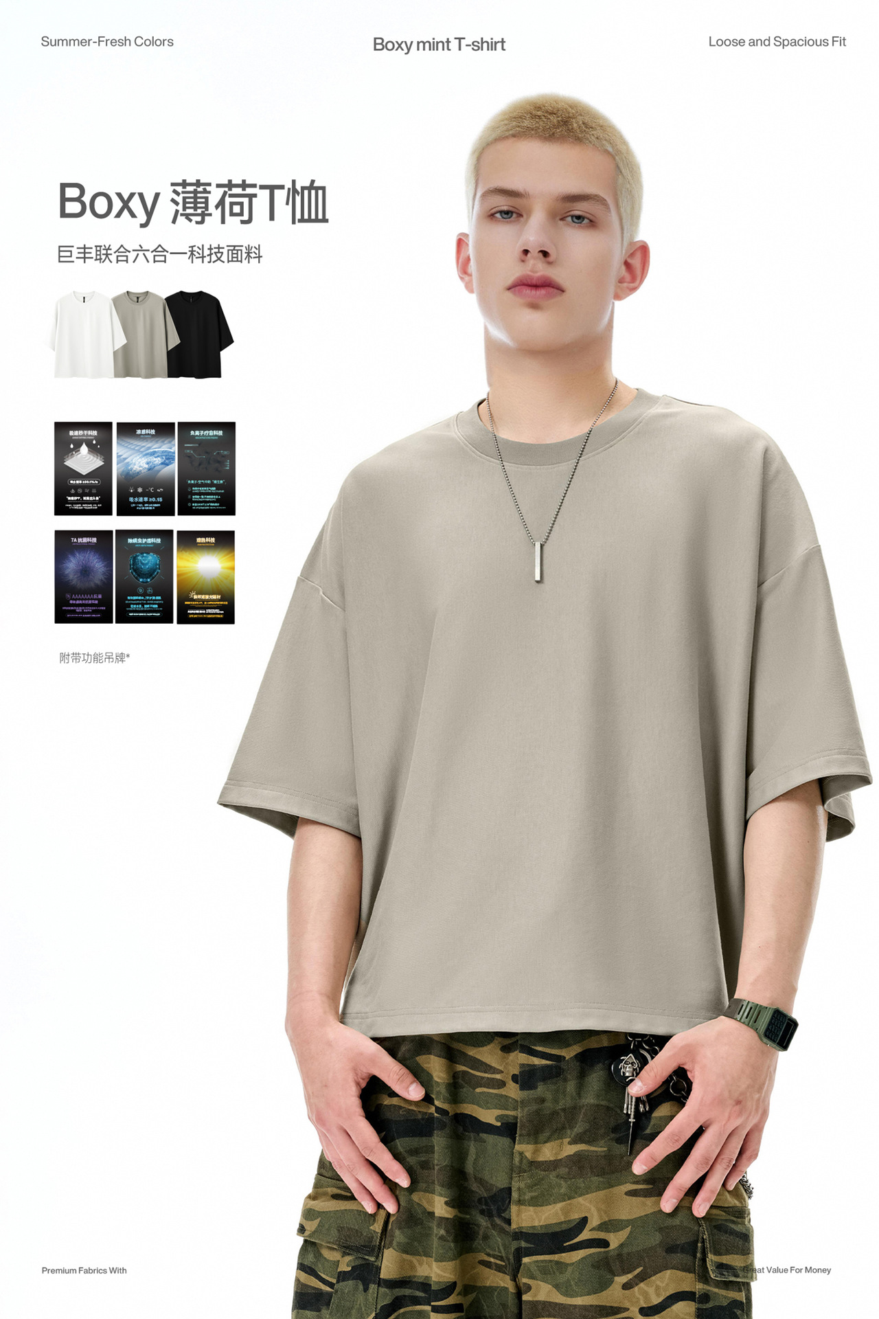 Jie Zhan 남성복 | Boxy Mint 티셔츠 2025 봄/여름 새로운 6 대 1 기술 쿨 빠른 건조 짧은 소매 반 소매스토어 가기