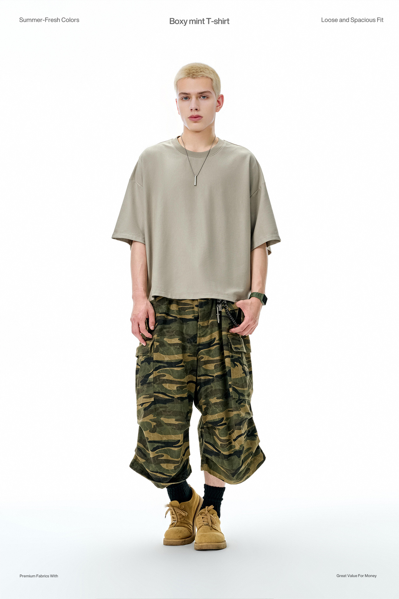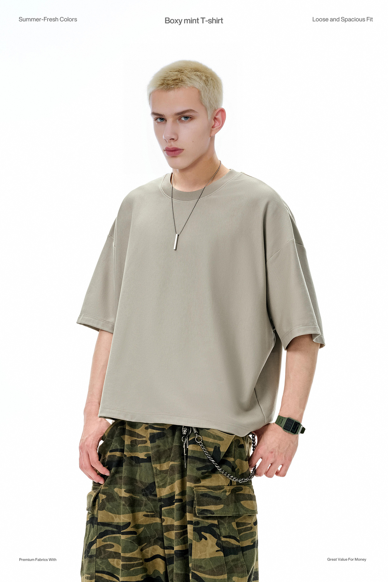 Jie Zhan 남성복 | Boxy Mint 티셔츠 2025 봄/여름 새로운 6 대 1 기술 쿨 빠른 건조 짧은 소매 반 소매