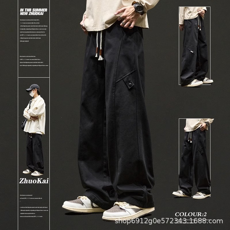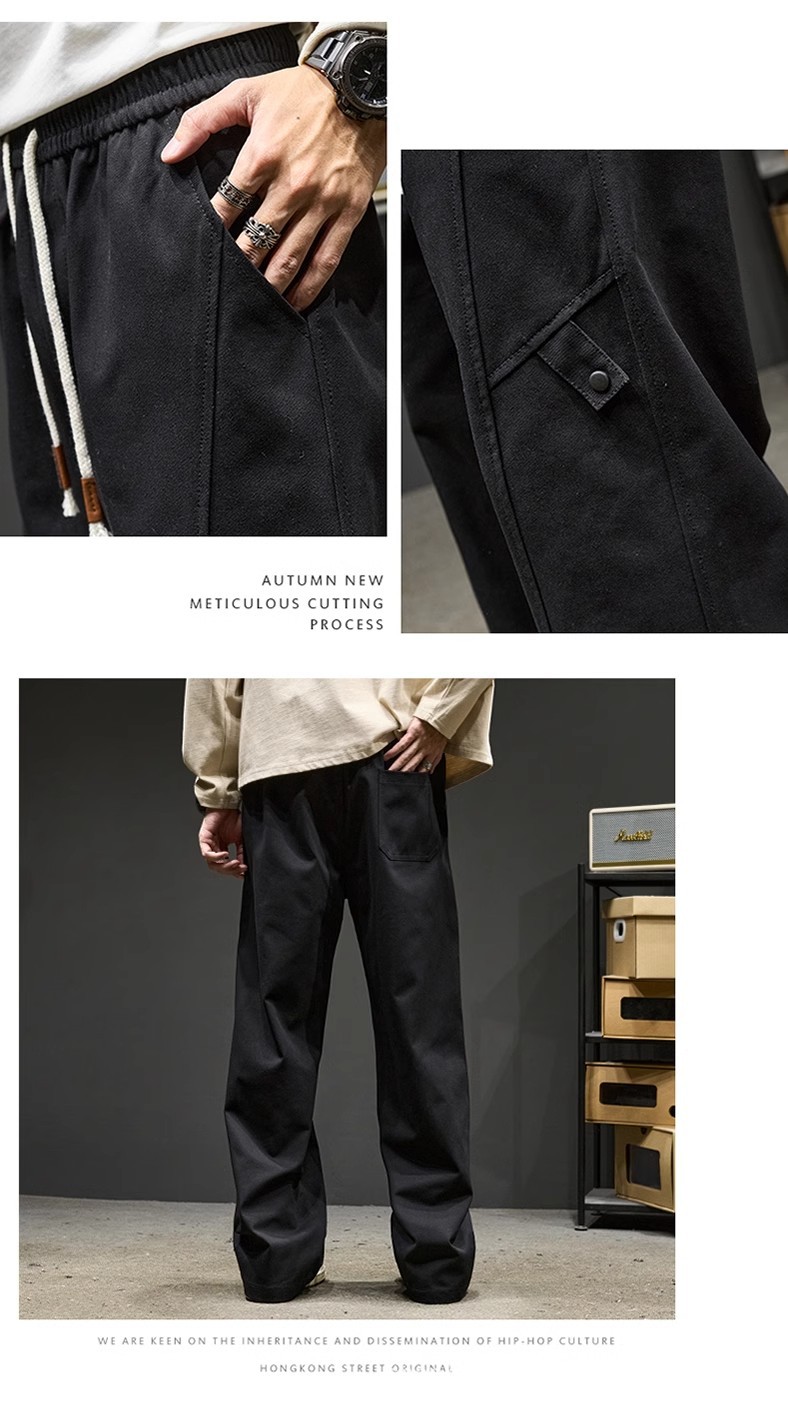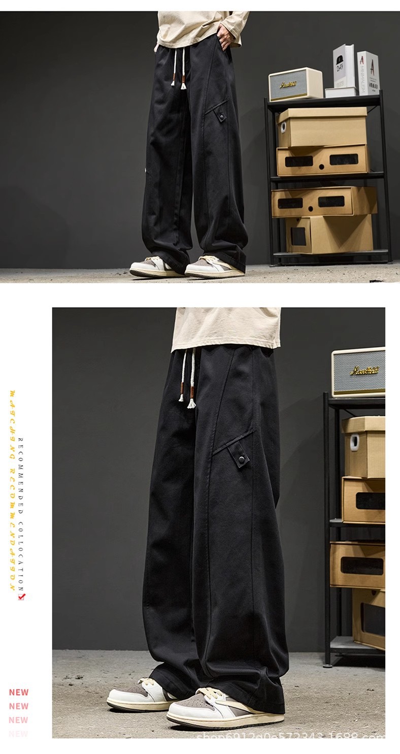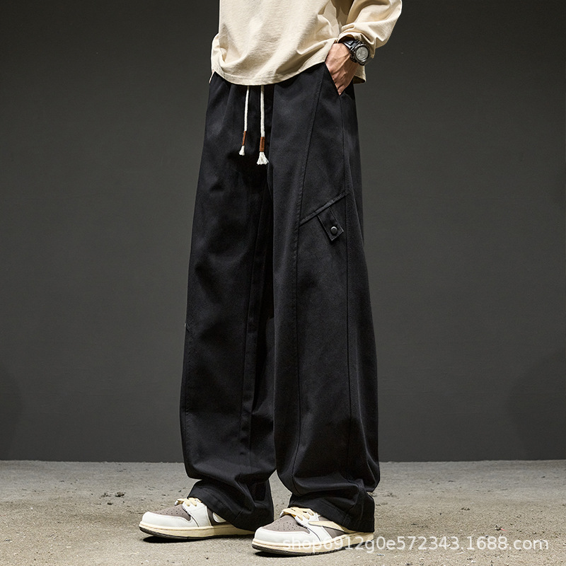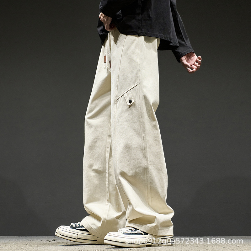 고급 남성용 봄 캐주얼 팬츠, 아메리칸 스타일 작업복 바지, 루즈핏 스트레이트 롱 팬츠
