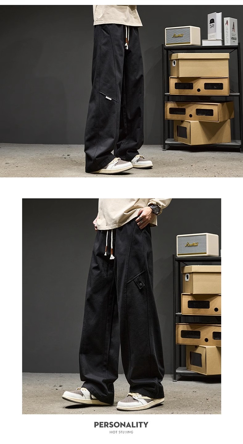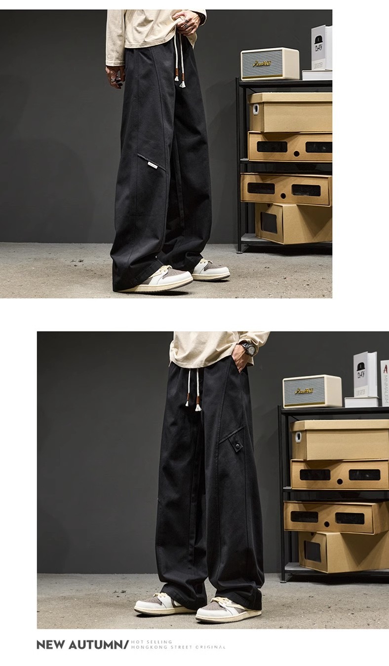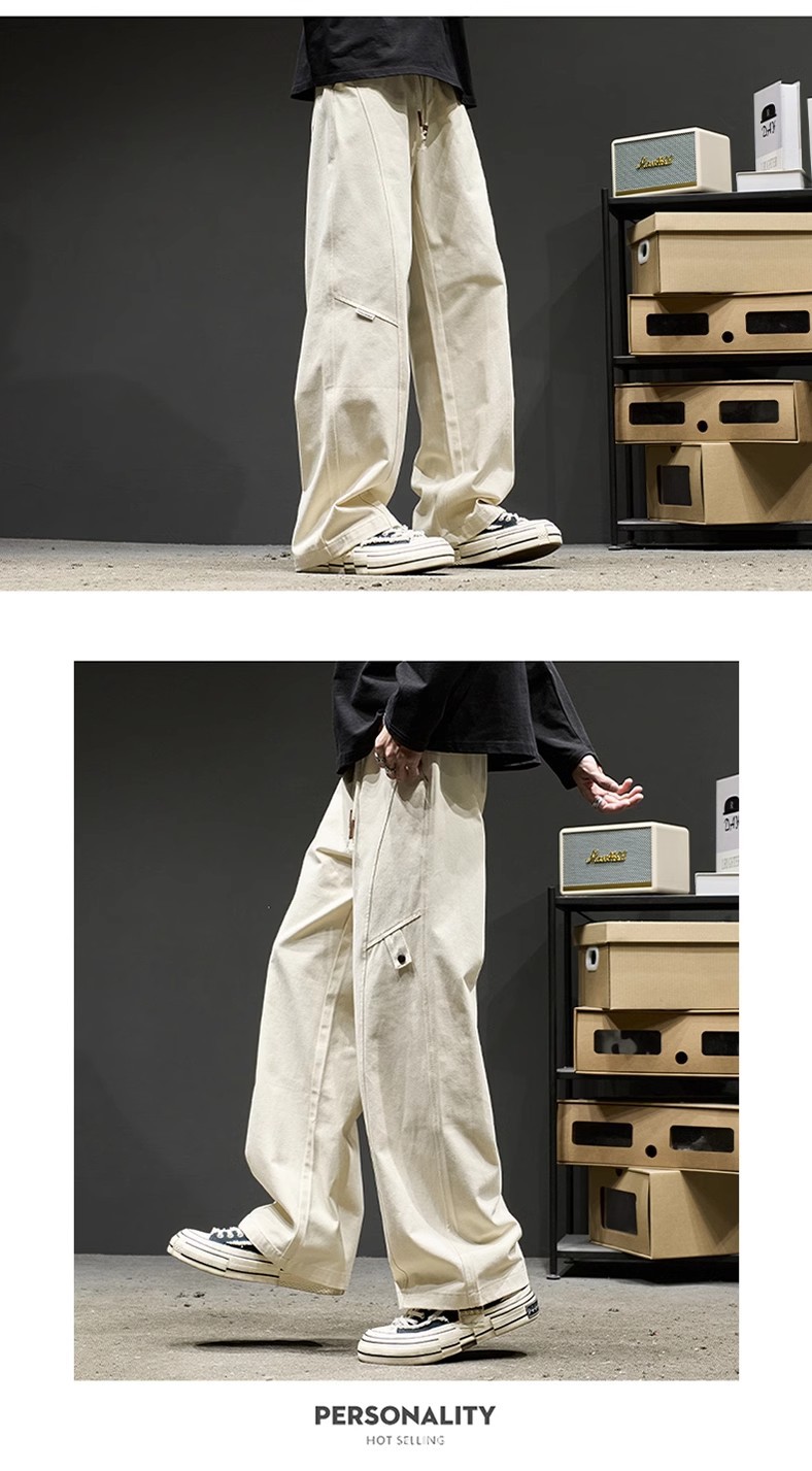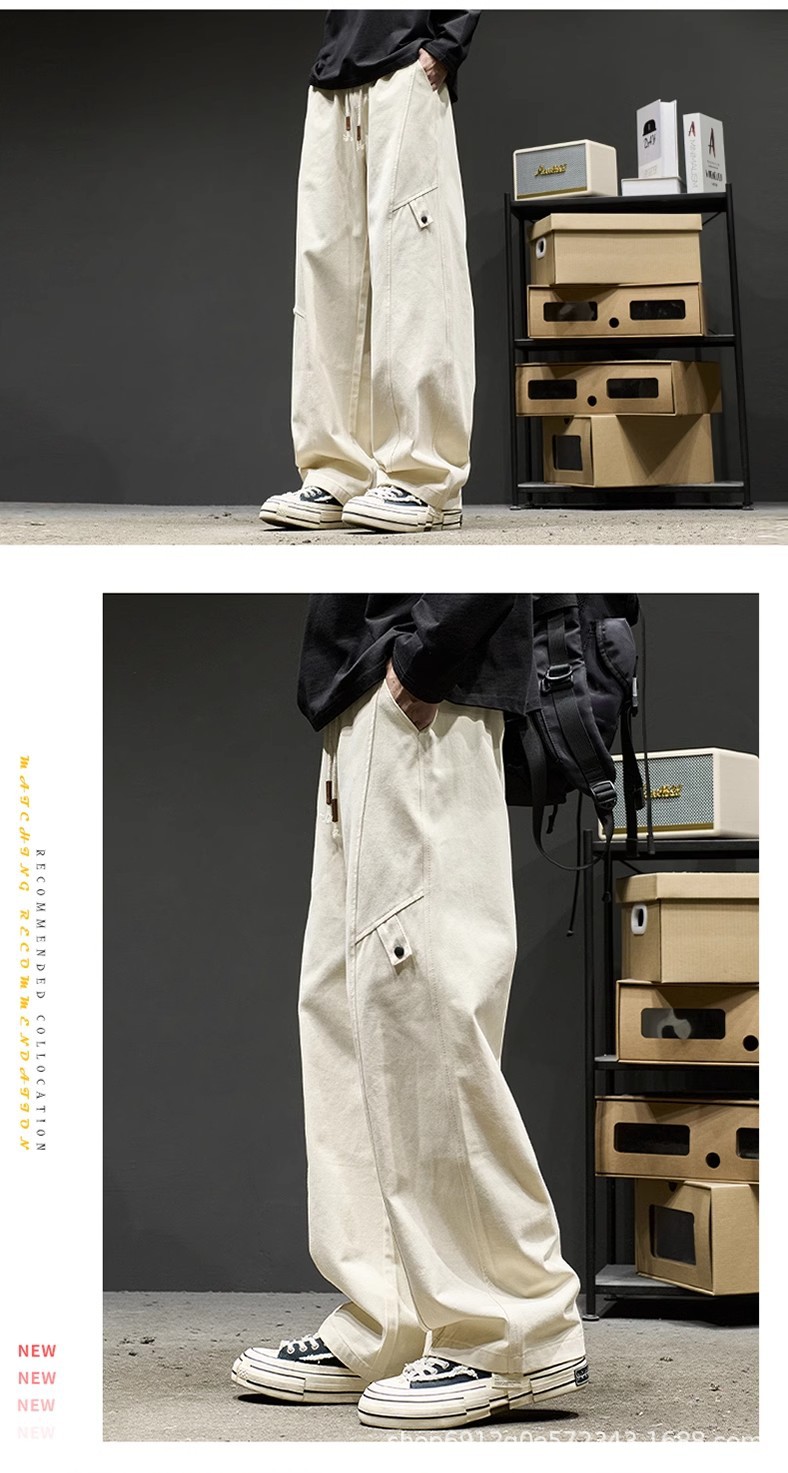 고급 남성용 봄 캐주얼 팬츠, 아메리칸 스타일 작업복 바지, 루즈핏 스트레이트 롱 팬츠