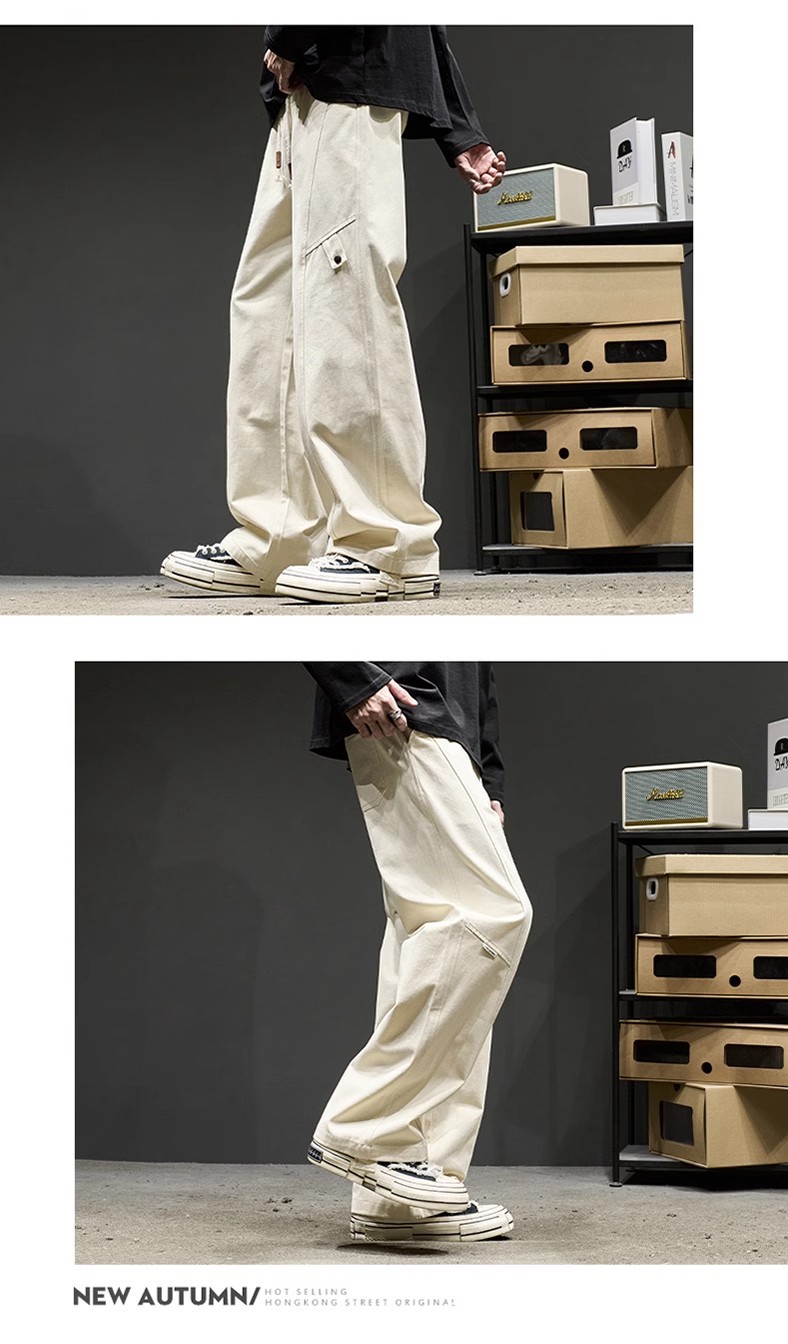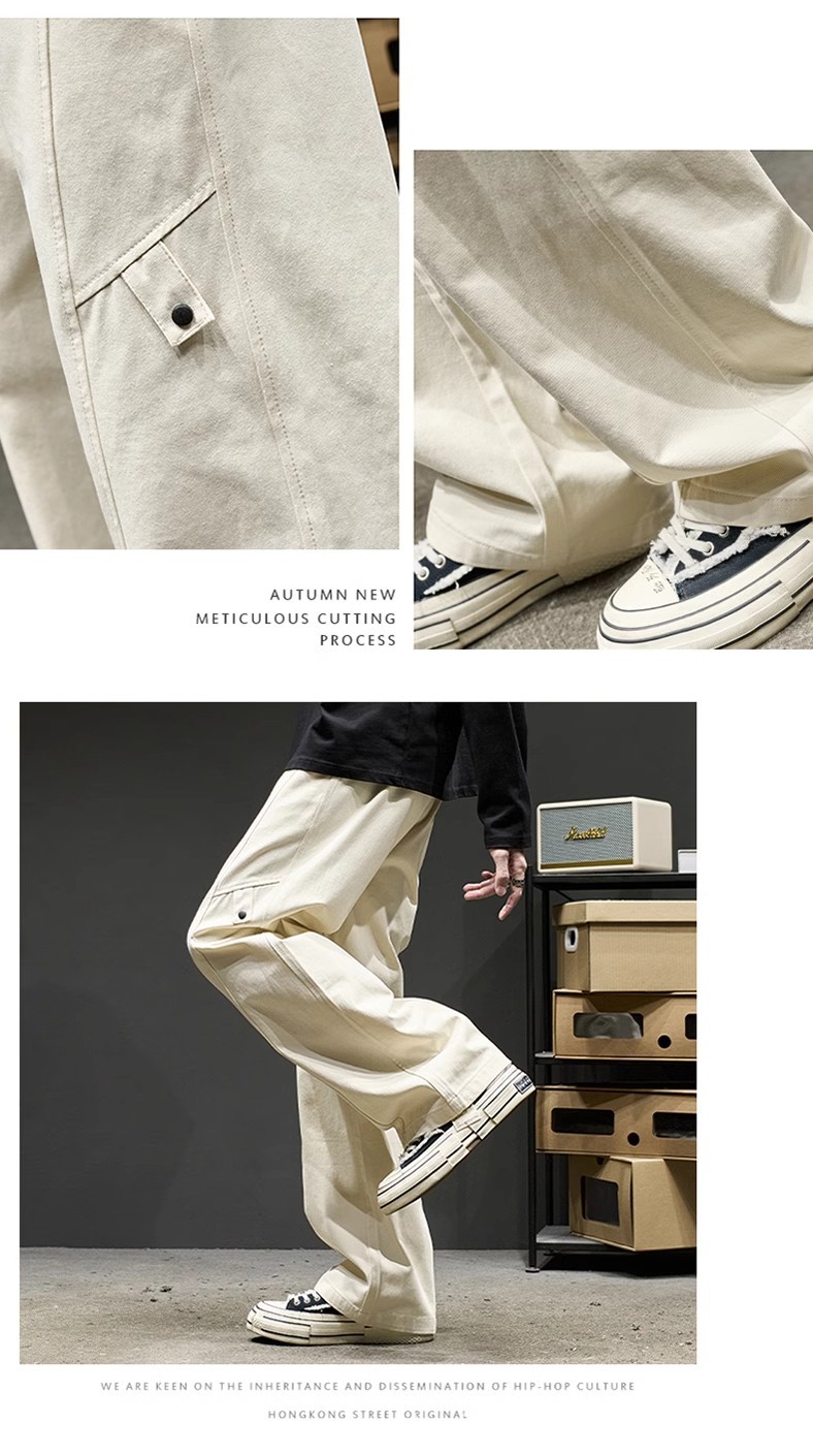 고급 남성용 봄 캐주얼 팬츠, 아메리칸 스타일 작업복 바지, 루즈핏 스트레이트 롱 팬츠스토어 가기