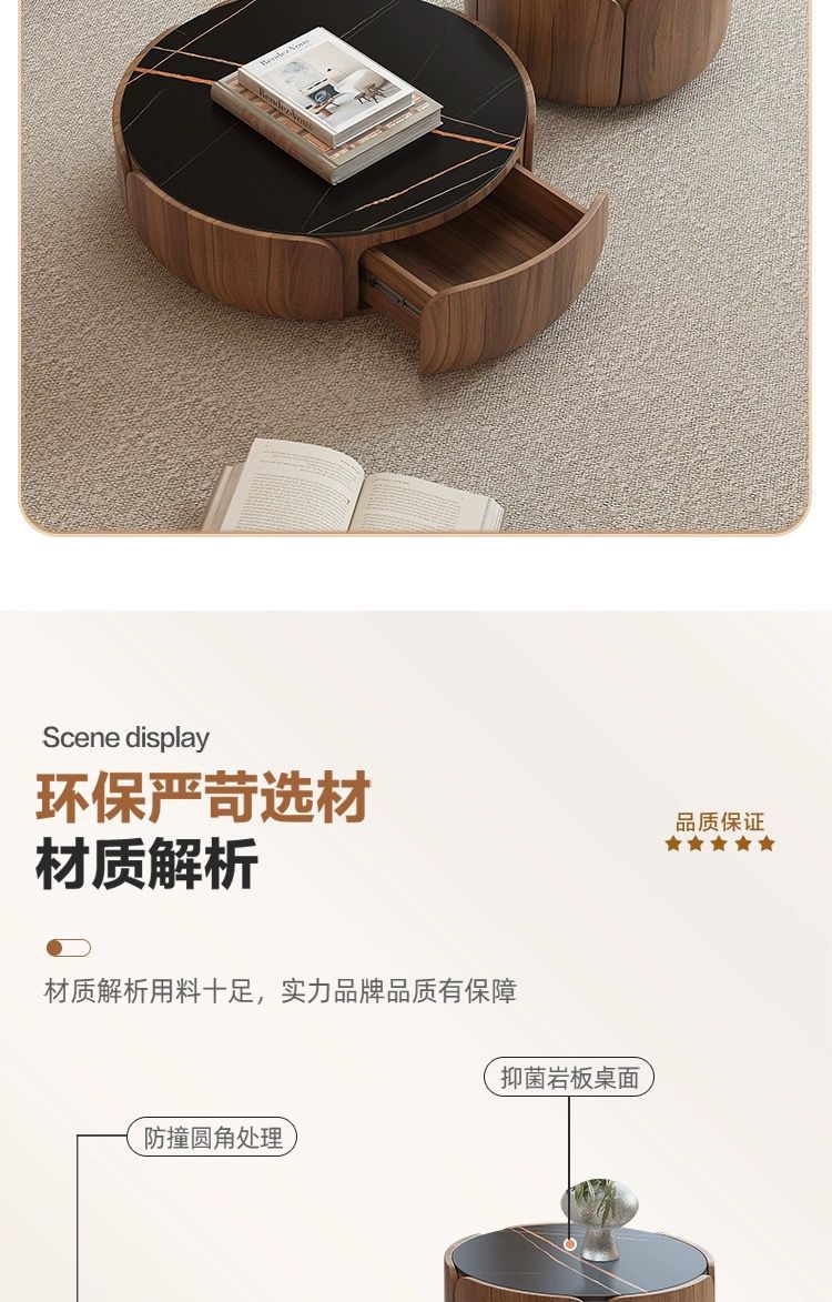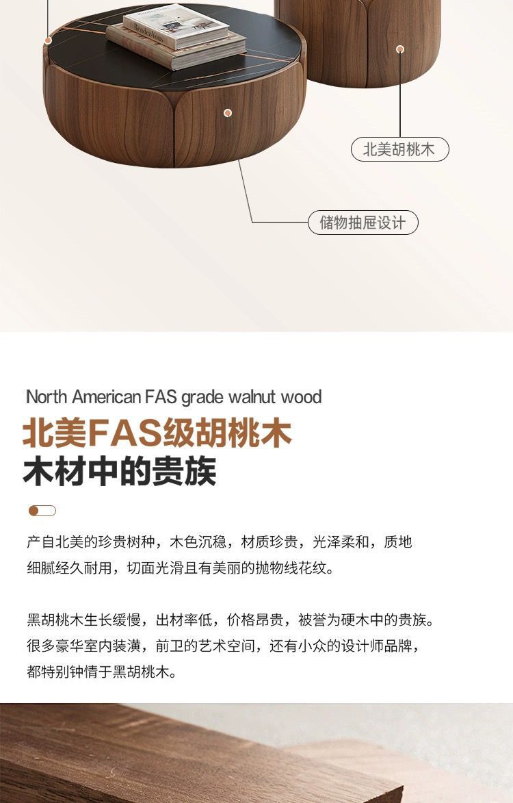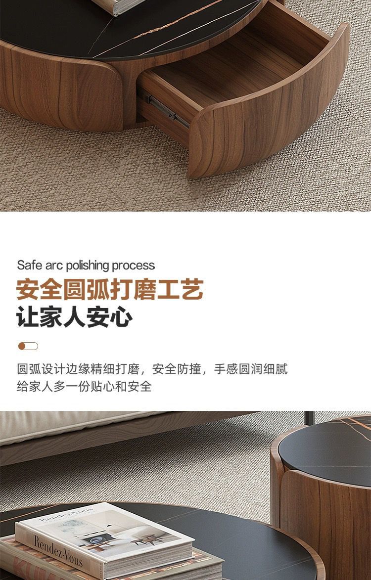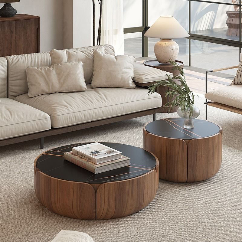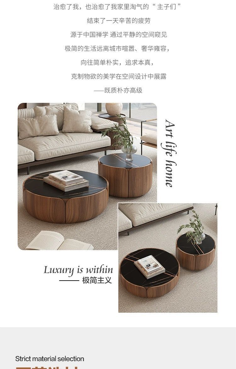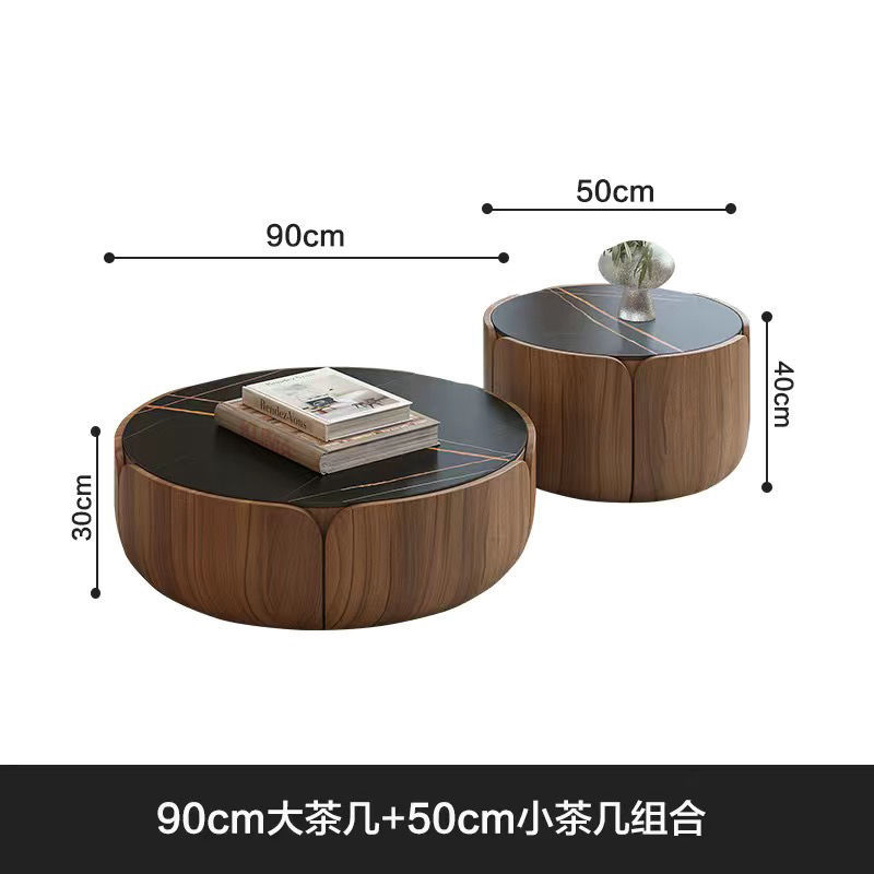 이탈리아 라운드 솔리드 우드 커피 테이블 조합 가정용 거실 작은 아파트 라이트 럭셔리 록 플레이트 라운드 커피 테이블 TV 간단한 현대스토어 가기