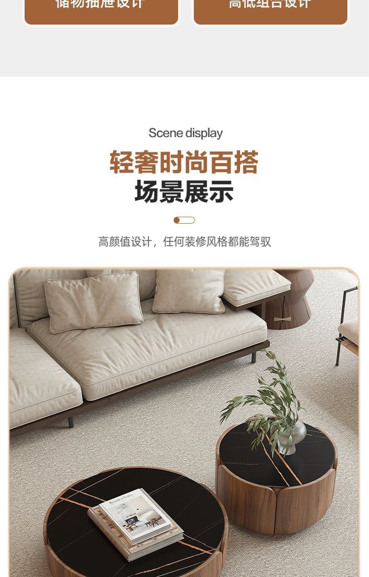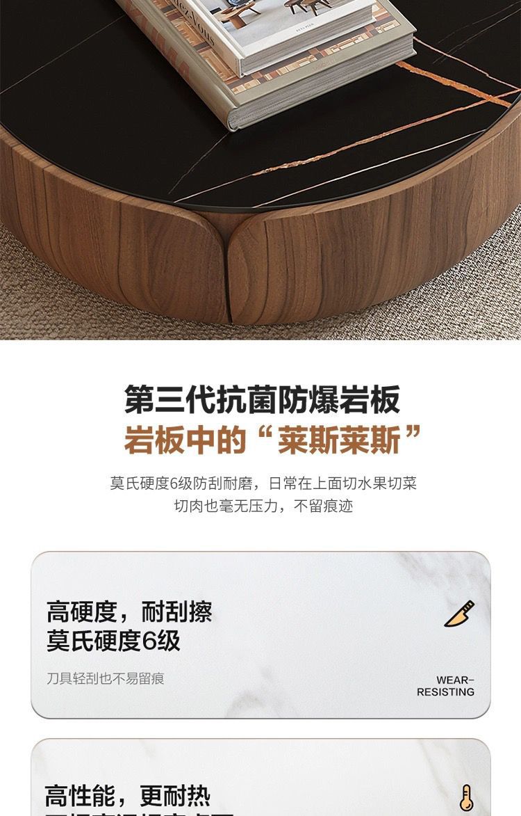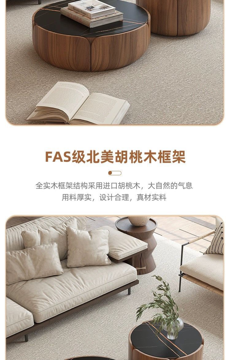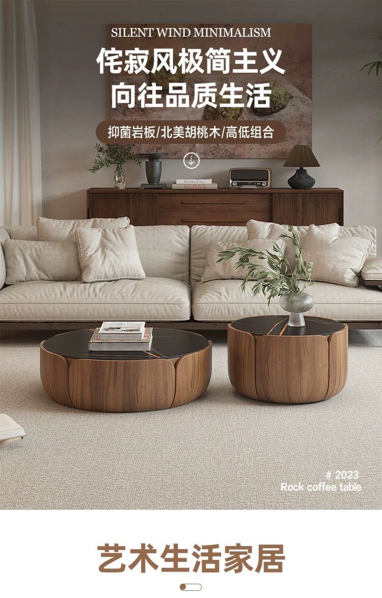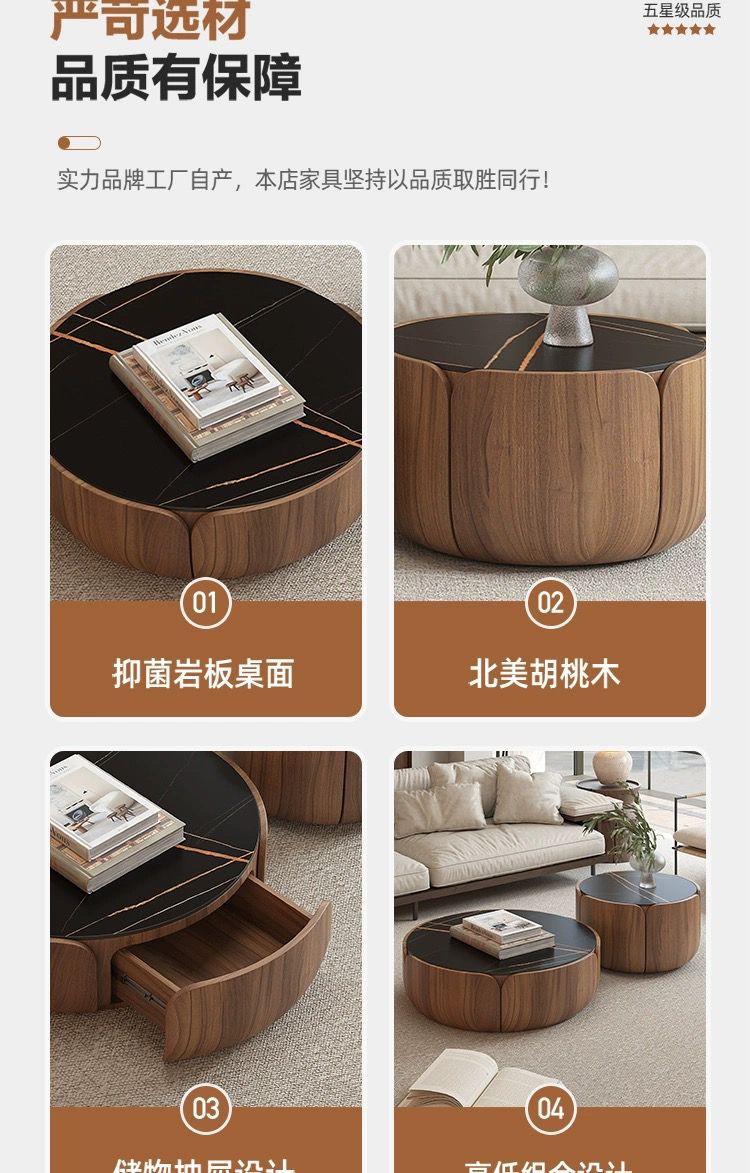 이탈리아 라운드 솔리드 우드 커피 테이블 조합 가정용 거실 작은 아파트 라이트 럭셔리 록 플레이트 라운드 커피 테이블 TV 간단한 현대스토어 가기