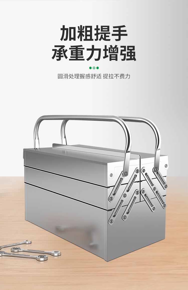 Baolian 스테인레스 스틸 도구 상자 3 층 접이식 가정용 자동차 다기능 휴대용 철 산업 등급 보관 상자