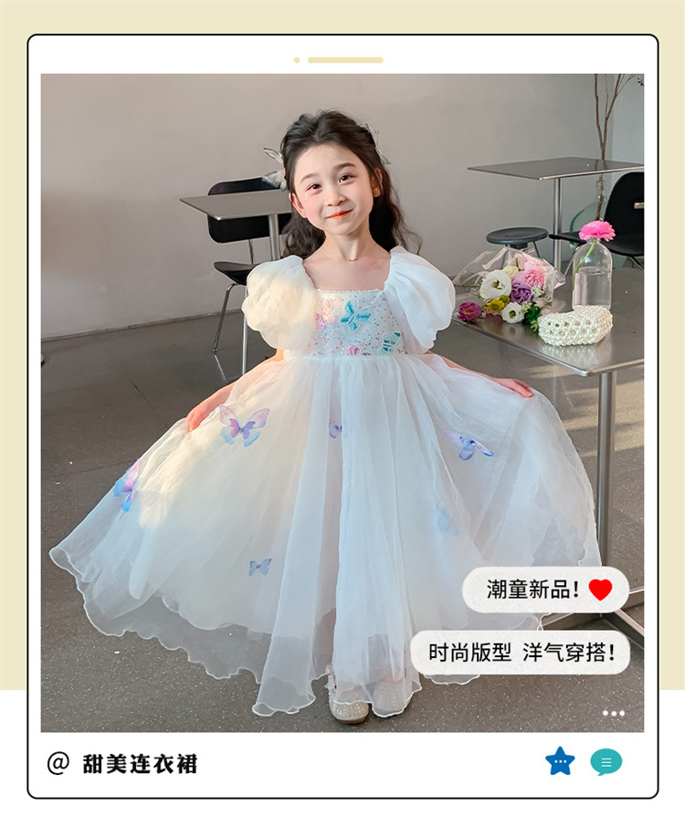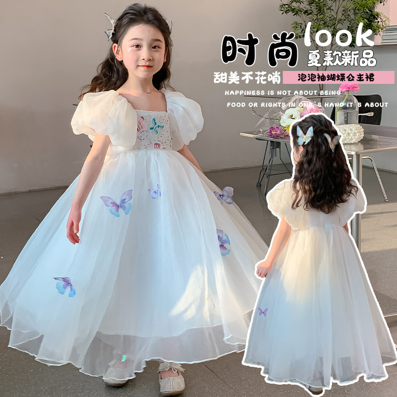 소녀의 여름 공주 원피스 어린이 원피스 2025 새로운 스타일 소녀 생일 원피스 서양식 아기의 여름 원피스스토어 가기