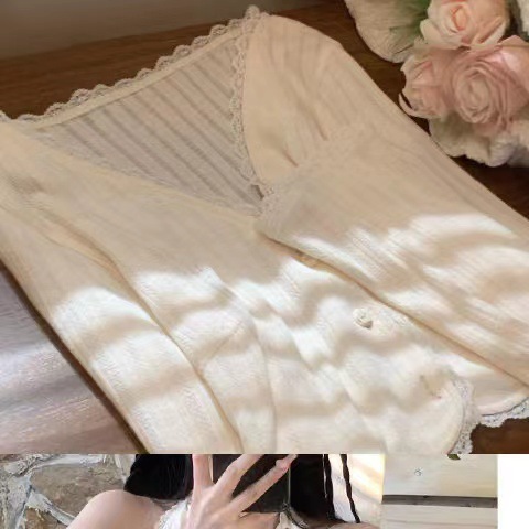 봄 새로운 프랑스 틈새 타이트 허리 공주 원피스 살구색 카디건 세트 여성 목 살구색 보여스토어 가기