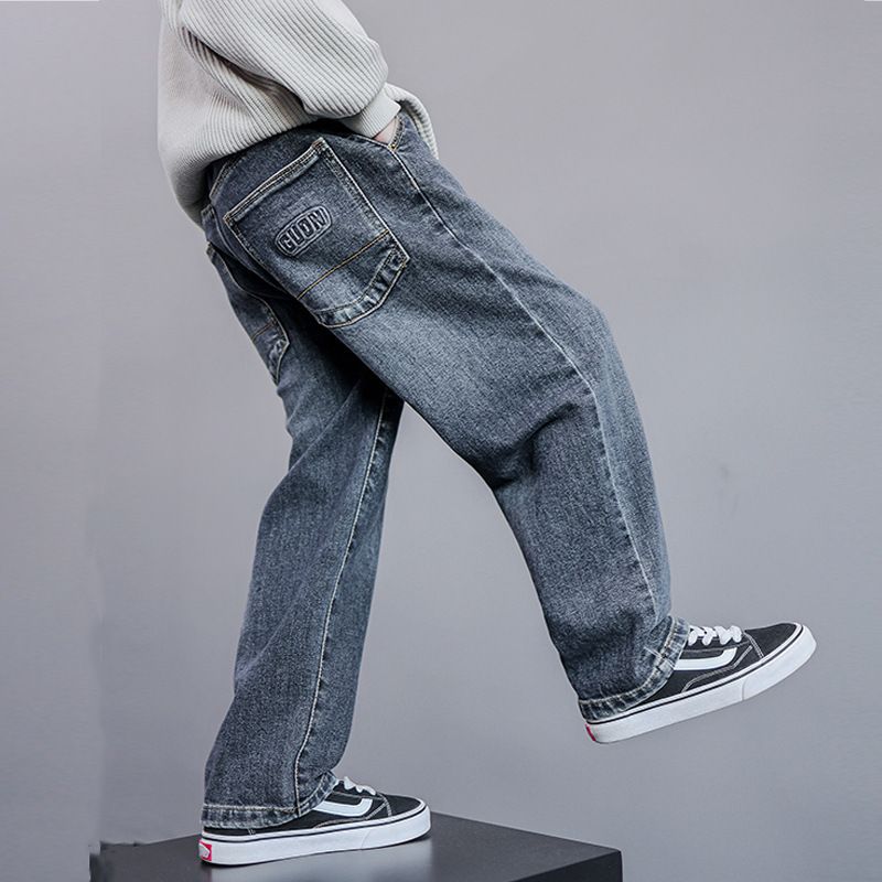 남학생 뒷포켓 인쇄 편지 청바지 가을 새 스타일 중대형 어린이 느슨한 캐주얼 넓은 다리 바지 서양식 어린이 대외 무역 바지
