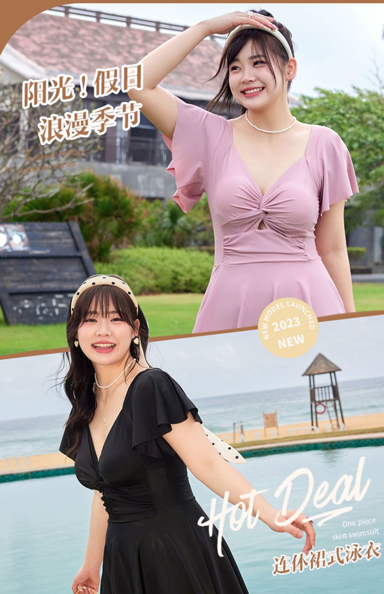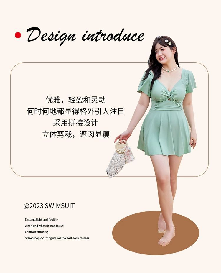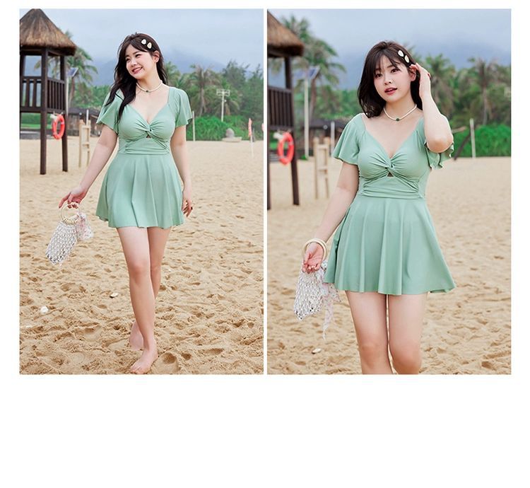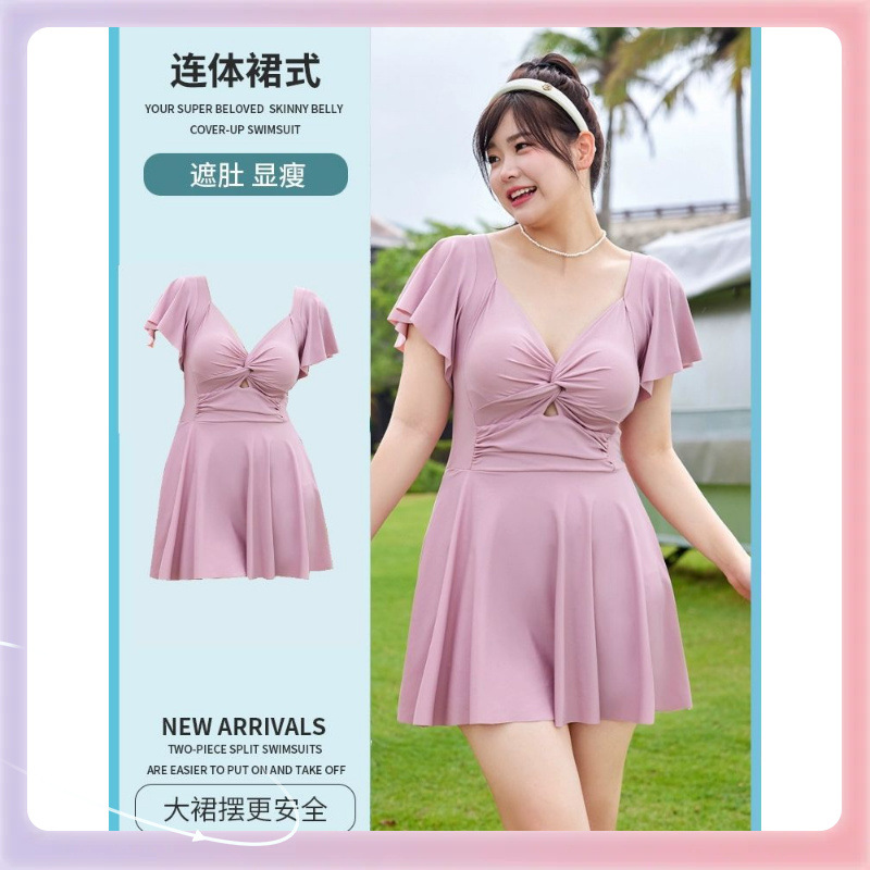 2024년 여성용 신상 수영복, 배를 커버해 온천욕에 적합, 슬리밍 및 살을 커버해주는 수영복, 스커트 스타일 원피스, 플러스 사이즈, 뚱뚱한 여성용 mm200스토어 가기