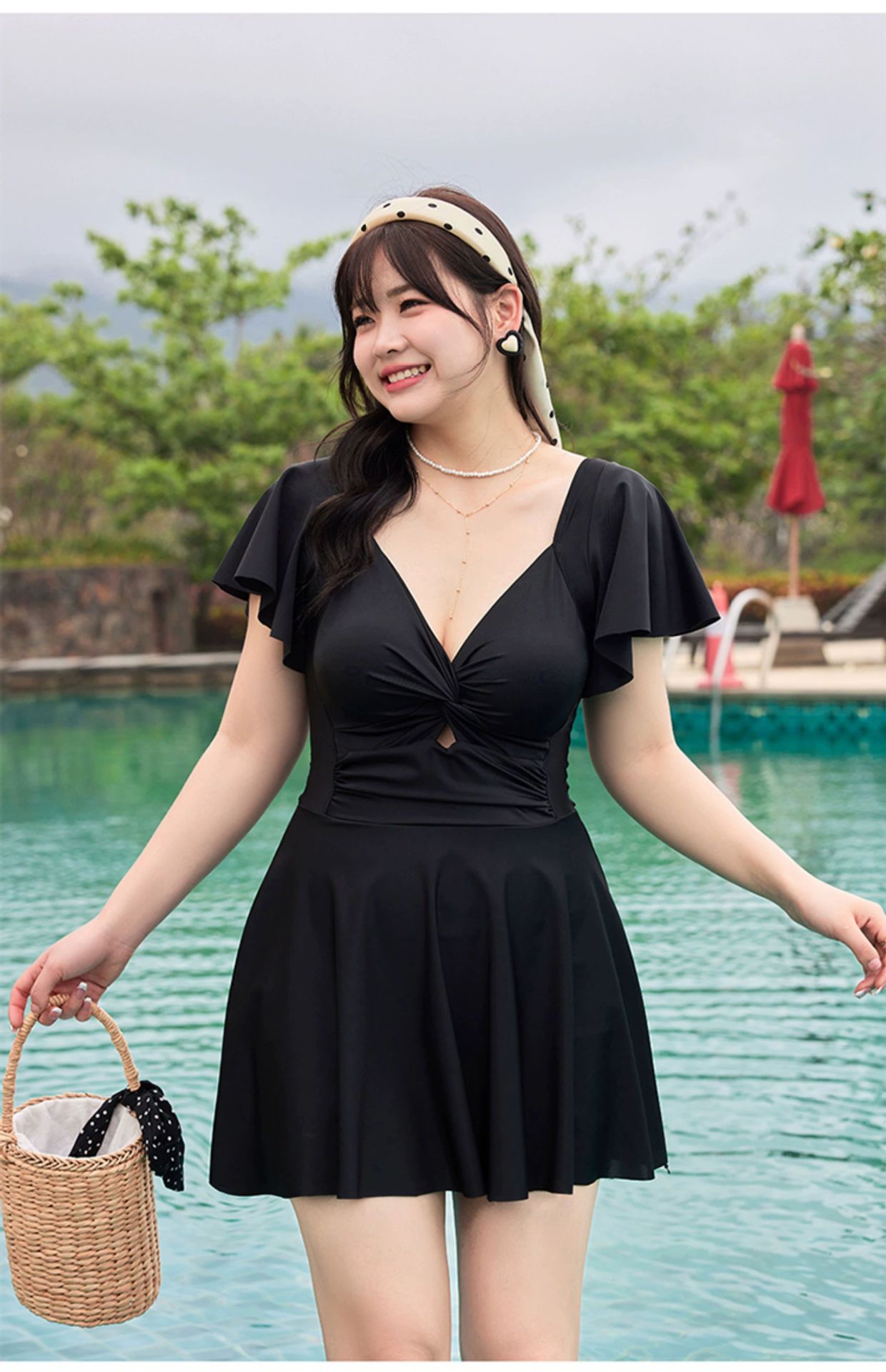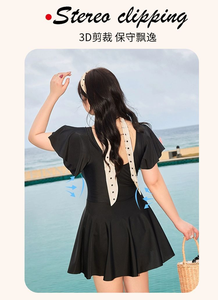2024년 여성용 신상 수영복, 배를 커버해 온천욕에 적합, 슬리밍 및 살을 커버해주는 수영복, 스커트 스타일 원피스, 플러스 사이즈, 뚱뚱한 여성용 mm200