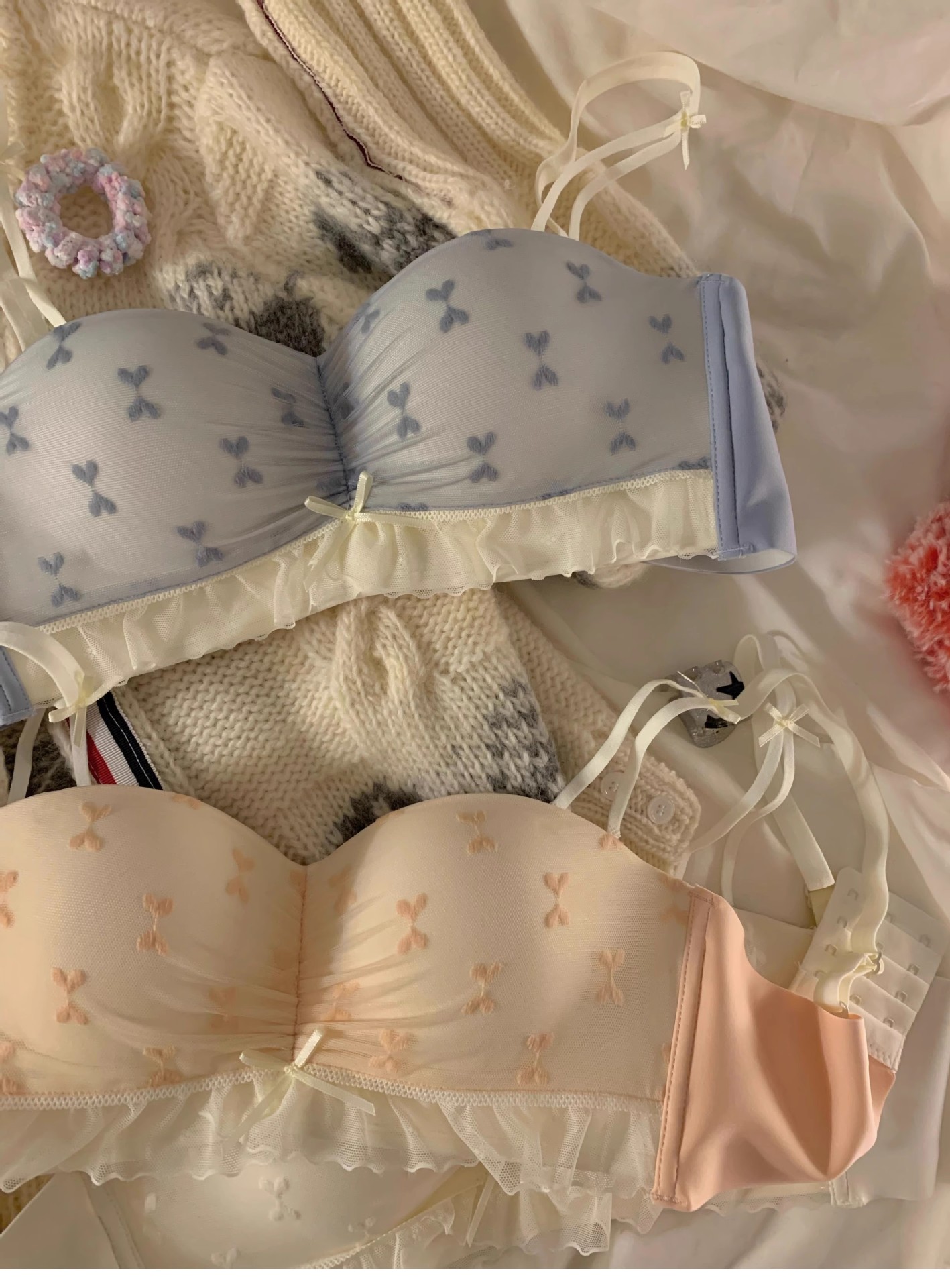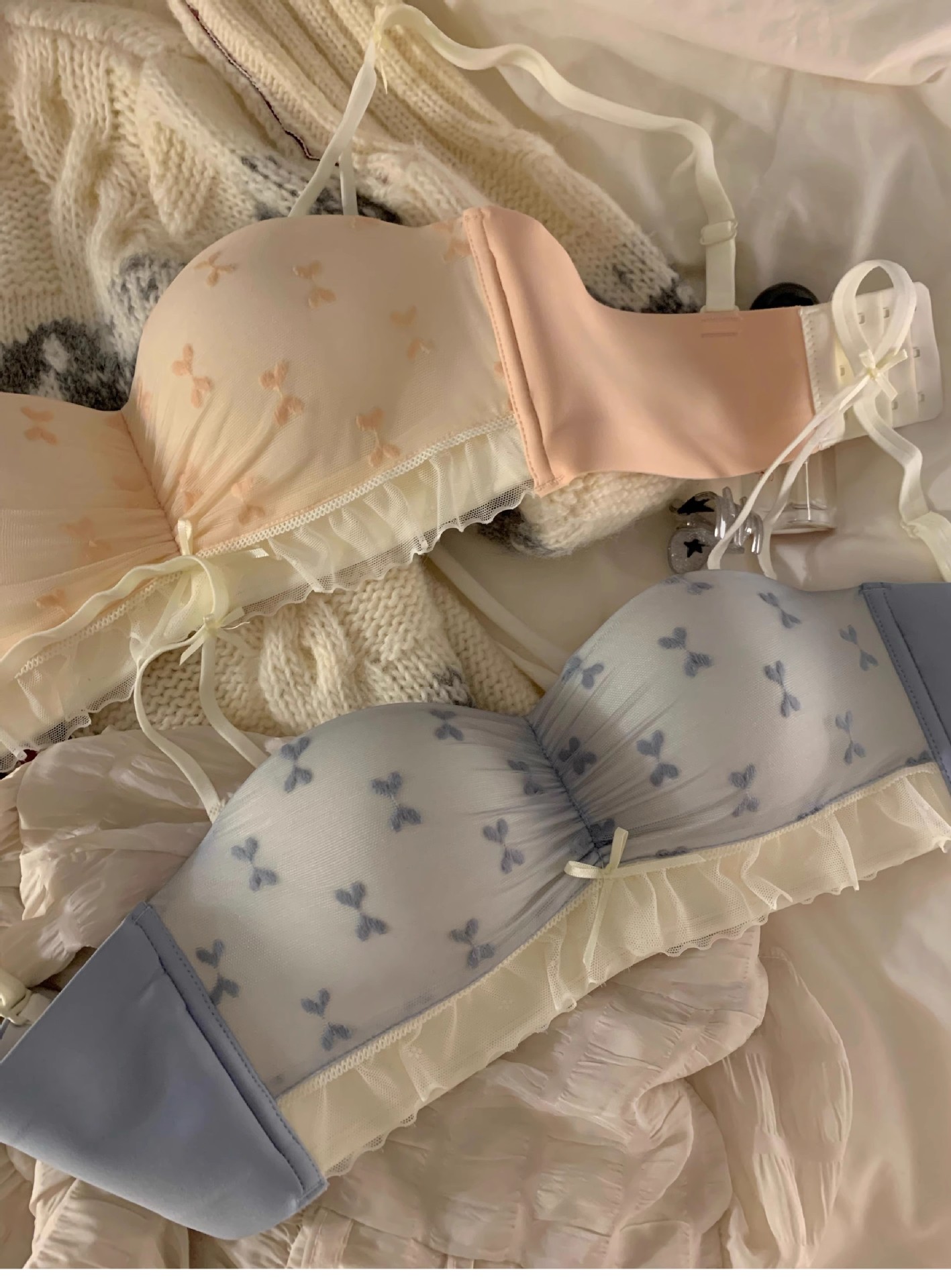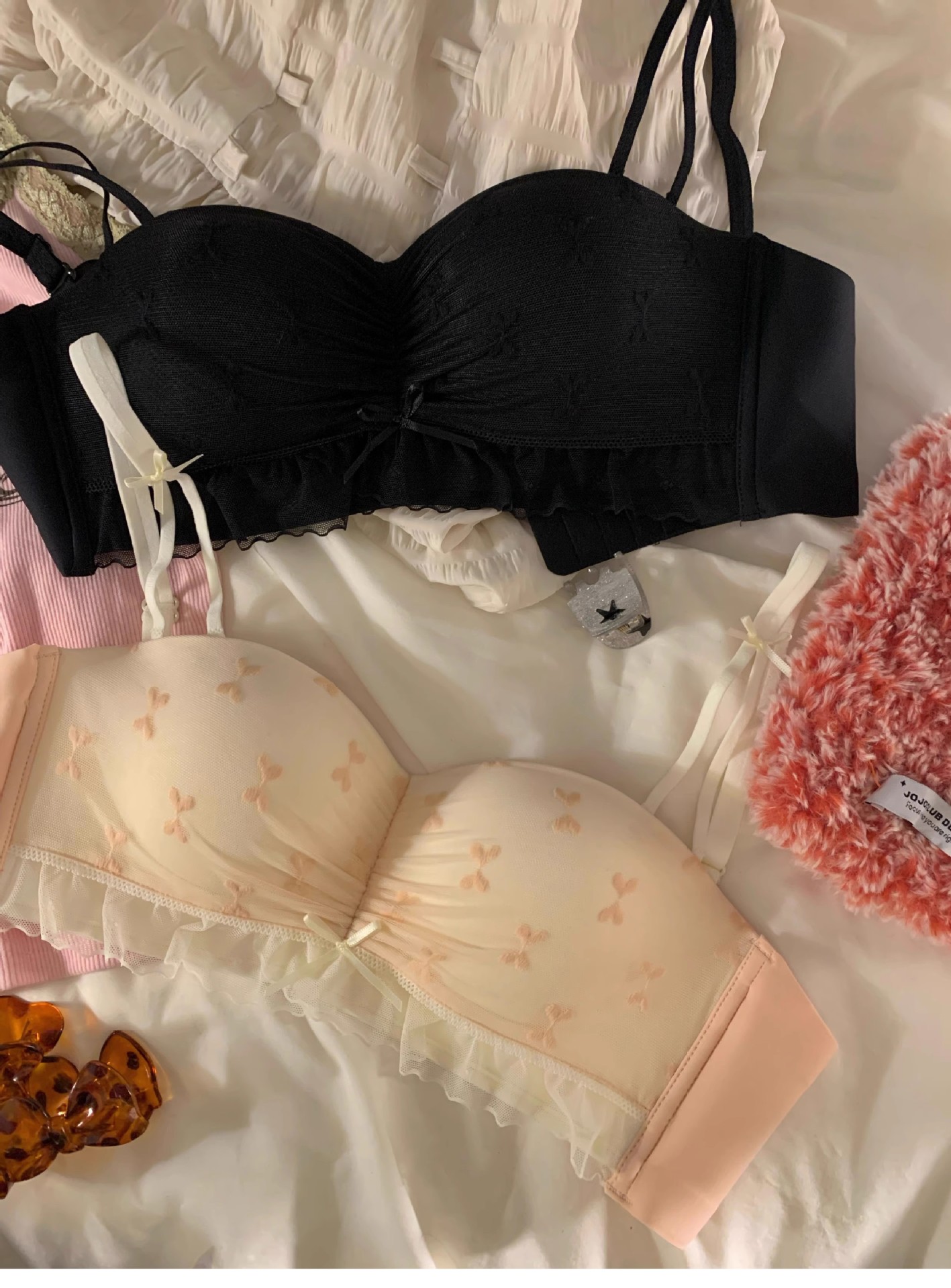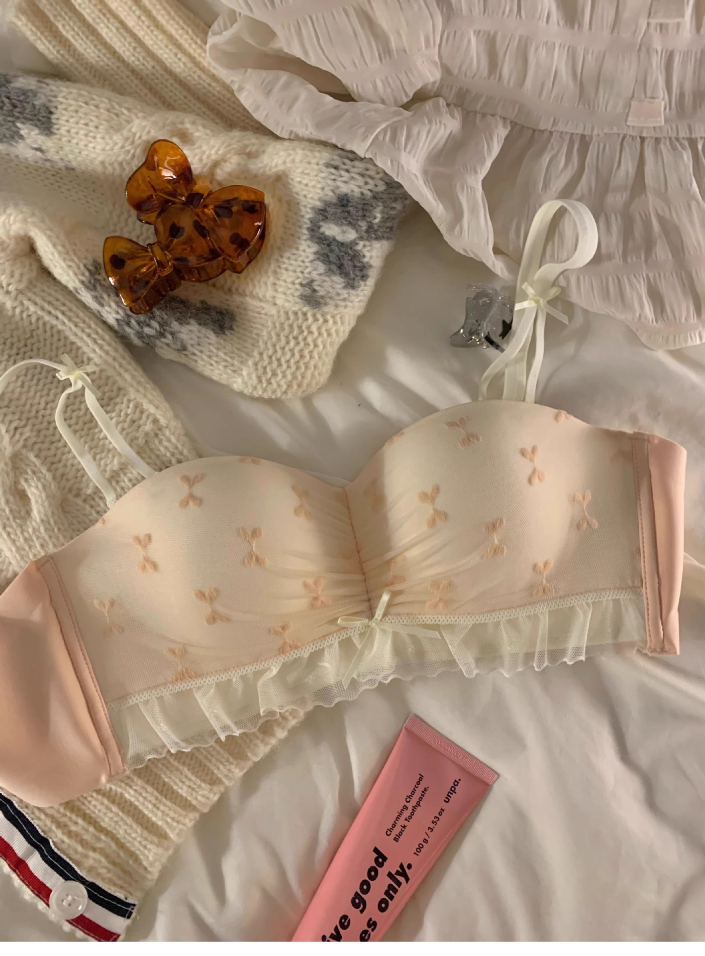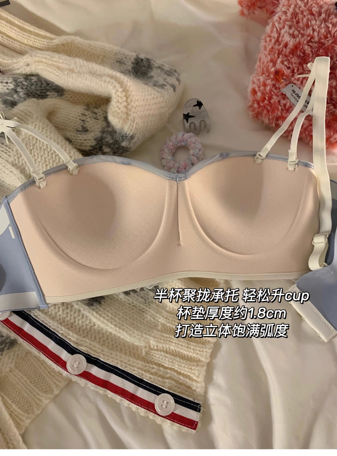 하프 컵 속옷 여성의 작은 가슴 푸쉬 업 대형 비 림리스 유방 처짐 방지 스위트 레이스 스트랩리스 브라