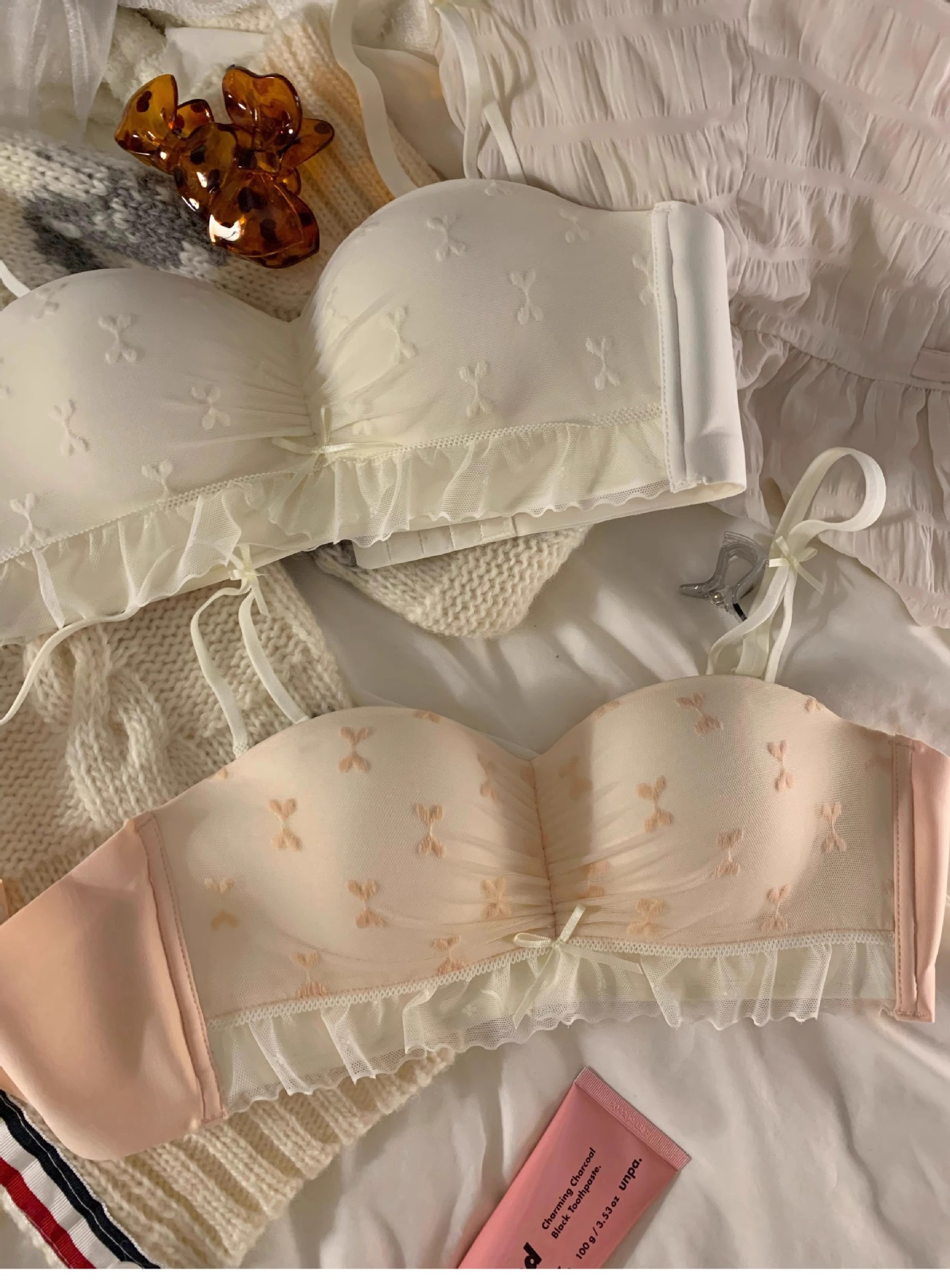 하프 컵 속옷 여성의 작은 가슴 푸쉬 업 대형 비 림리스 유방 처짐 방지 스위트 레이스 스트랩리스 브라스토어 가기