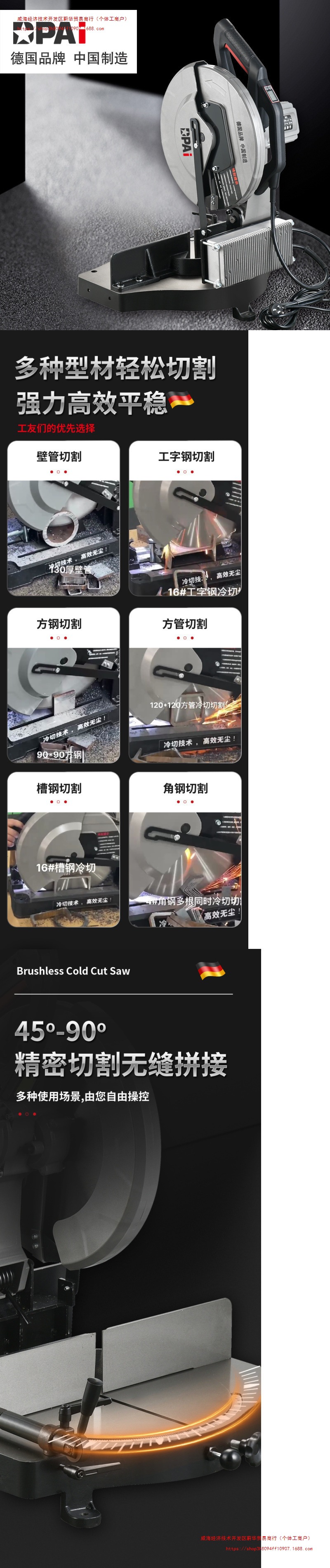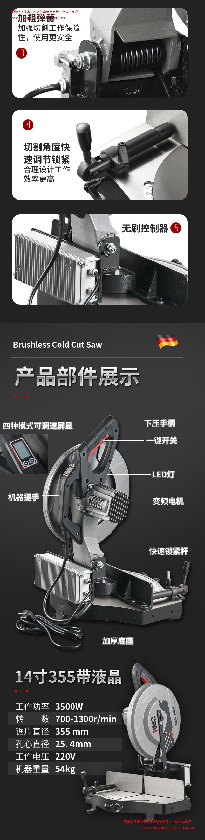 새로운 산업용 등급 브러시리스 고전력 14inch 브러시리스 고정밀 톱 콜드 커팅 톱 절단기 조절 가능 45도스토어 가기