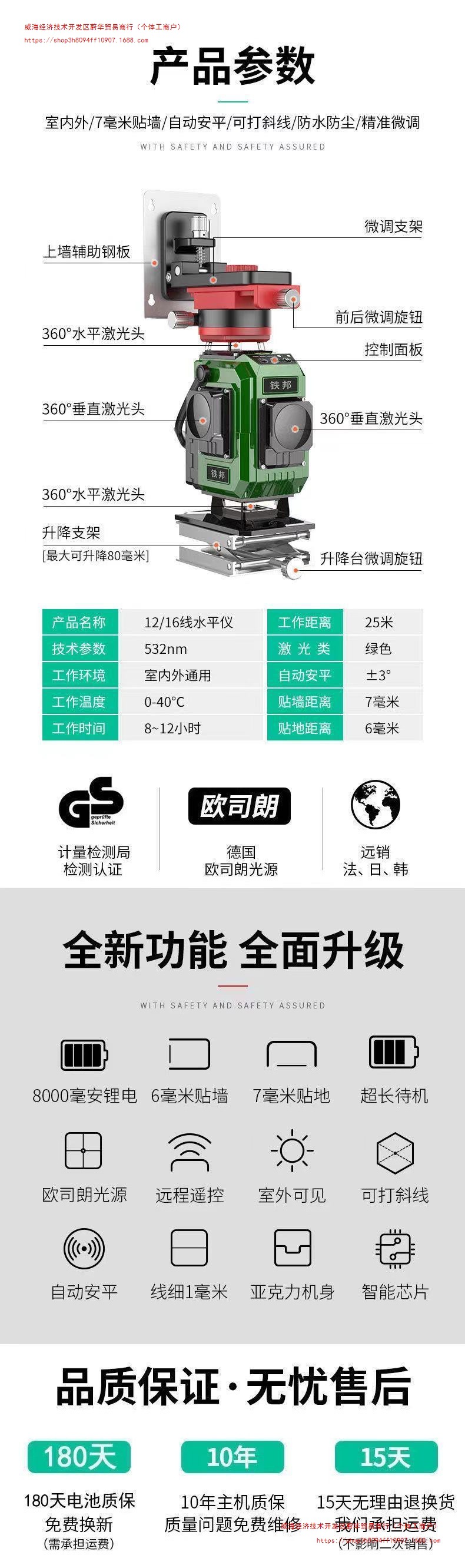 • 독일 수입(5년 보증, 레벨링 버블 포함) - [엔지니어링 등급] 16라인 녹색광 고구성