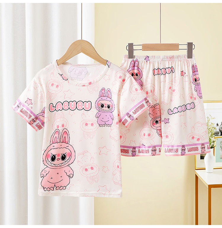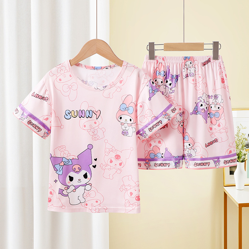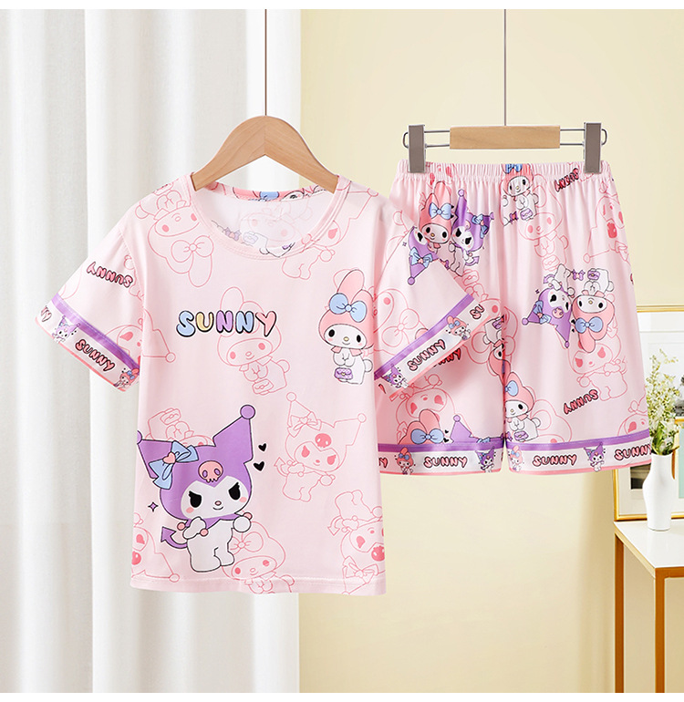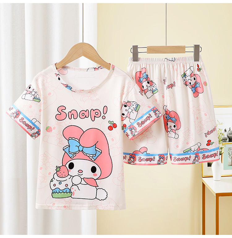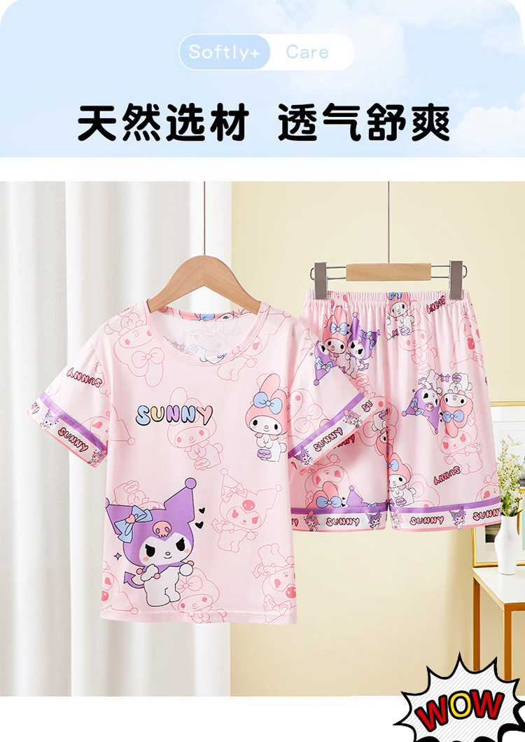 국경 2025 새로운 소녀 여름 잠옷 반팔 세트 얇은 공주 스타일 소녀 큰 어린이 집 옷스토어 가기