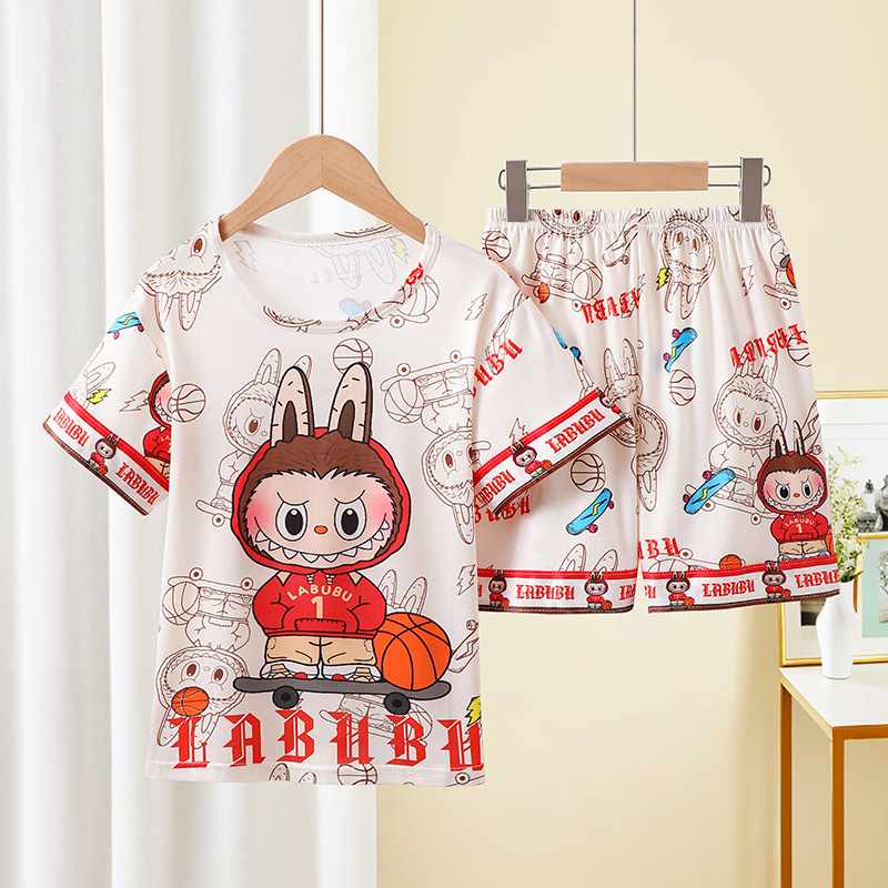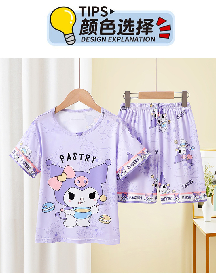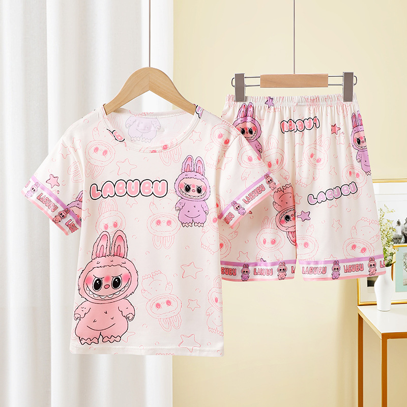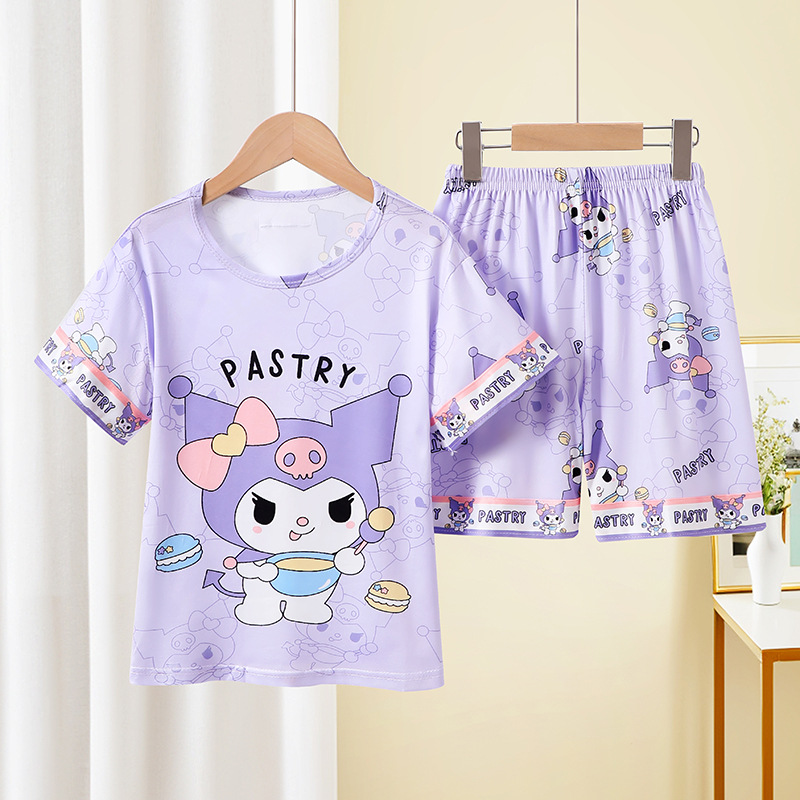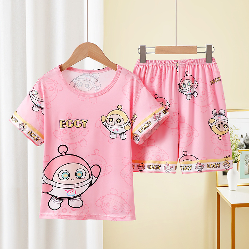 국경 2025 새로운 소녀 여름 잠옷 반팔 세트 얇은 공주 스타일 소녀 큰 어린이 집 옷스토어 가기