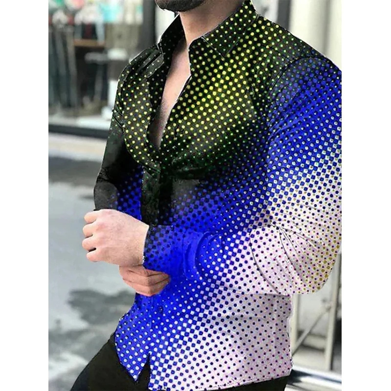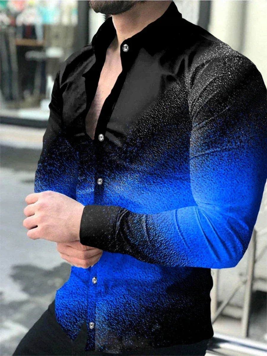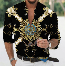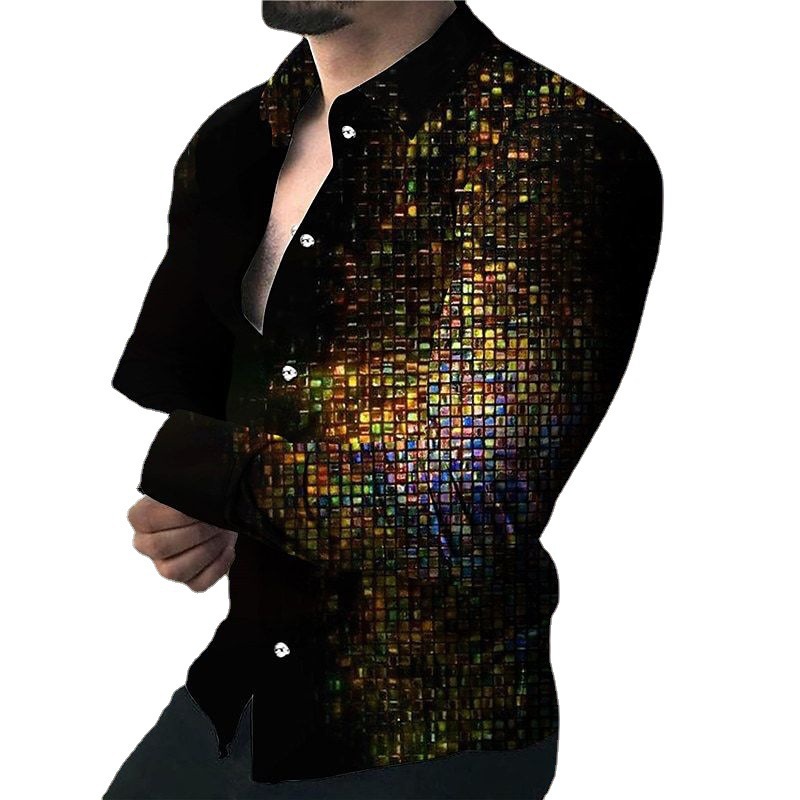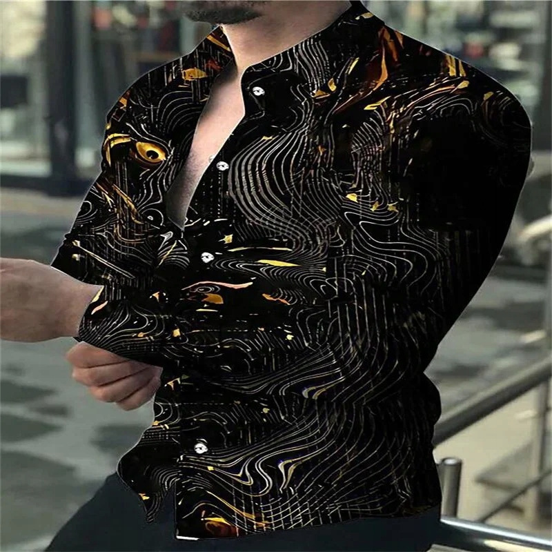국경 새 봄과 가을 남성 셔츠 패션 3D 디지털 인쇄 꽃 긴 소매 셔츠 플러스 사이즈 캐주얼 탑