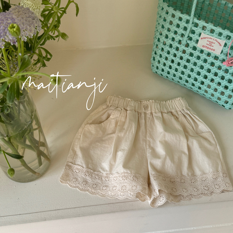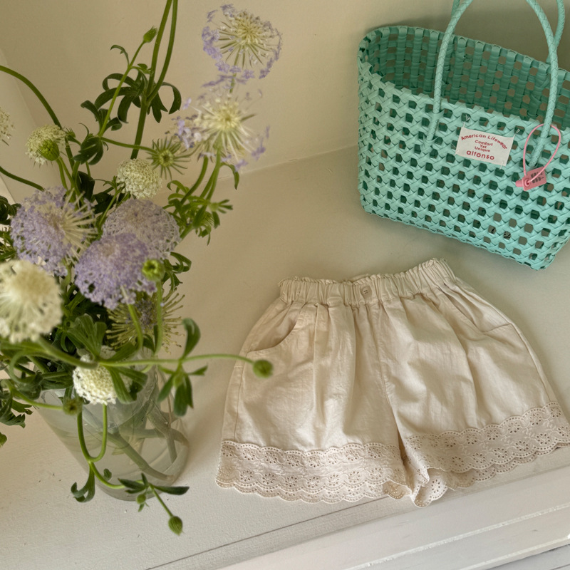 밀밭 시즌 2025 여름 새 한국식 어린이 캐주얼 반바지 걸스 레이스 유행 바지 아기 반바지스토어 가기