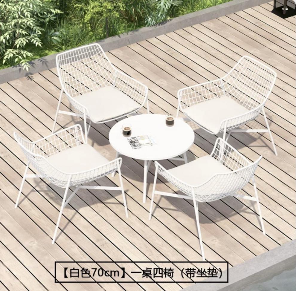 户外桌椅组合简约庭院阳台会客露天网红铁艺圆桌网格椅子休闲配套