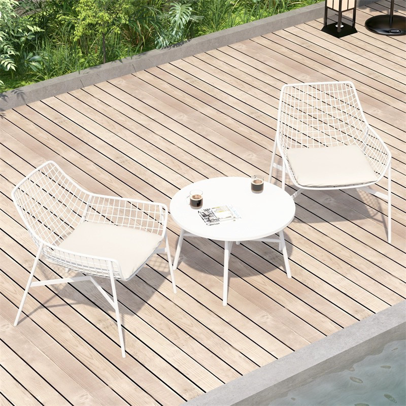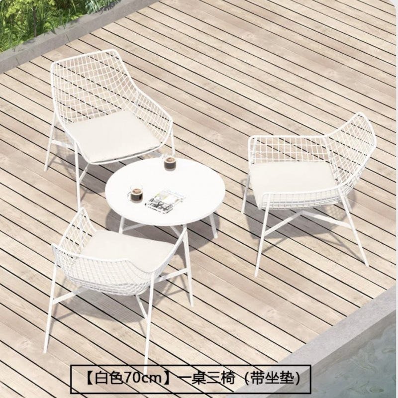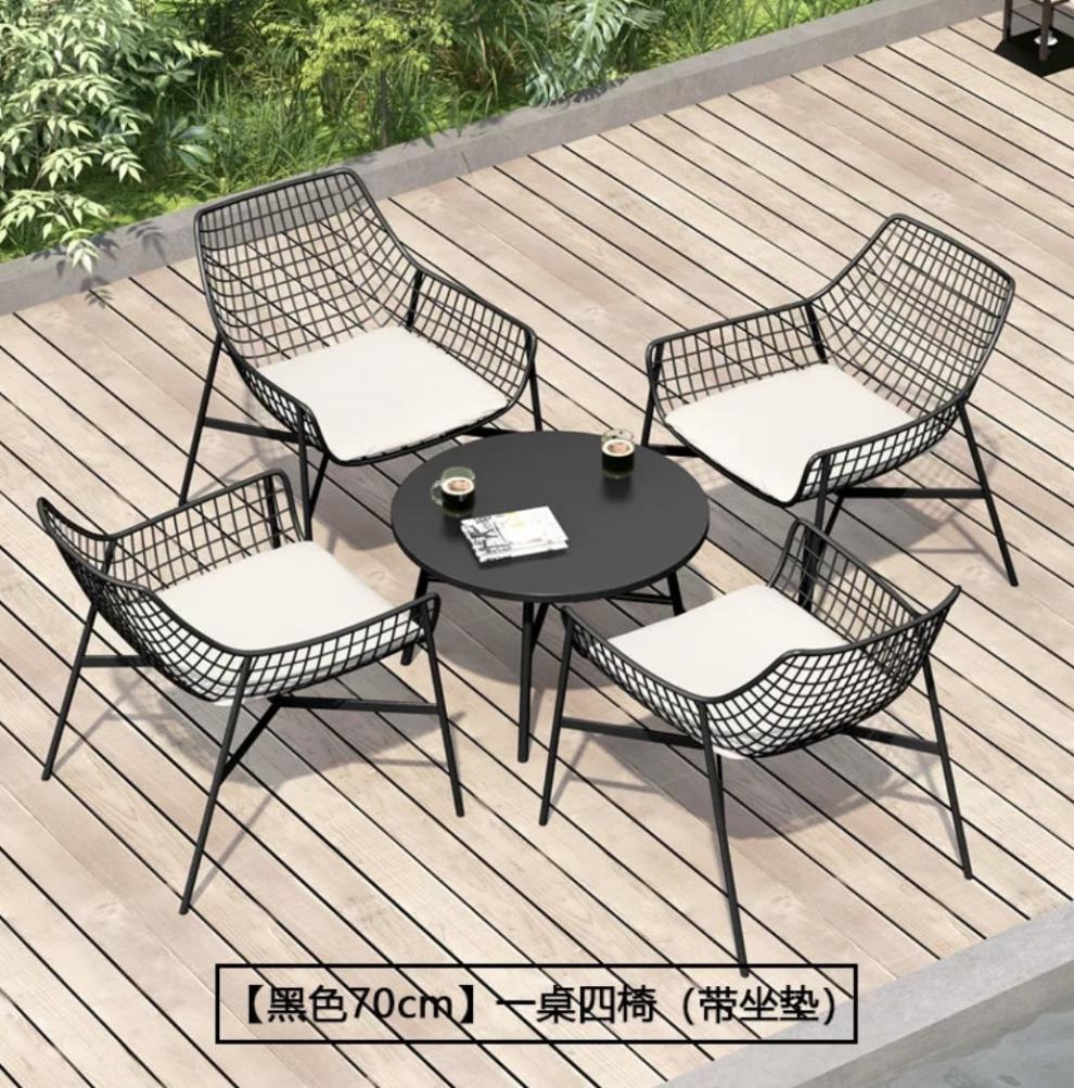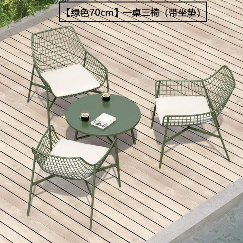 야외 테이블과 의자 조합 간단한 안뜰 발코니 레클라이닝 야외 인터넷 축하 철 라운드 테이블 그리드 의자 레저 매칭스토어 가기