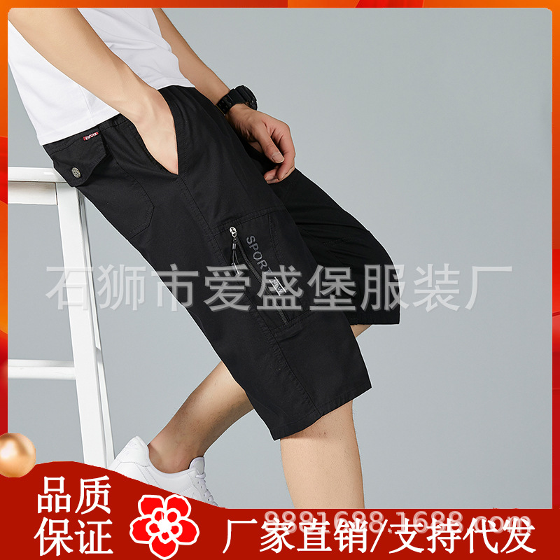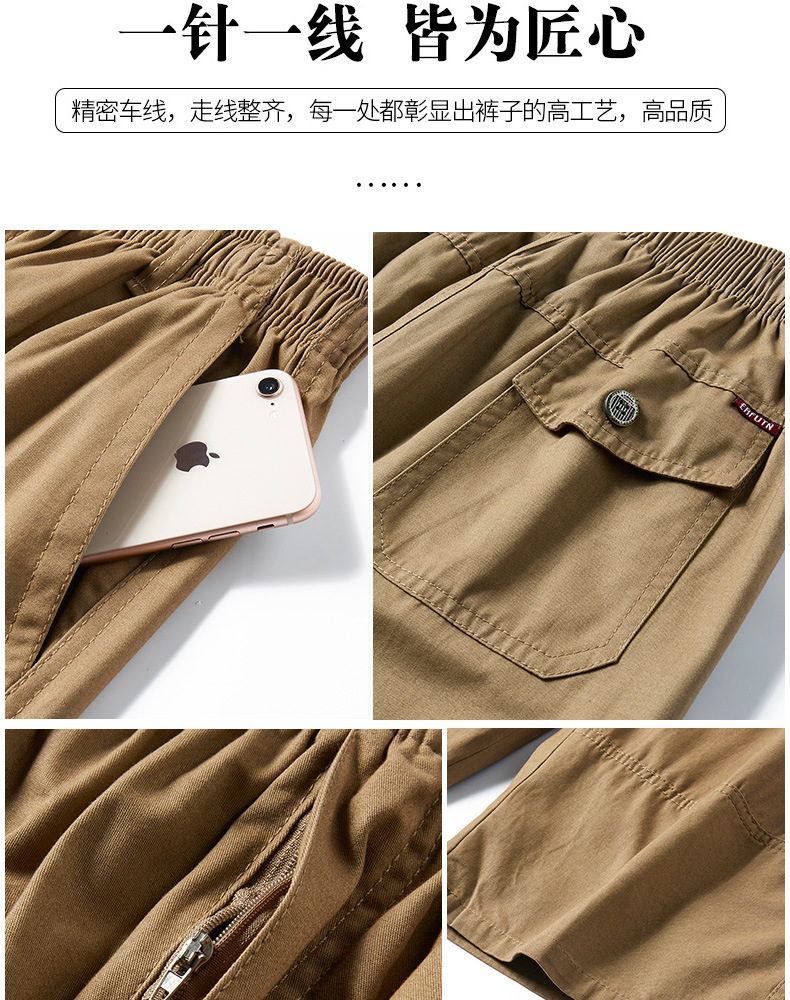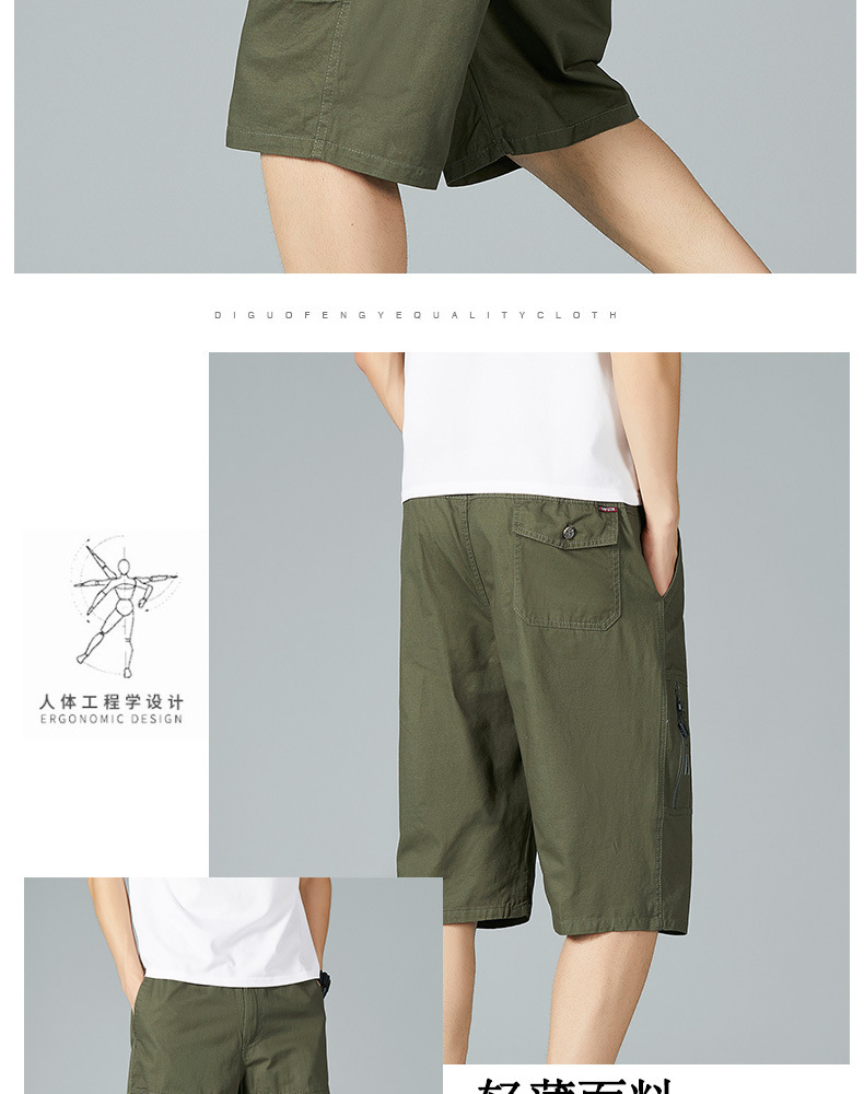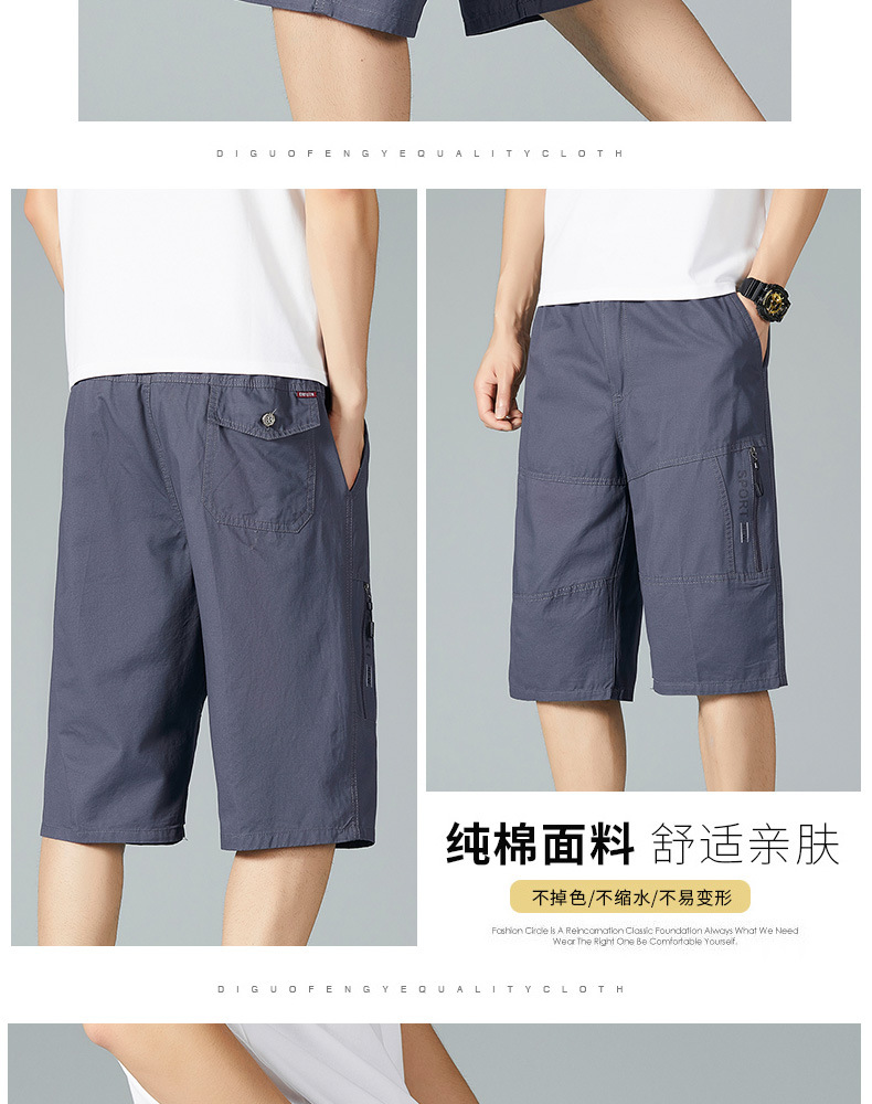 국경 간 남자 바지 아빠의 플러스 사이즈 느슨한 아우터 착용 느슨한 허리 반바지 앞뒤 멀티 포켓 남성용 작업복 카프리 바지