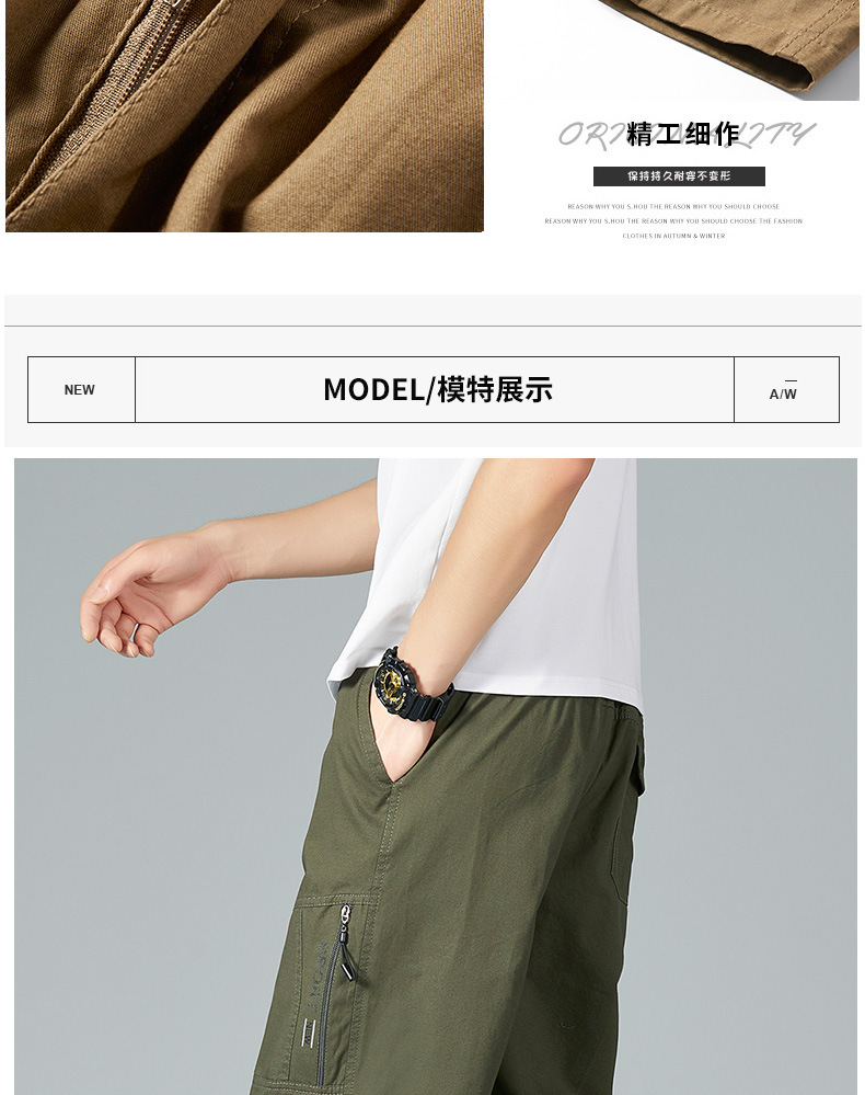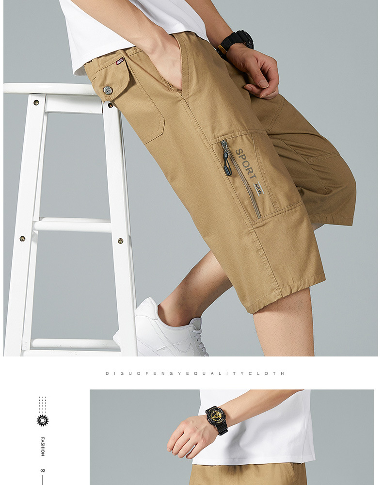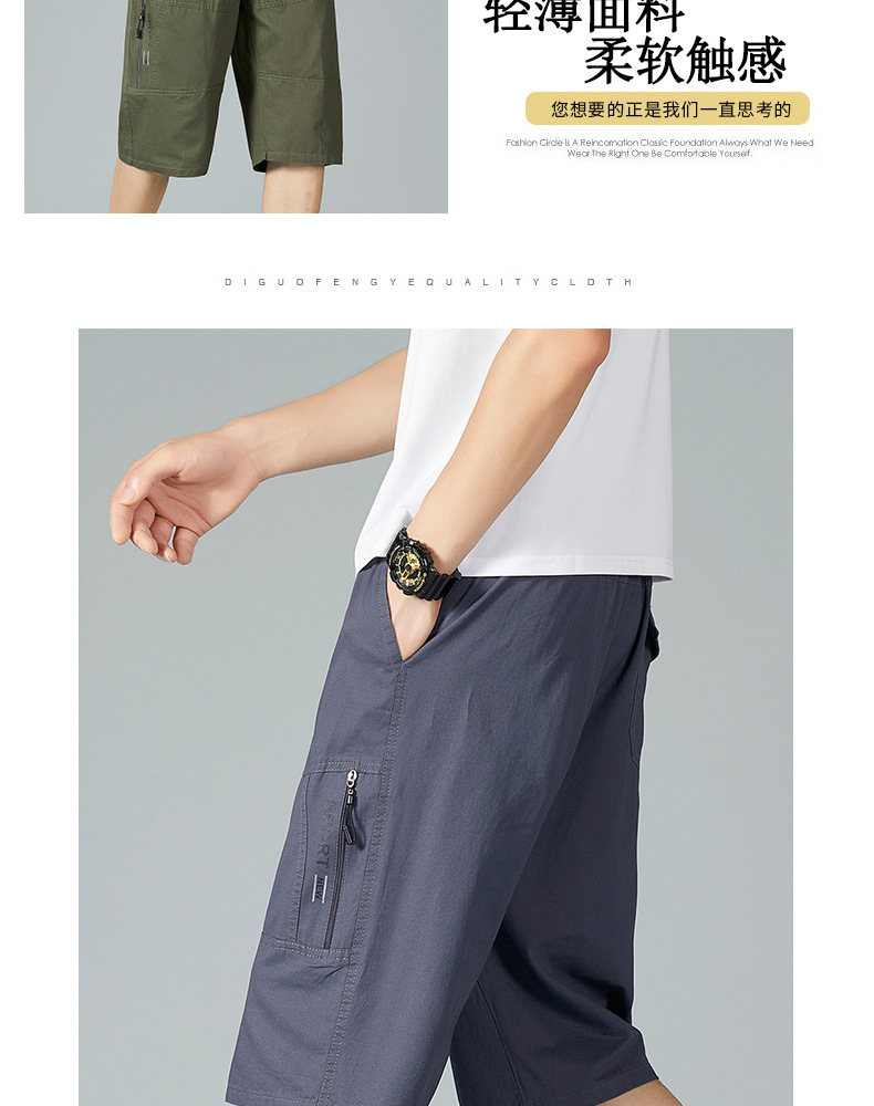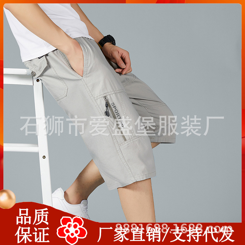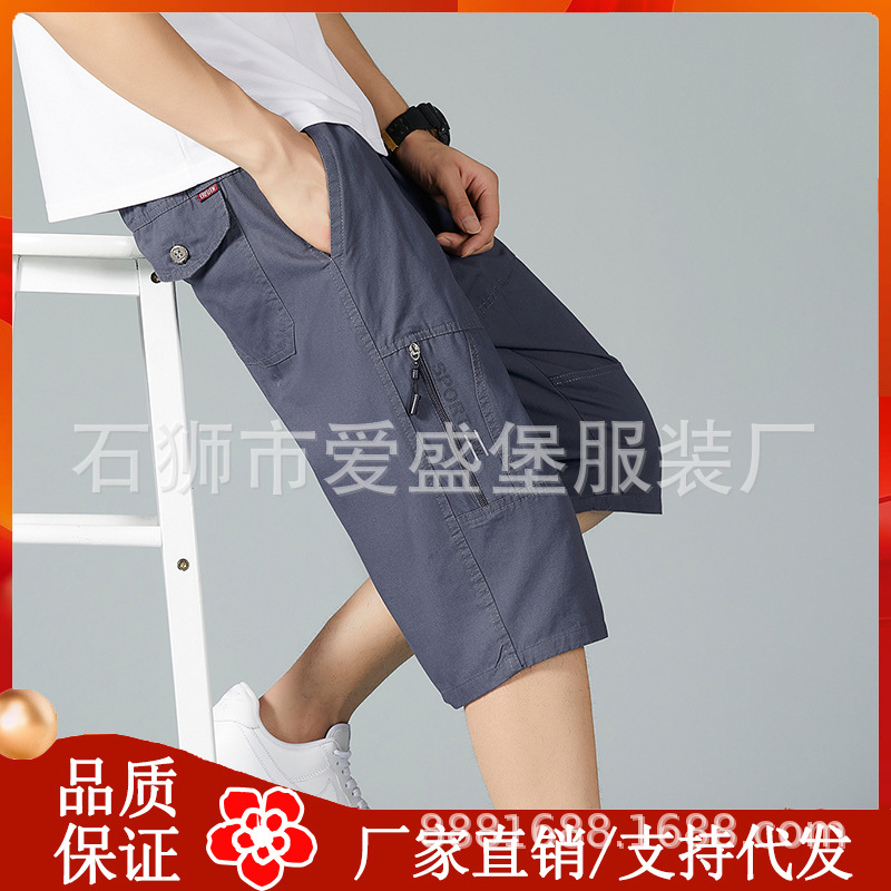 국경 간 남자 바지 아빠의 플러스 사이즈 느슨한 아우터 착용 느슨한 허리 반바지 앞뒤 멀티 포켓 남성용 작업복 카프리 바지