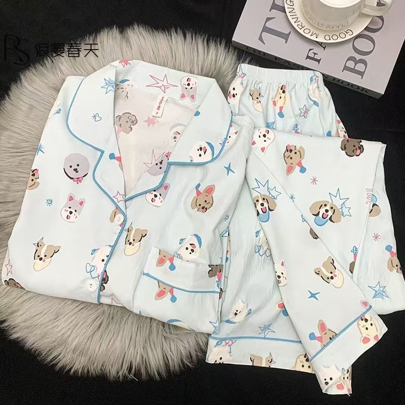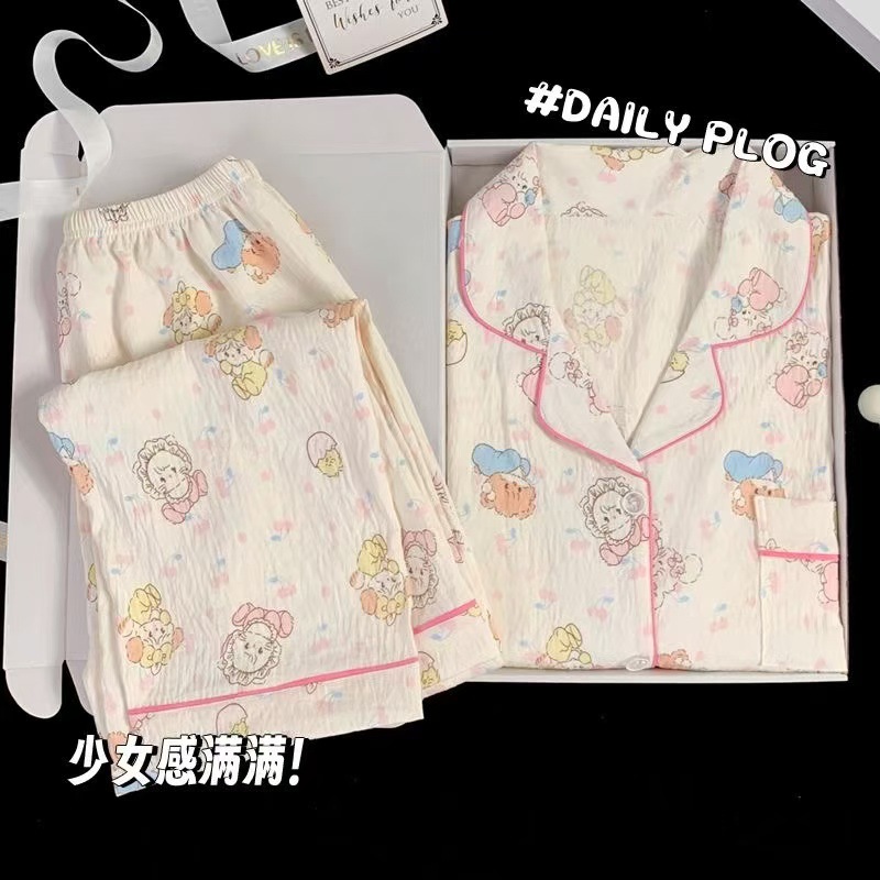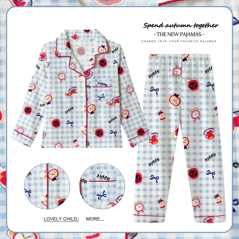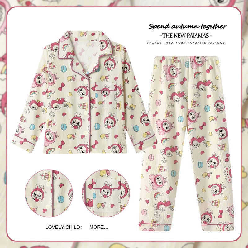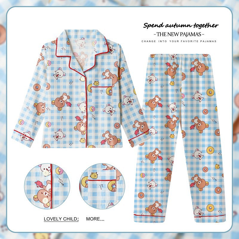 어린이 잠옷 긴팔 세트 봄 가을 여자아이 잠옷 구름면 만화 소녀 아기 홈웨어 세트 외출복으로도 가능