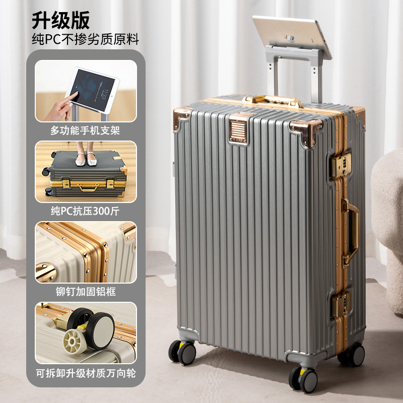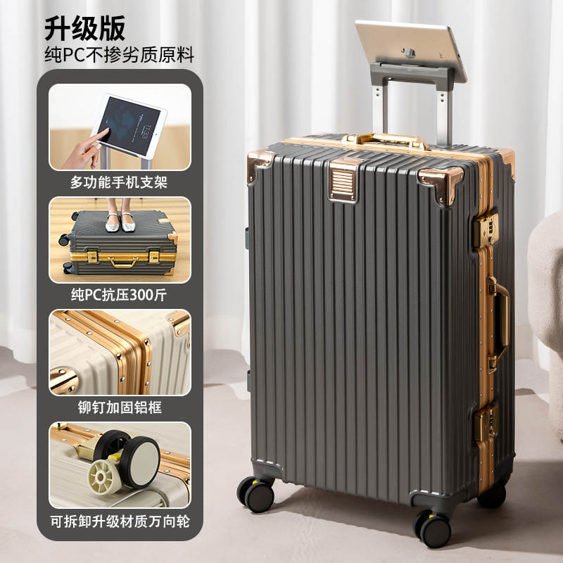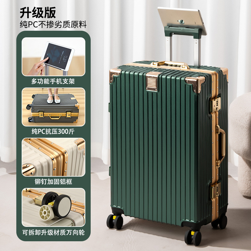 강력하고 튼튼한 수하물 케이스 대용량 가방 알루미늄 프레임 암호 상자 휠 남성과 여성 새로운 학생 트롤리 케이스 무료 배송