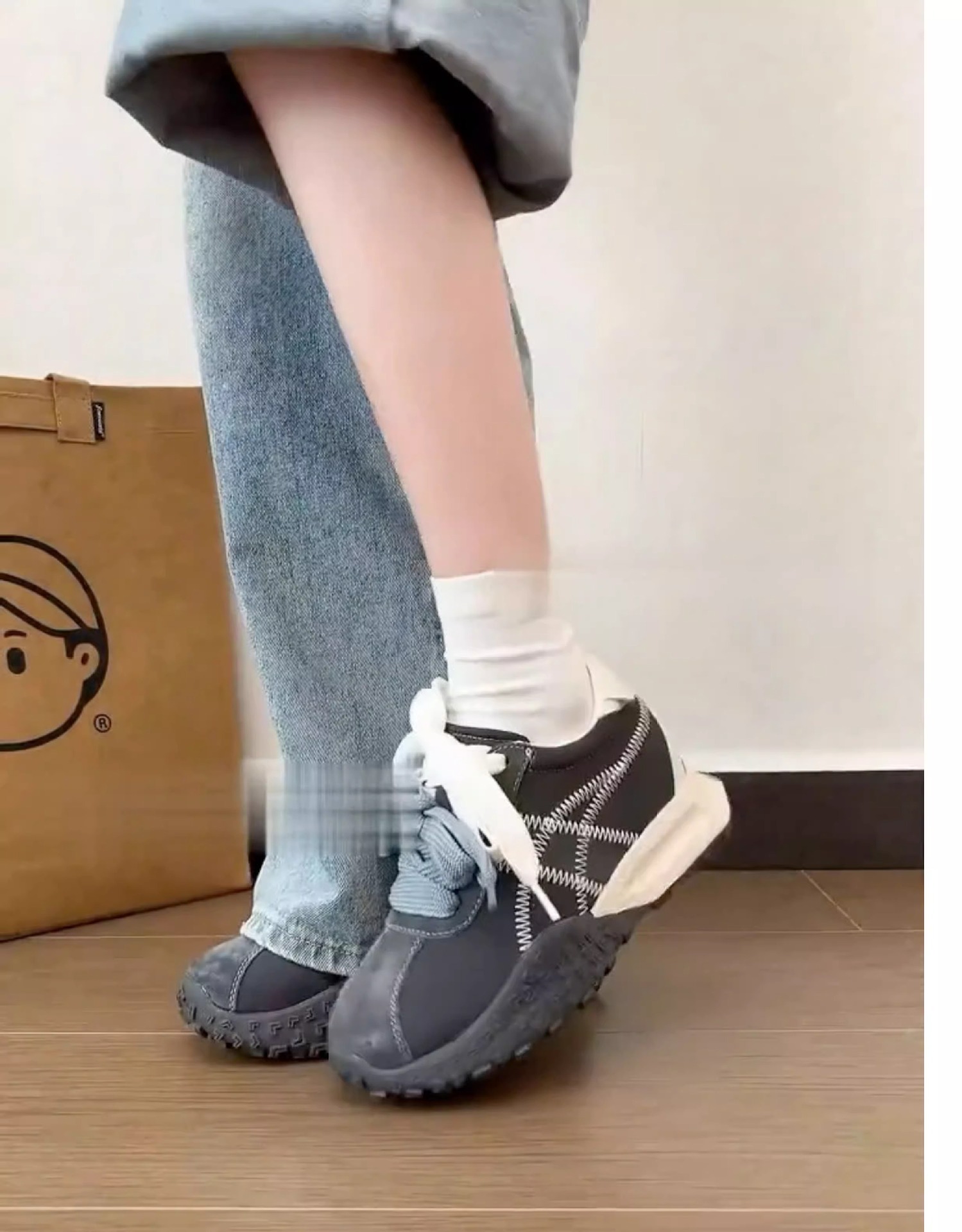 몸집이 작은 여성을 위한 두꺼운 밑창 내부 높이 7cm 훈련화 2025 봄 신상품 가죽 배색 캐주얼 포레스트 검프 신발스토어 가기