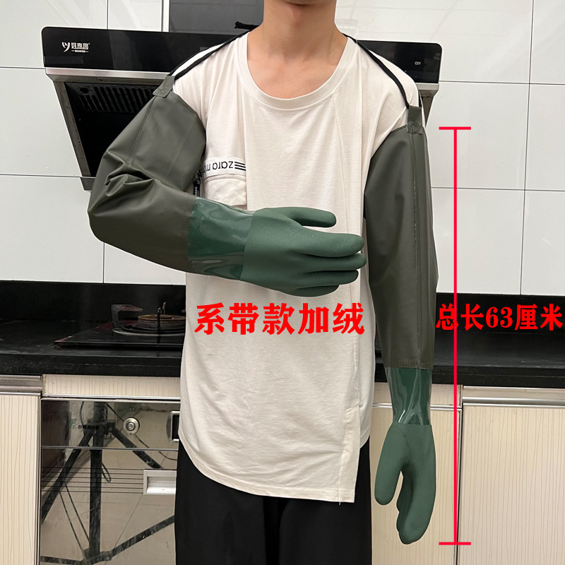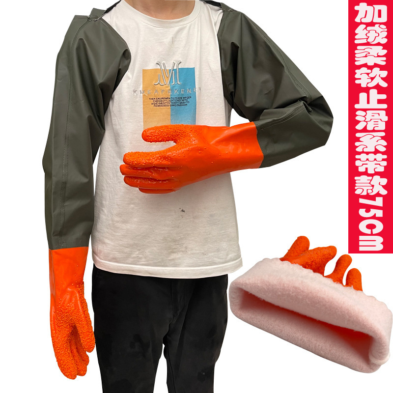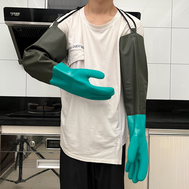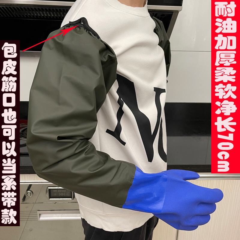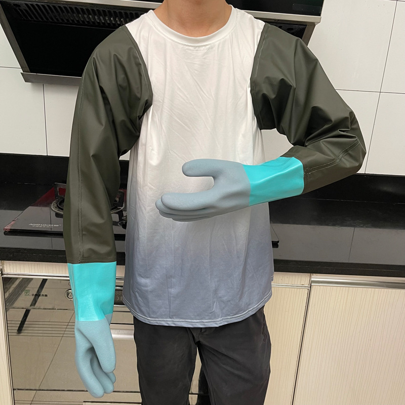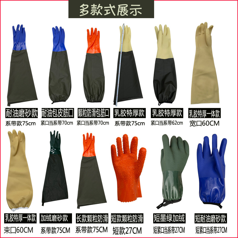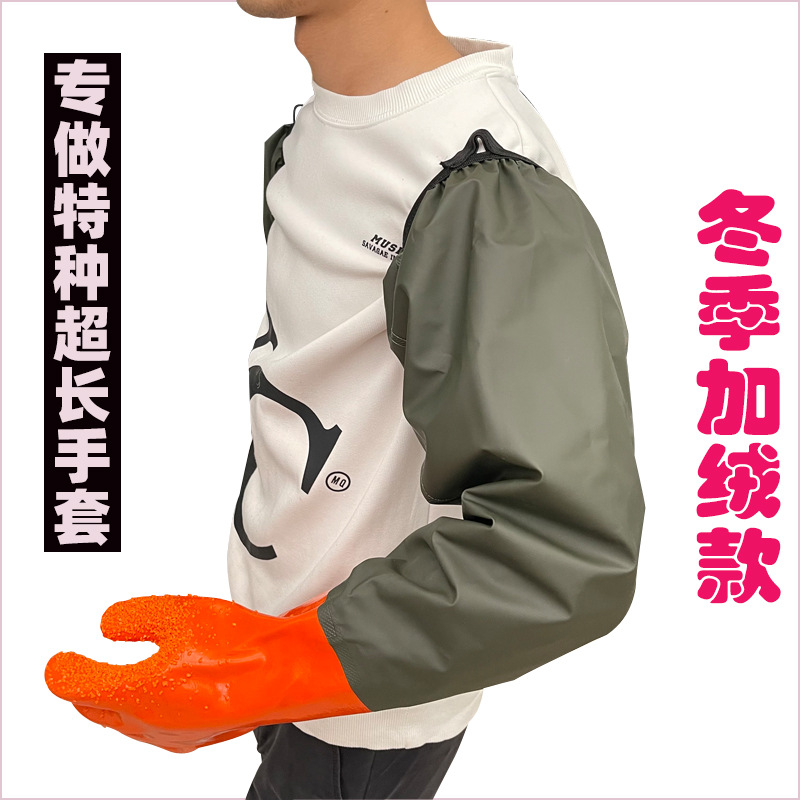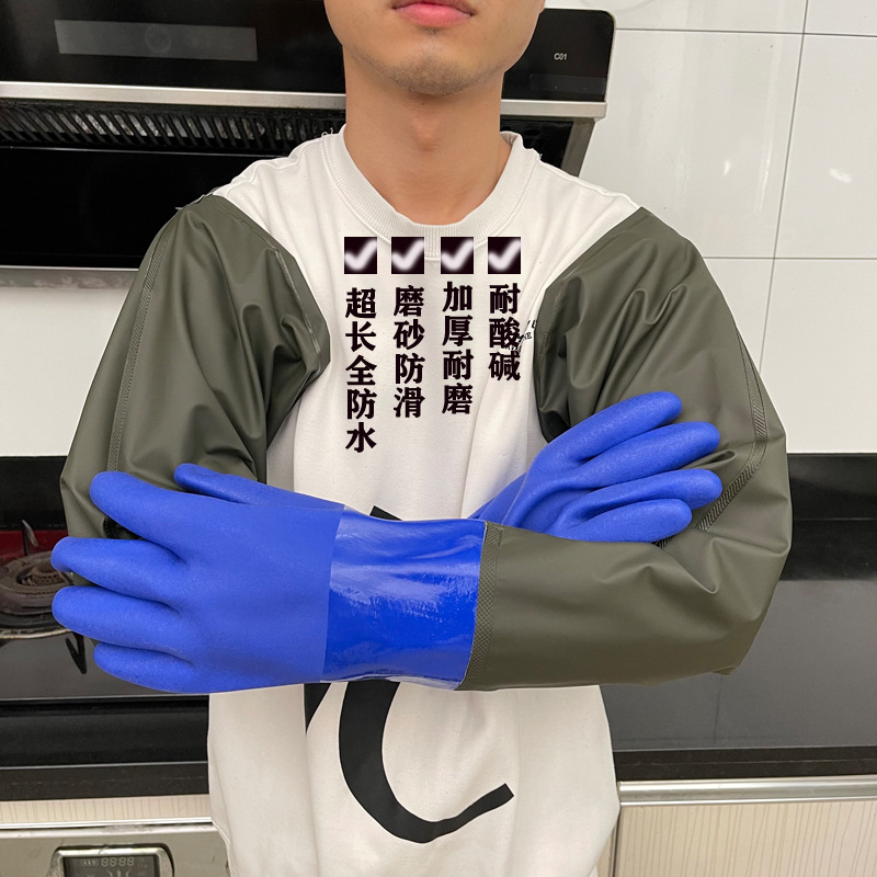 긴, 두꺼운, 미끄럼 방지 및 내마모성 긴팔 수산물 낚시 산업용 방수, 찌르기 방지 및 기름 방지 노동 보호 식기 세척 및 세차 장갑스토어 가기