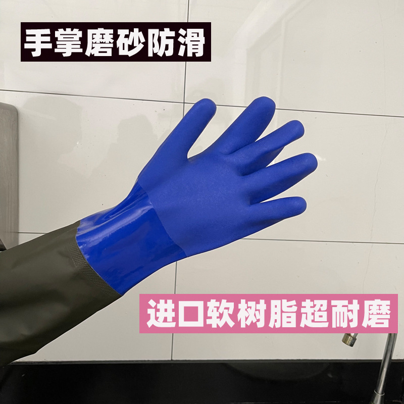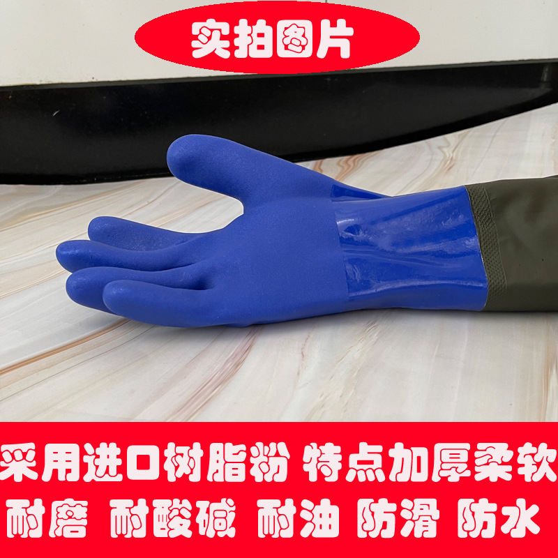 긴, 두꺼운, 미끄럼 방지 및 내마모성 긴팔 수산물 낚시 산업용 방수, 찌르기 방지 및 기름 방지 노동 보호 식기 세척 및 세차 장갑