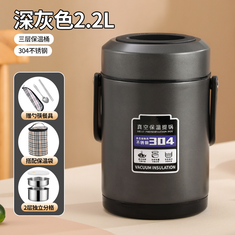 • 2.2L 다크 그레이(3겹) 식기 + 보온 가방 포함★♜