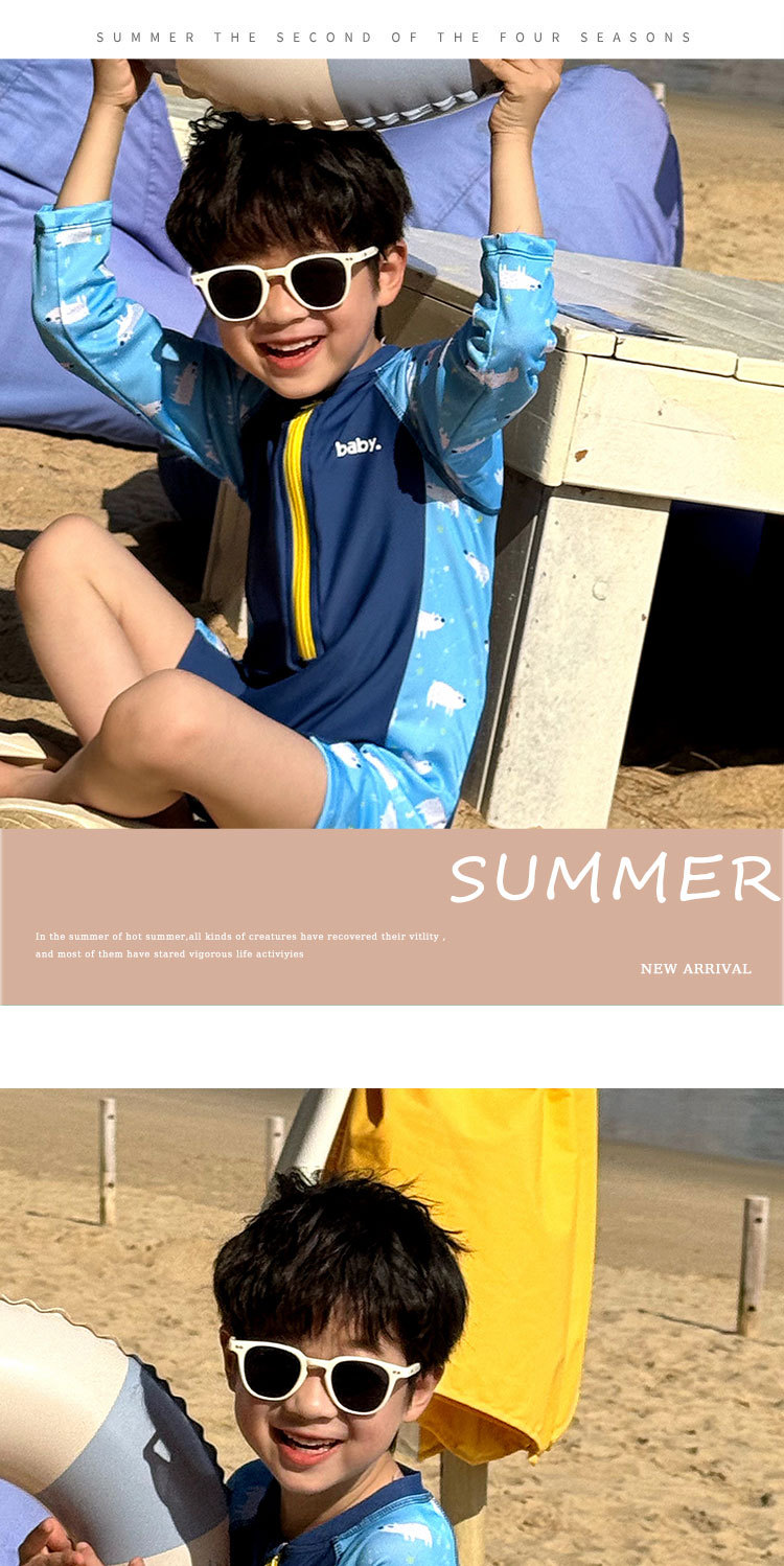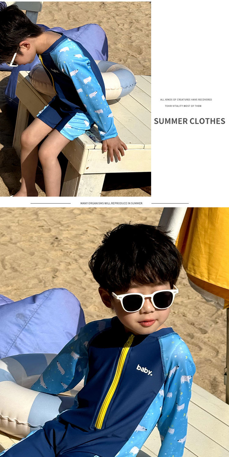 새로운 여름 어린이 수영복 원피스 긴 소매 반바지 태양 보호 빠른 건조 수영복 만화 캐주얼 해변 휴가 수영복스토어 가기