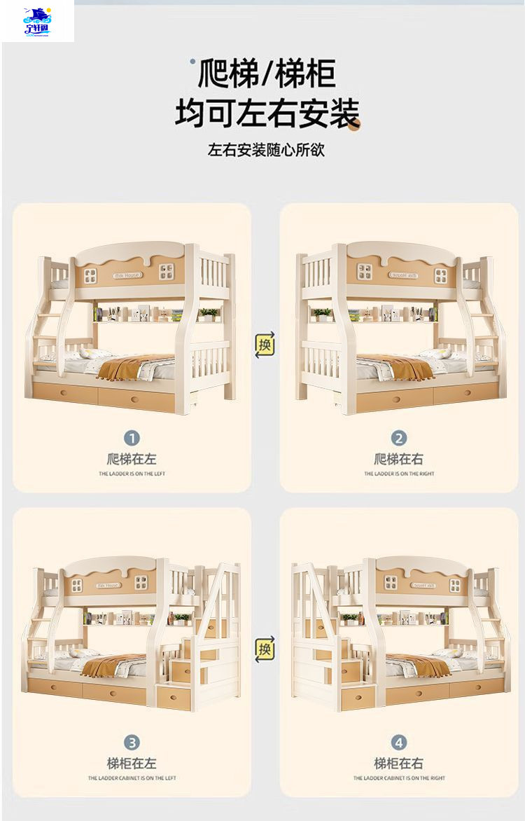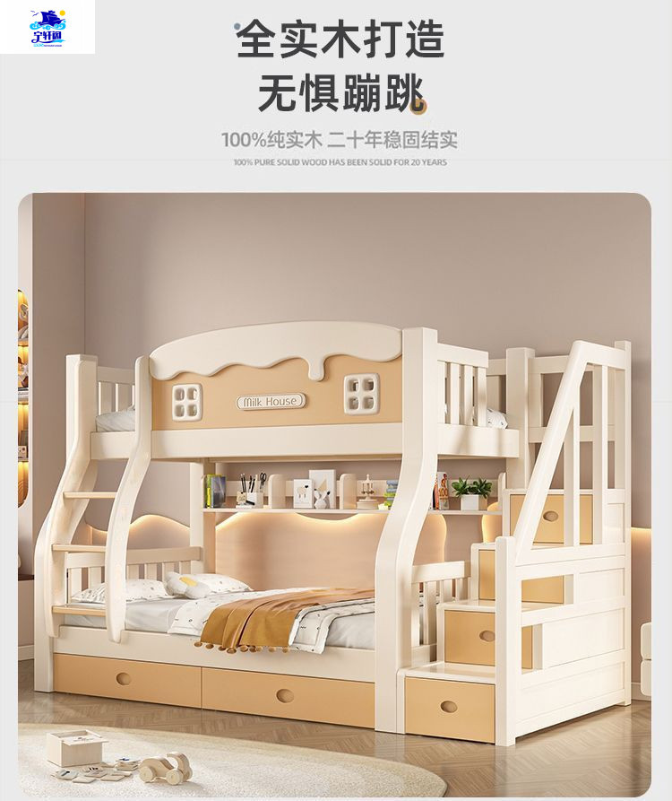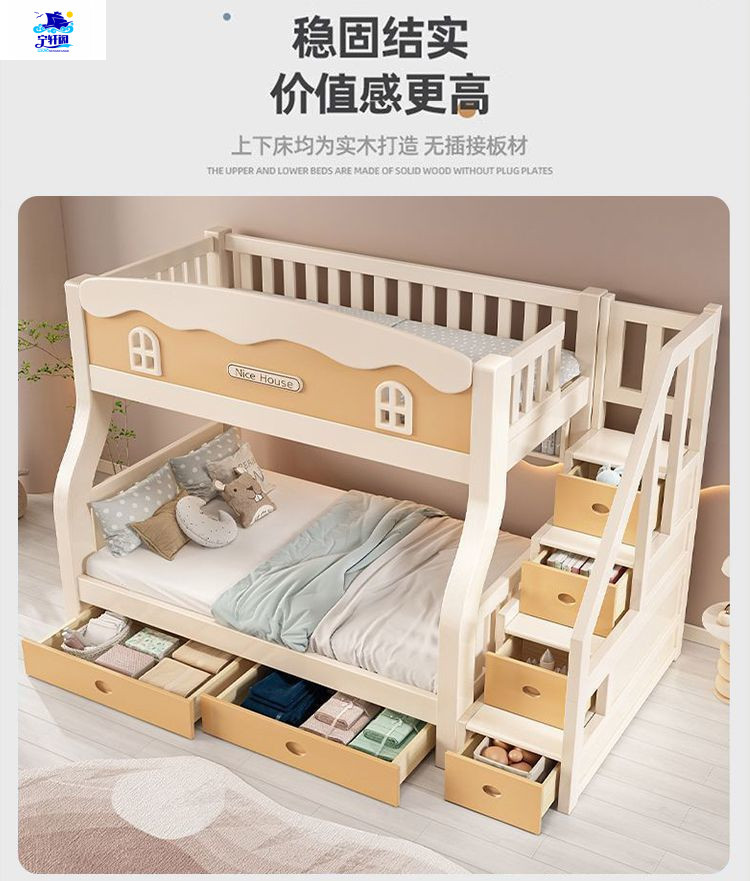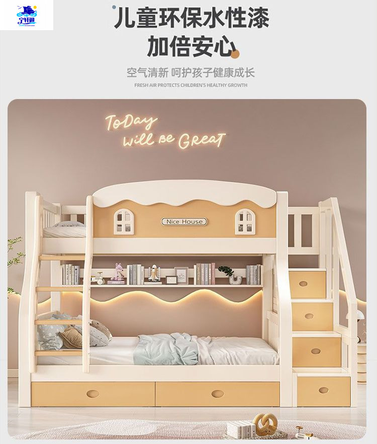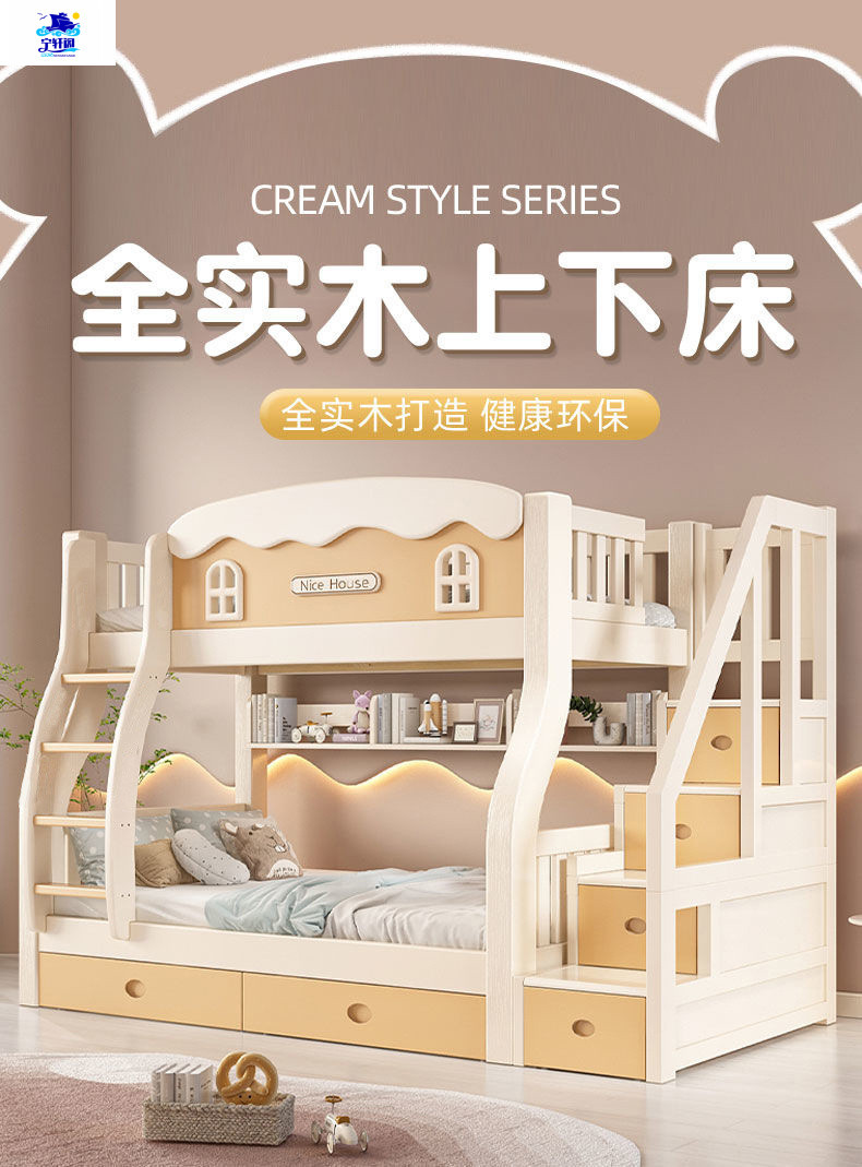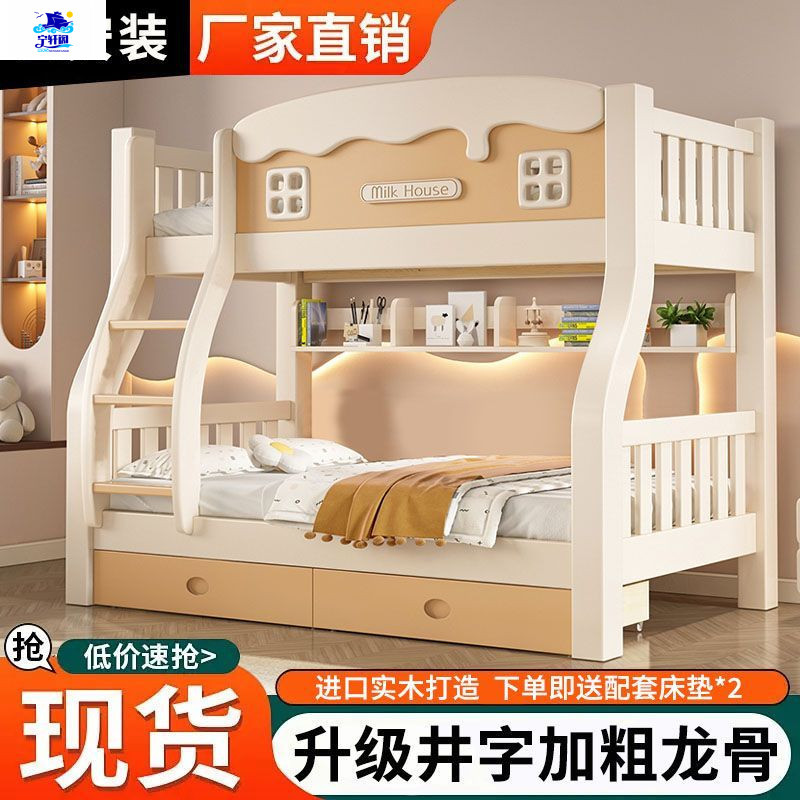 북유럽 풀 솔리드 우드 더블 레이어 현대 간단한 침대 높고 낮은 침대 작은 아파트 2 층 어머니 침대 어린이 침대