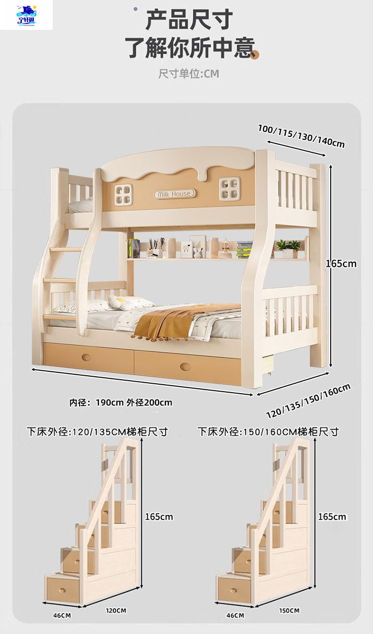 • 크림 사다리 스타일 + 서랍 + 무료 2cm 코코넛 야자 매트리스*2