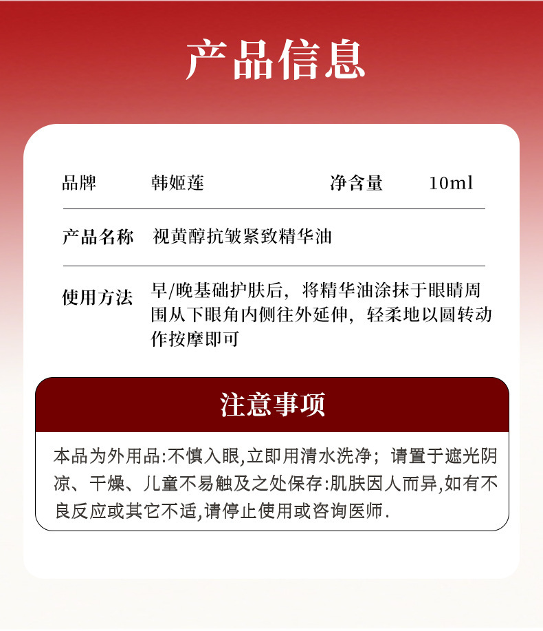 한지련 콜라겐 폴리펩티드 주름 개선 에센스 아이 오일은 눈가의 잔주름과 다크서클을 완화하고 눈가를 탄력 있게 가꿔줍니다.스토어 가기