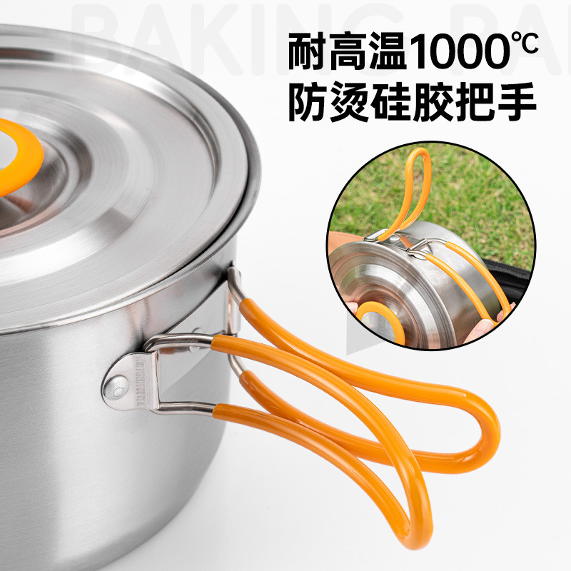 새로운 304 스테인레스 스틸 야외 냄비 캠핑 조리기구 카세트 스토브 냄비 주전자 피크닉 장비 세트