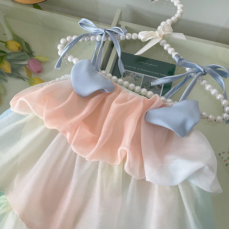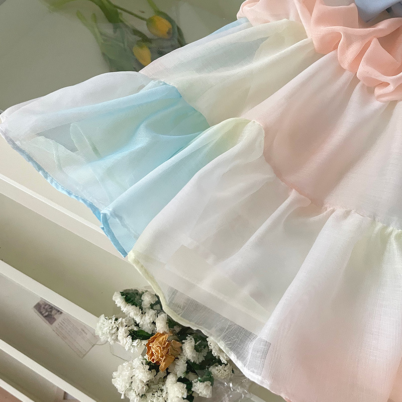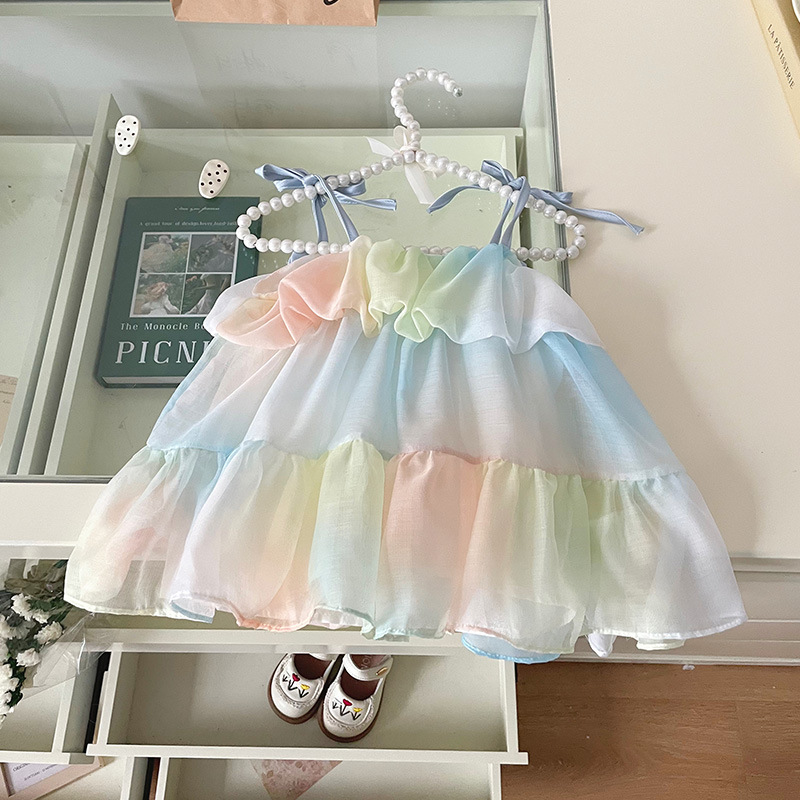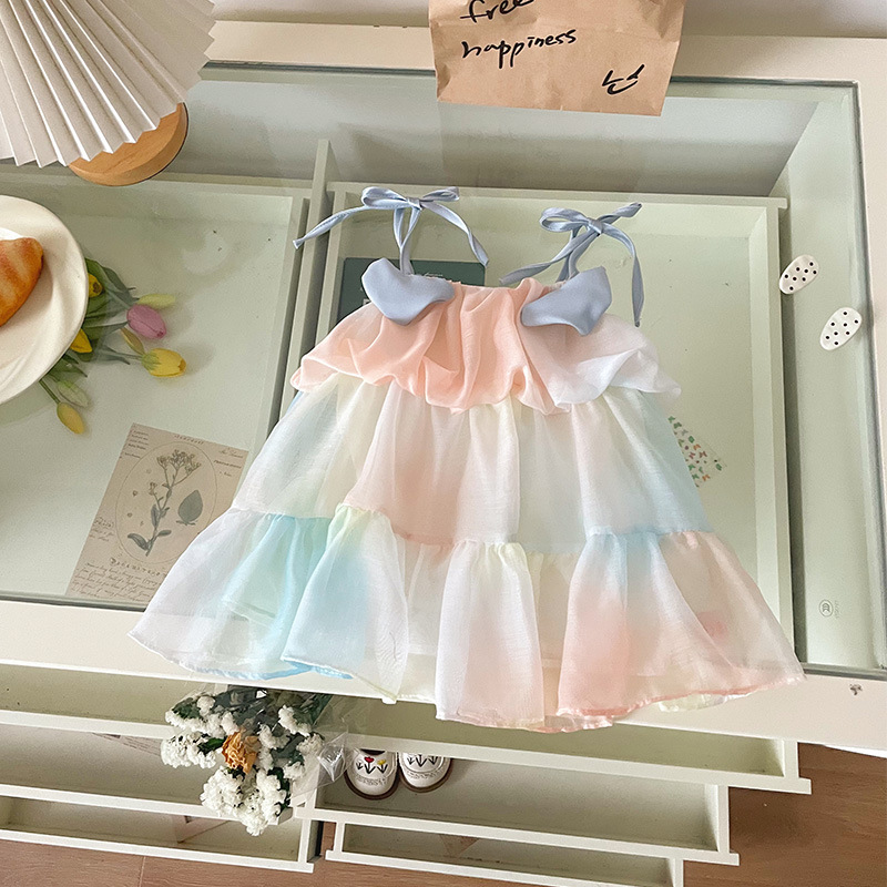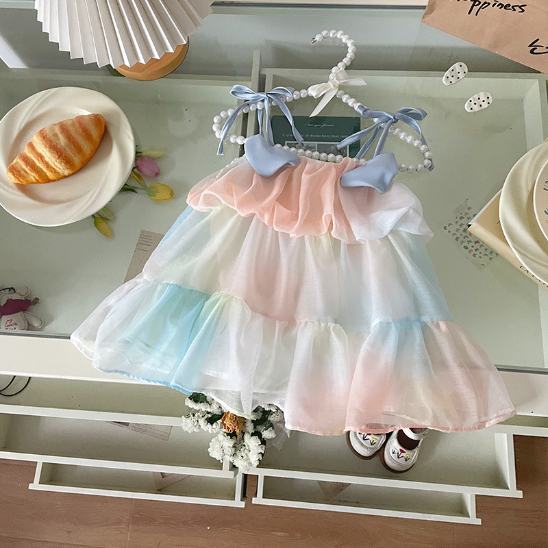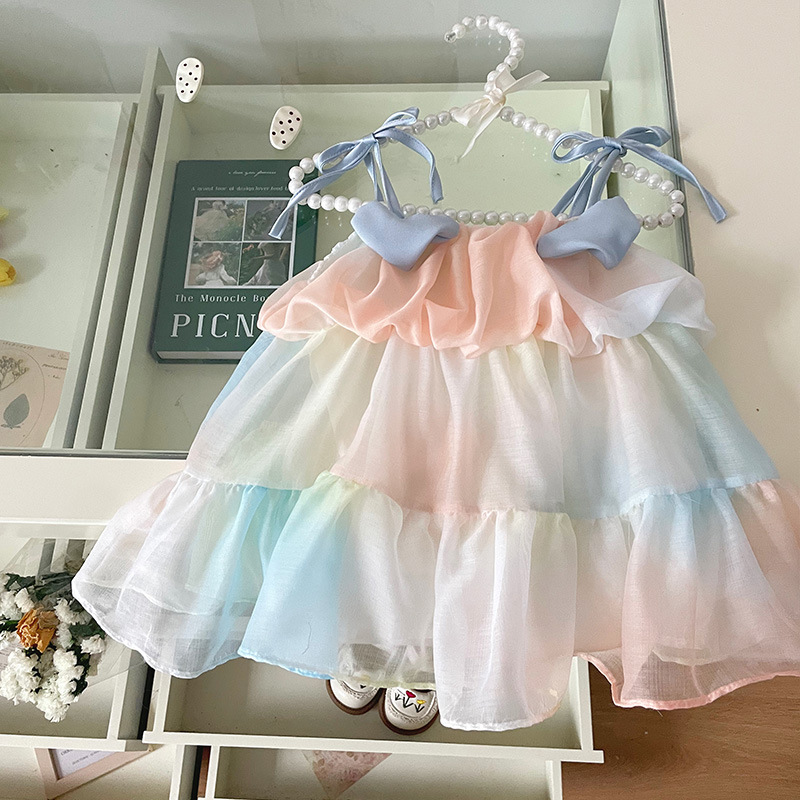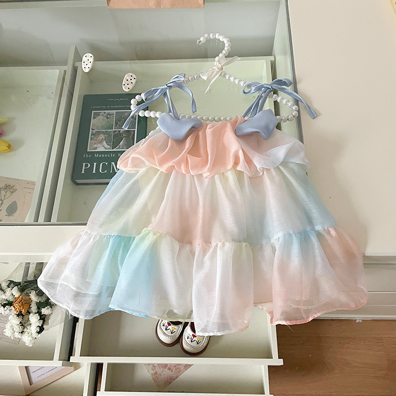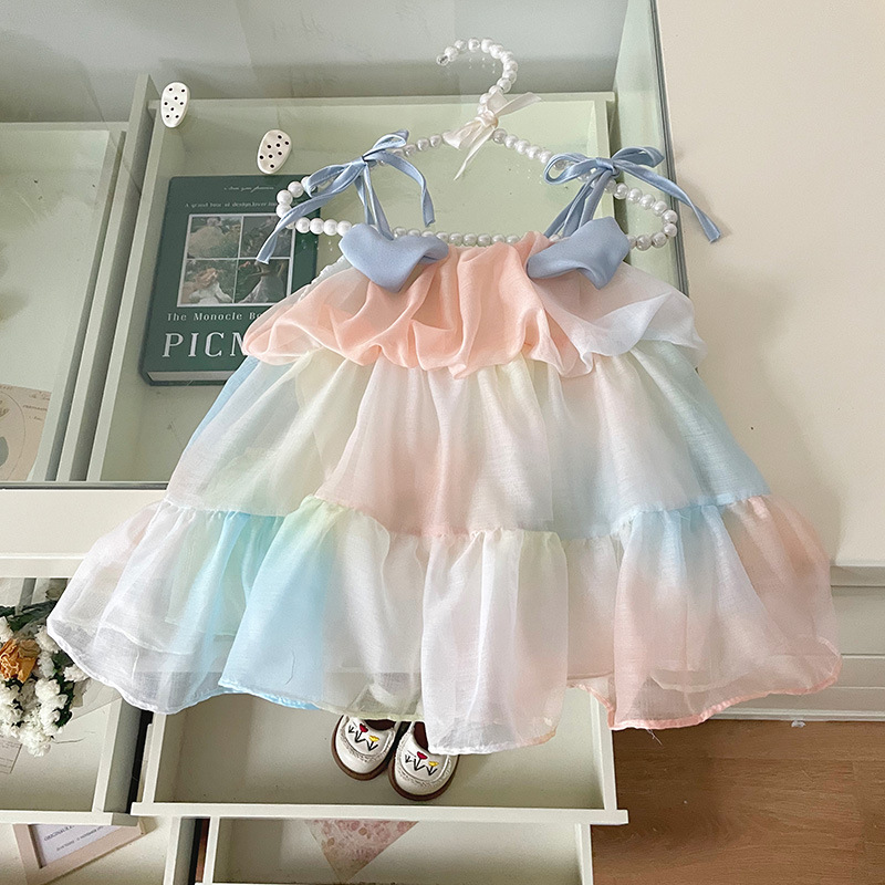 [재고] XQ259158 여자 원피스 2025 여름 새 한국 귀여운 무지개 색 달콤한 슬링