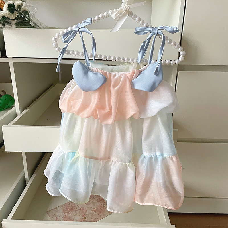 [재고] XQ259158 여자 원피스 2025 여름 새 한국 귀여운 무지개 색 달콤한 슬링스토어 가기