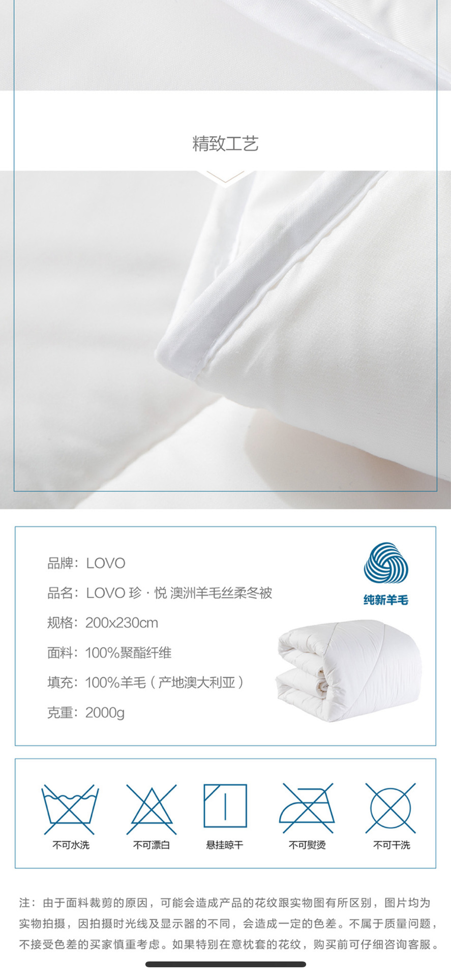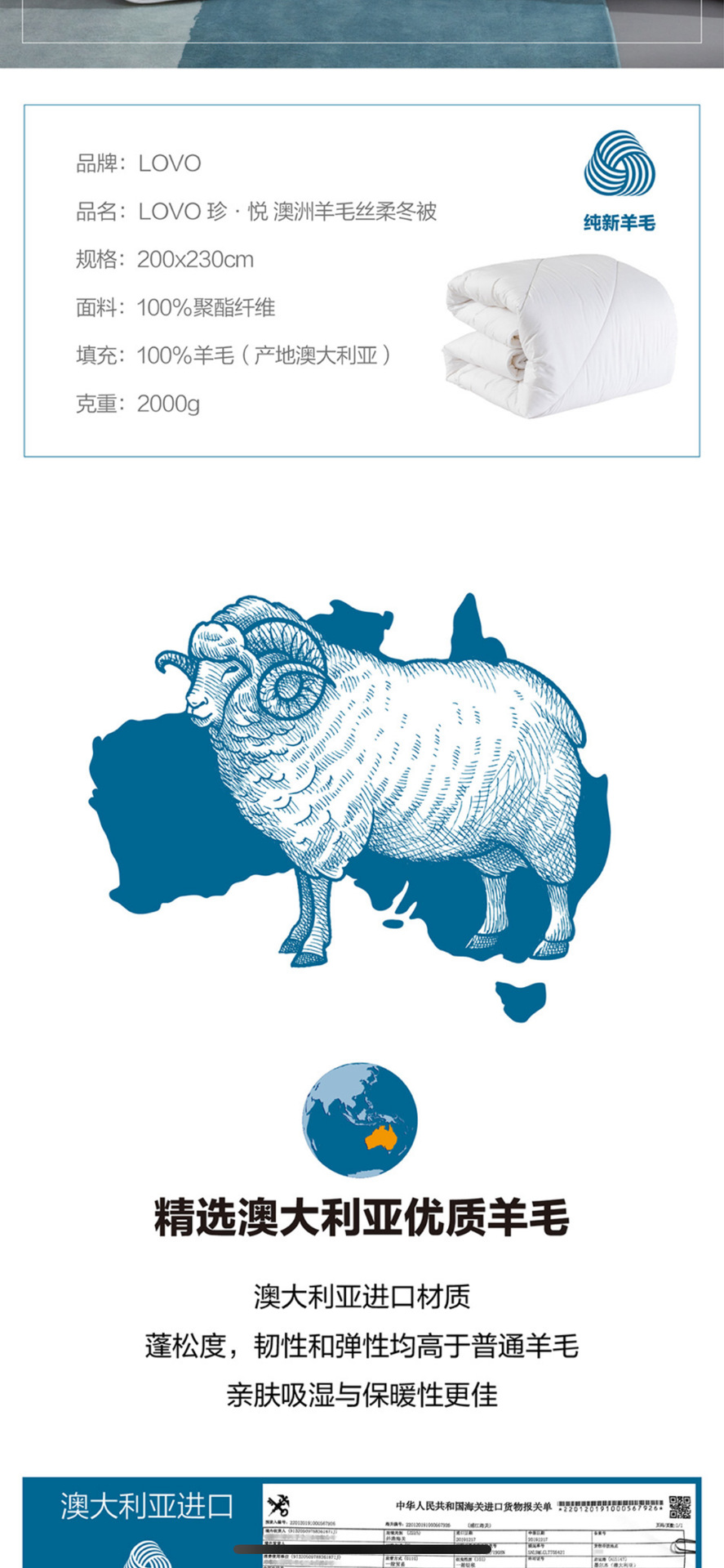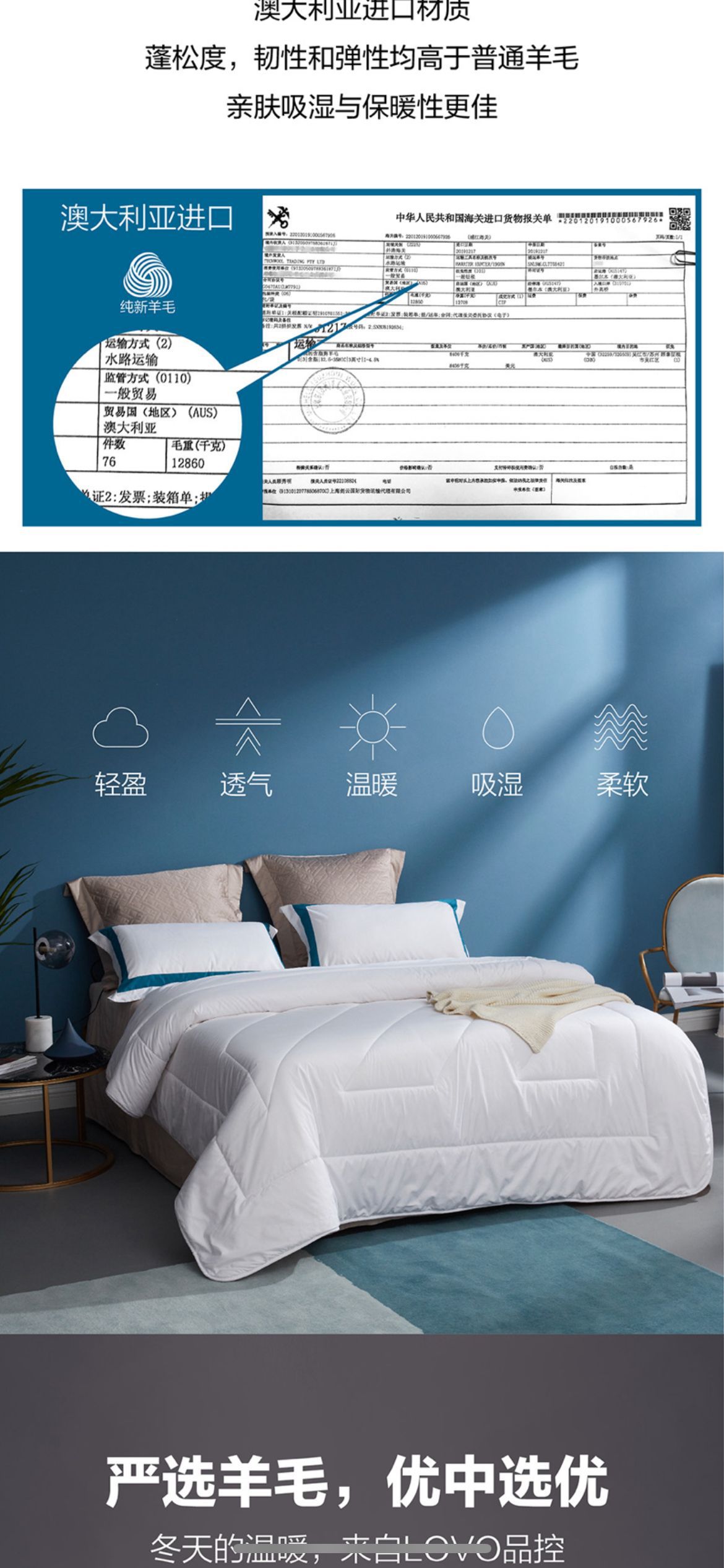 로라이 LOVO 홈텍스타일 호주산 양모 이불 100% 양모 두꺼운 겨울용 따뜻한 이불 양모 이불심 젠웨스토어 가기