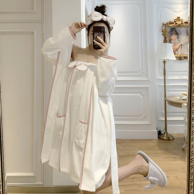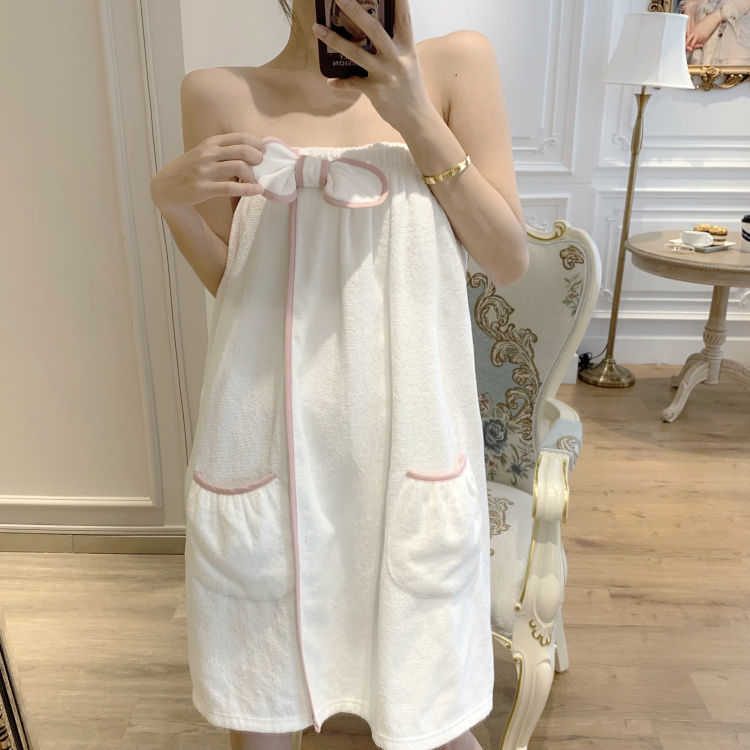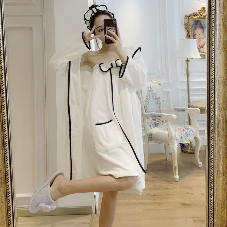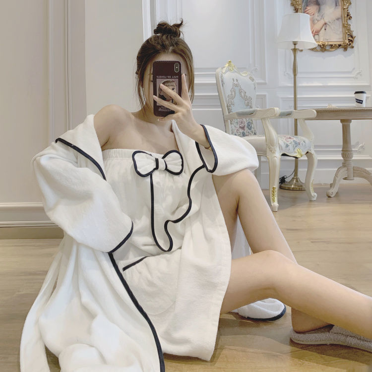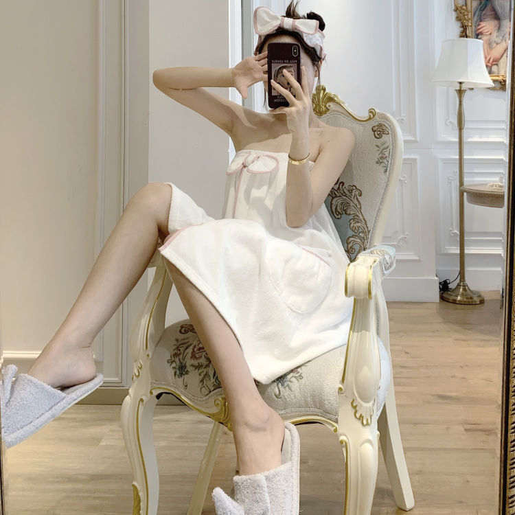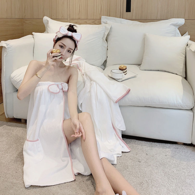새로운 스타일 목욕 타월 여성 나이트 가운 목욕 스커트 유방 포장 성인 목욕 가운 한국식 귀여운 학생 흡수성 헤어 3 피스 세트스토어 가기
