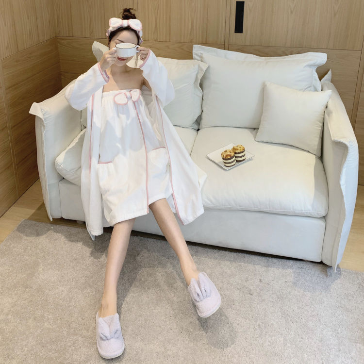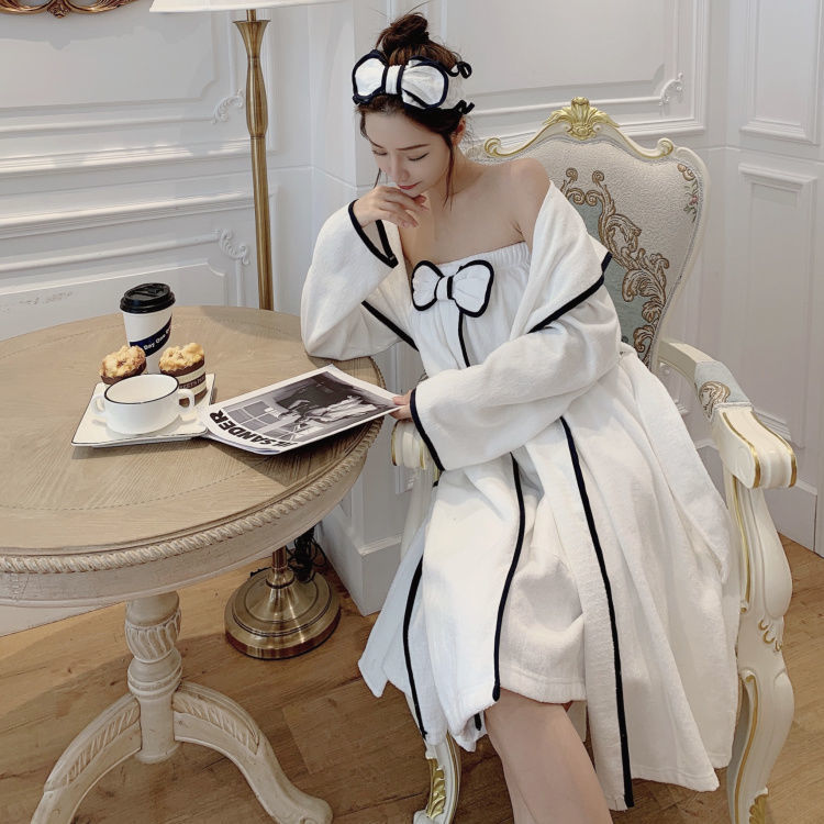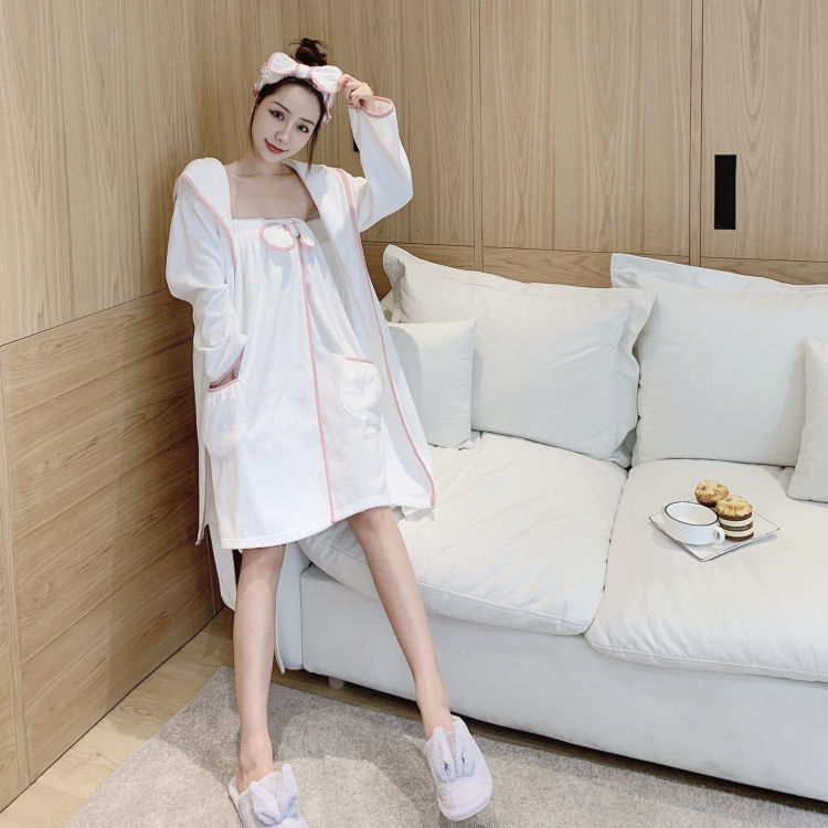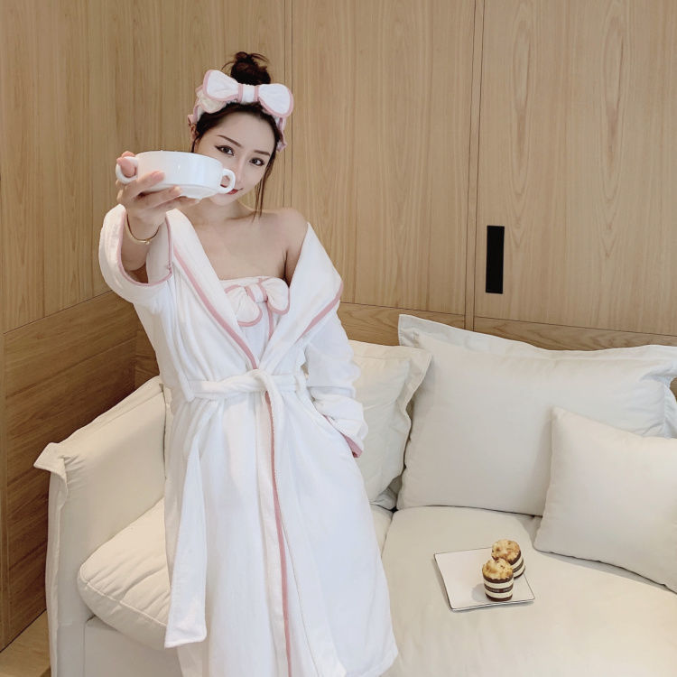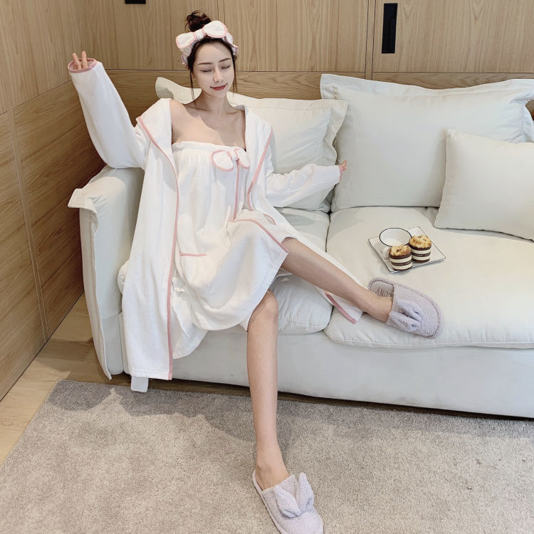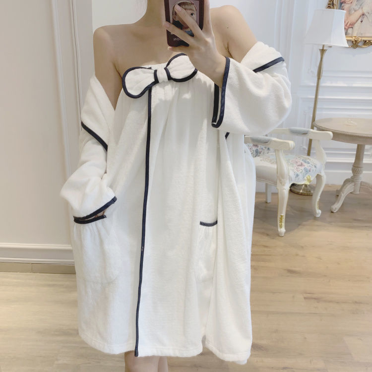새로운 스타일 목욕 타월 여성 나이트 가운 목욕 스커트 유방 포장 성인 목욕 가운 한국식 귀여운 학생 흡수성 헤어 3 피스 세트스토어 가기