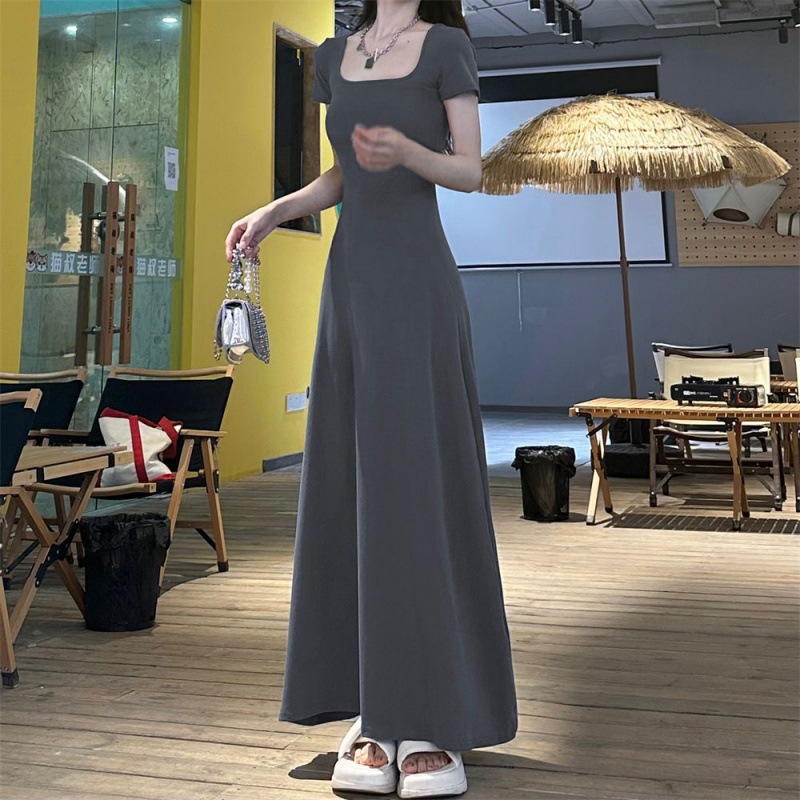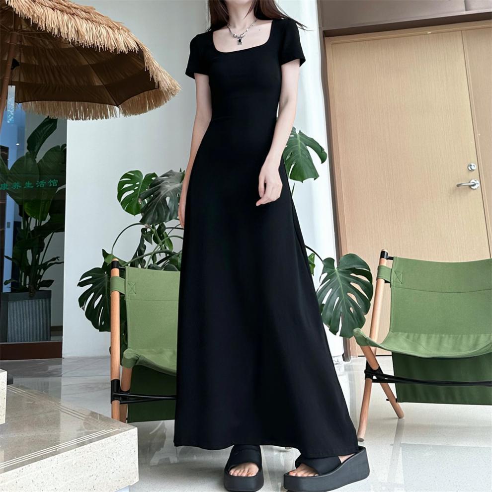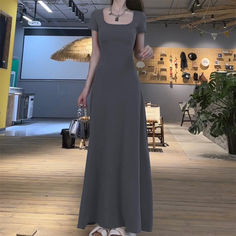 Maillard 여름 원피스 슬리밍 반팔 우아한 롱 원피스 여성 2025 새로운 슬림 핏 프랑스 허리 대형 스커트
