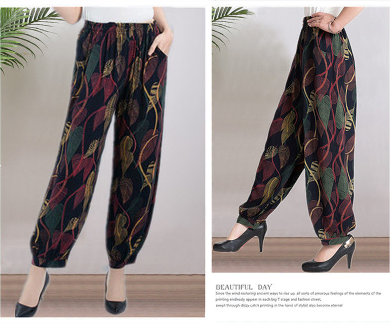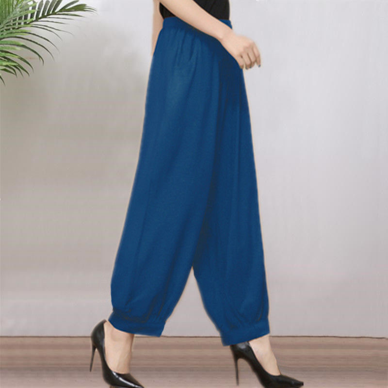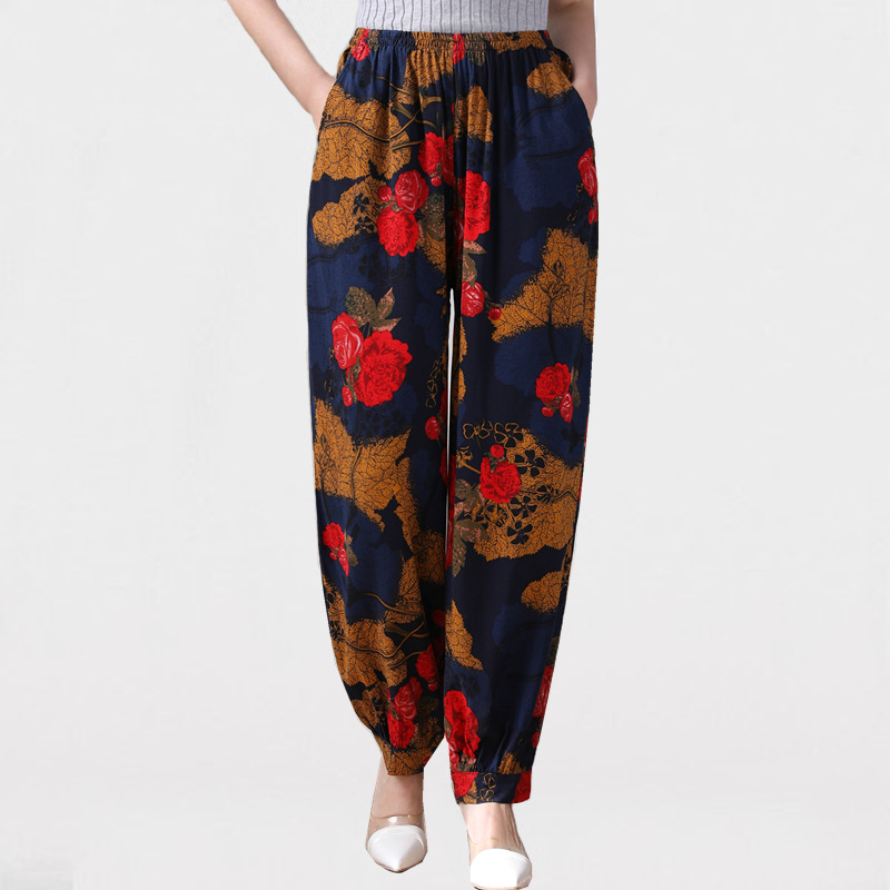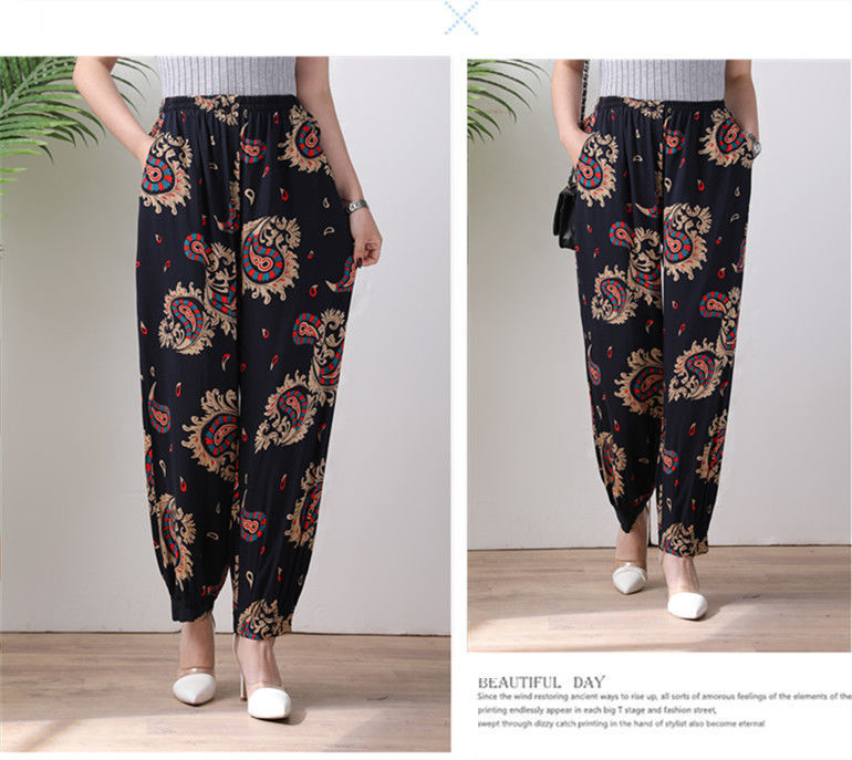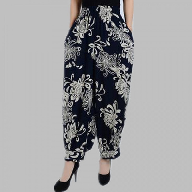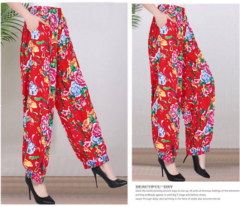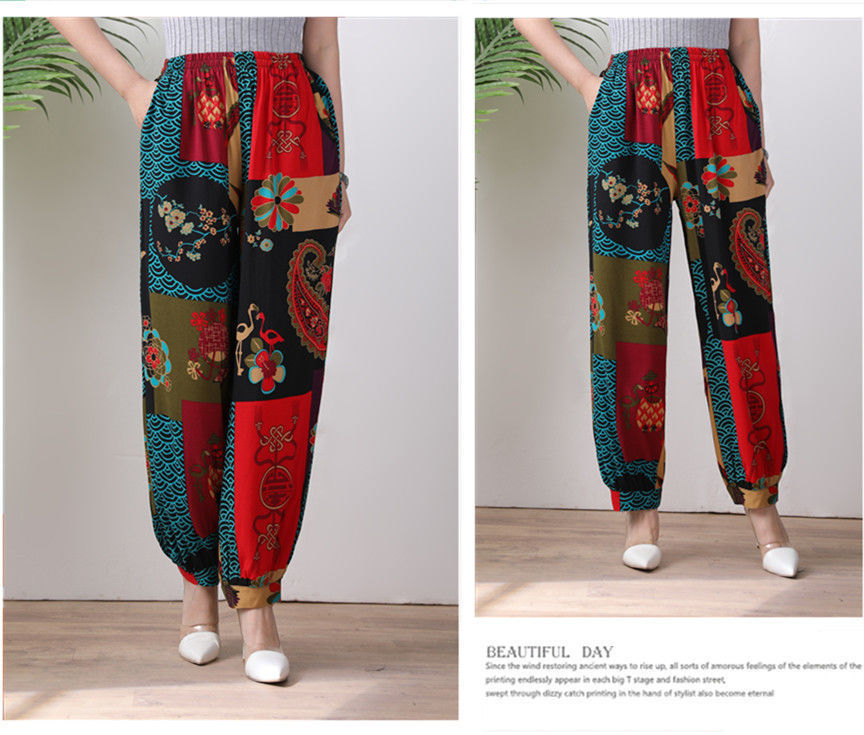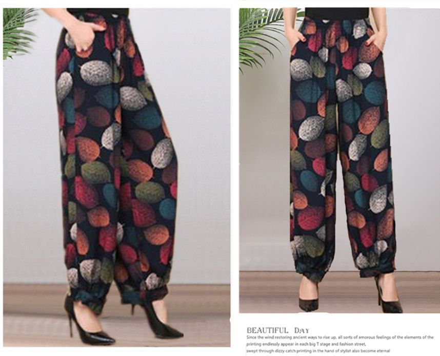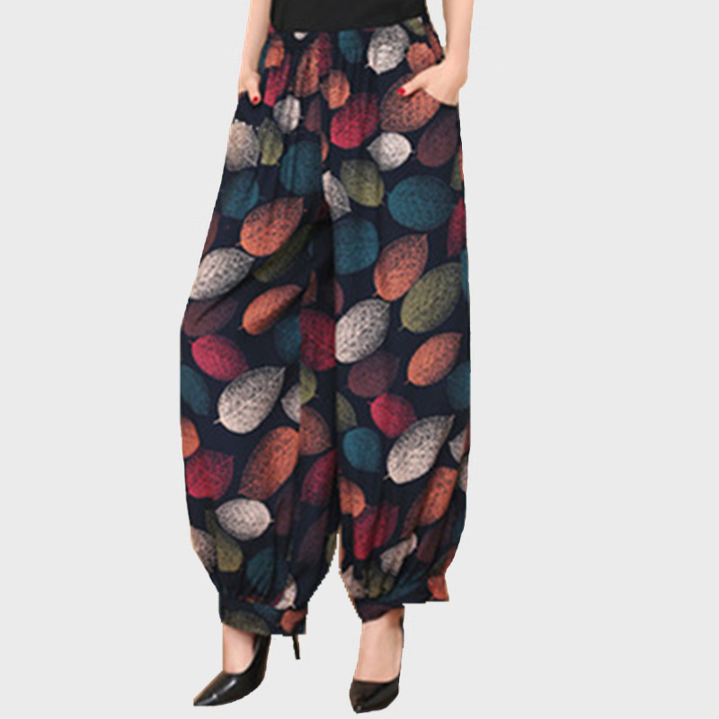 봄과 여름 광장 댄스 랜턴 바지 플러스 사이즈 윈난 넓은 다리 민족 스타일 캐주얼 어머니 코튼 실크 여성을위한 높은 허리 바지
