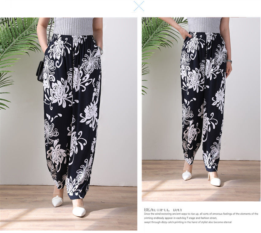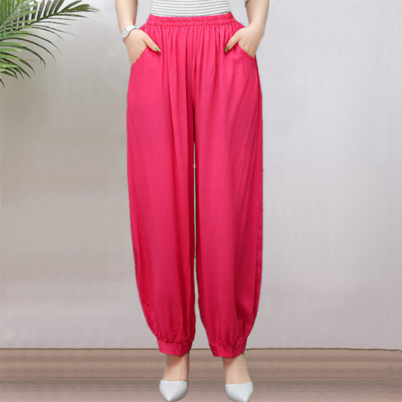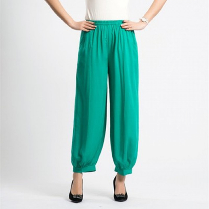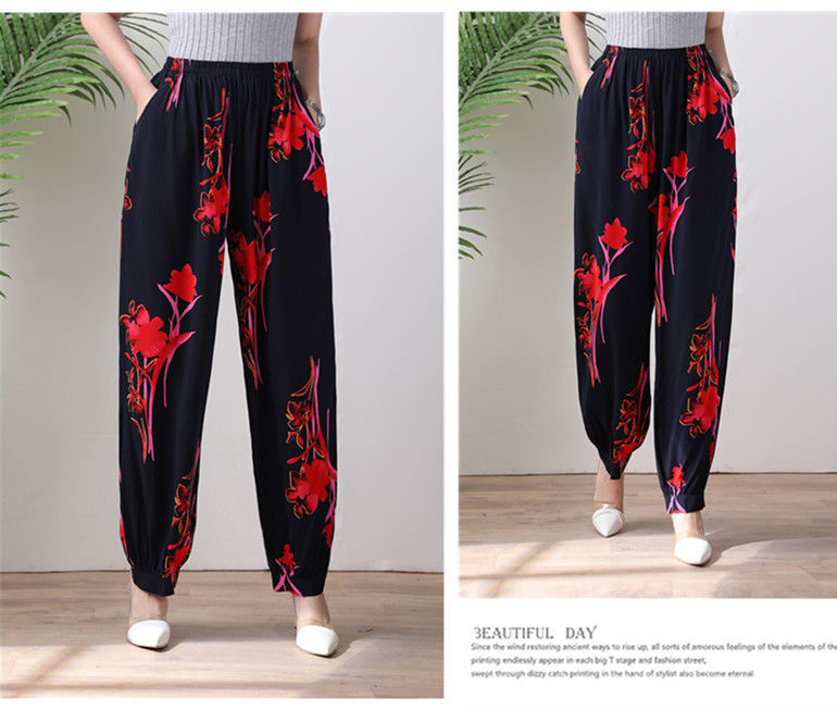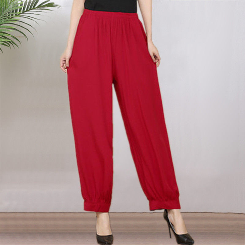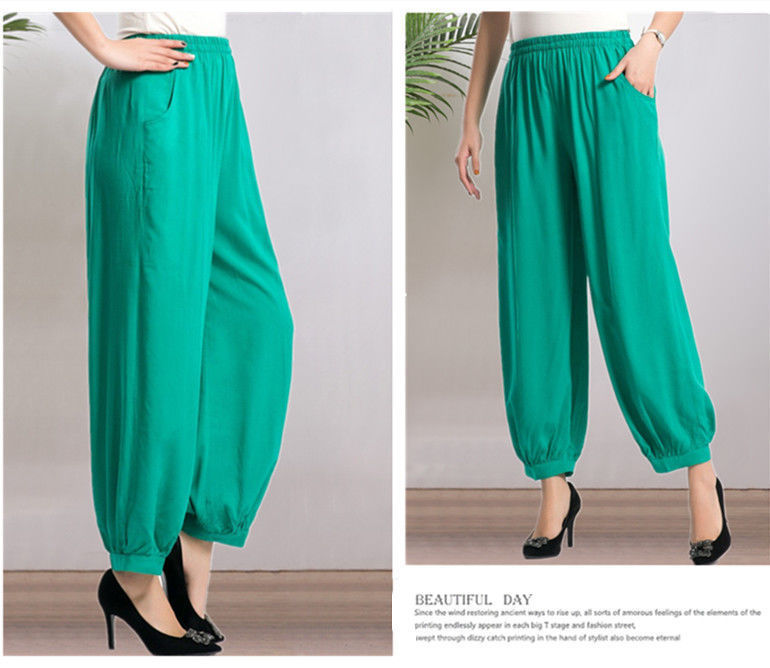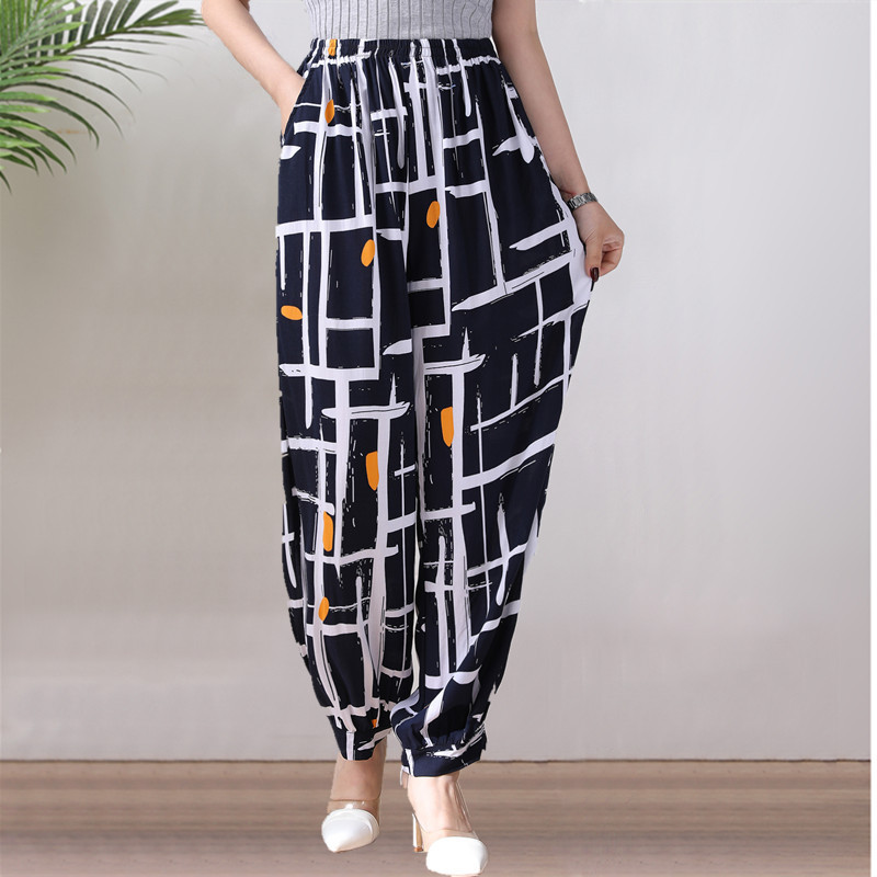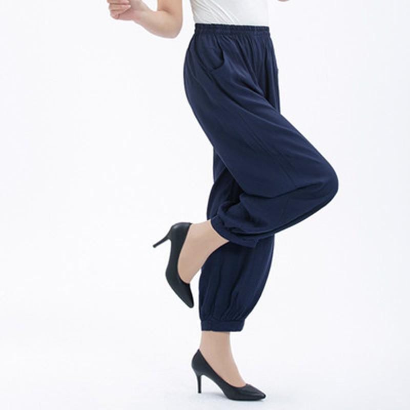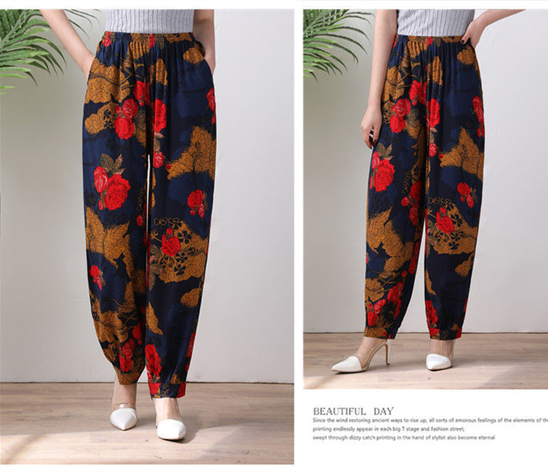 봄과 여름 광장 댄스 랜턴 바지 플러스 사이즈 윈난 넓은 다리 민족 스타일 캐주얼 어머니 코튼 실크 여성을위한 높은 허리 바지