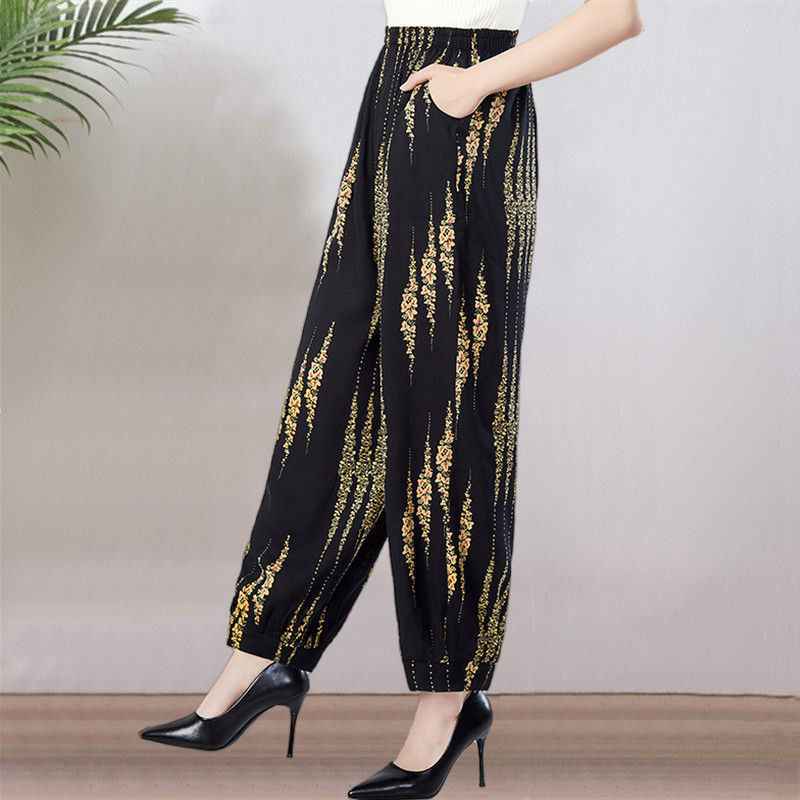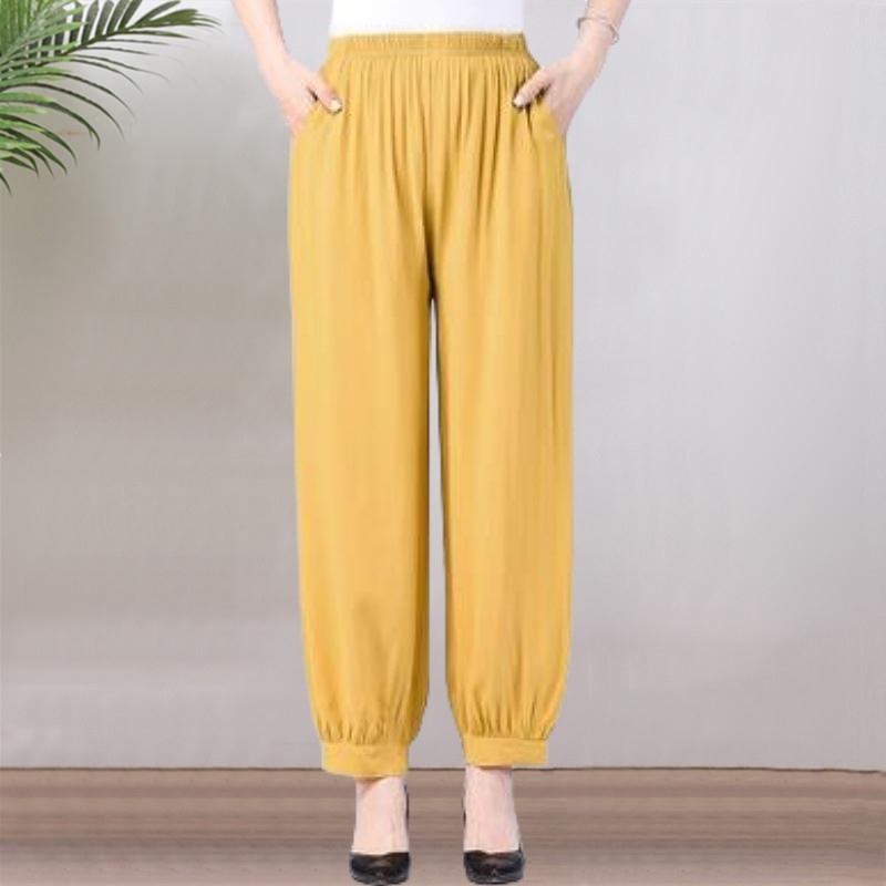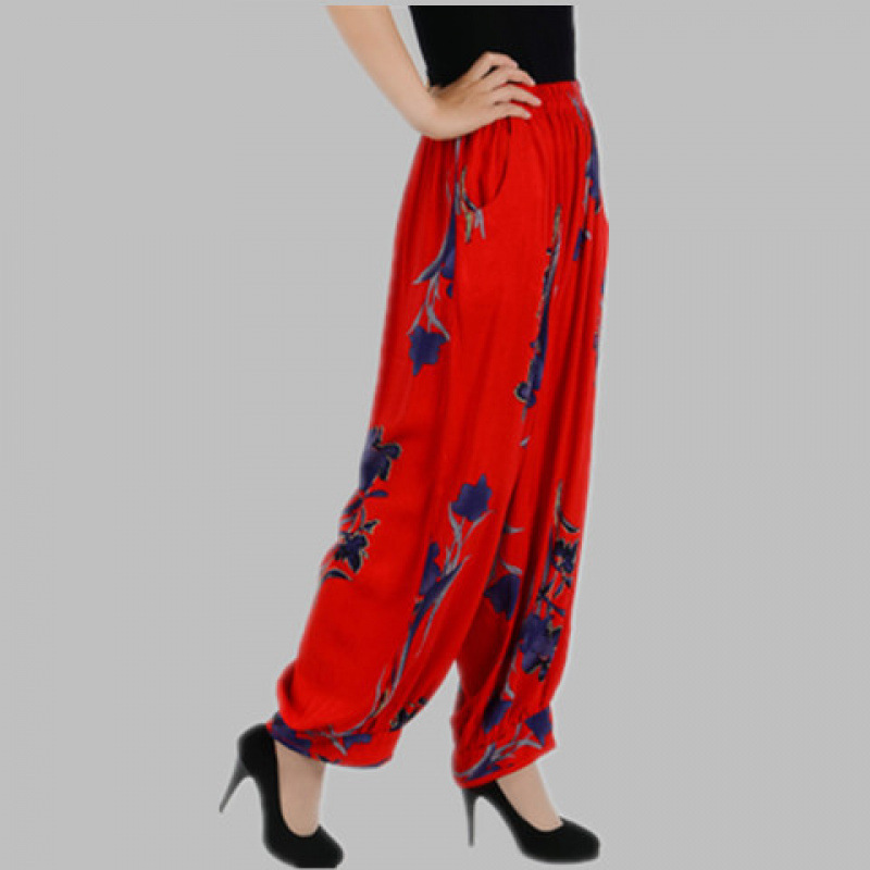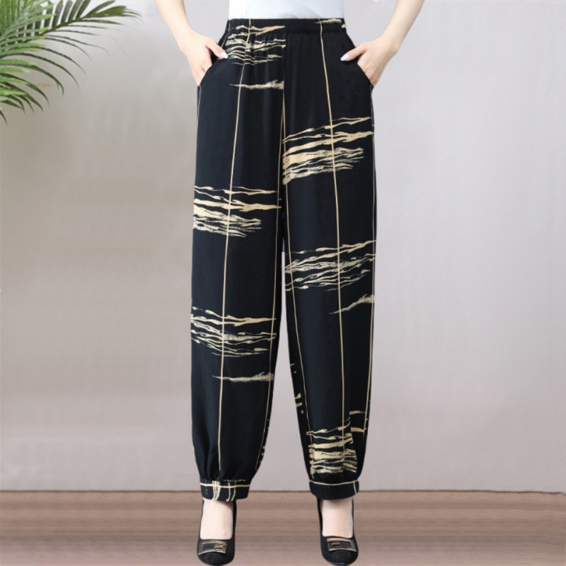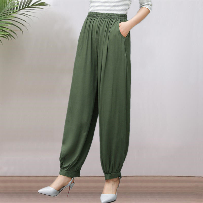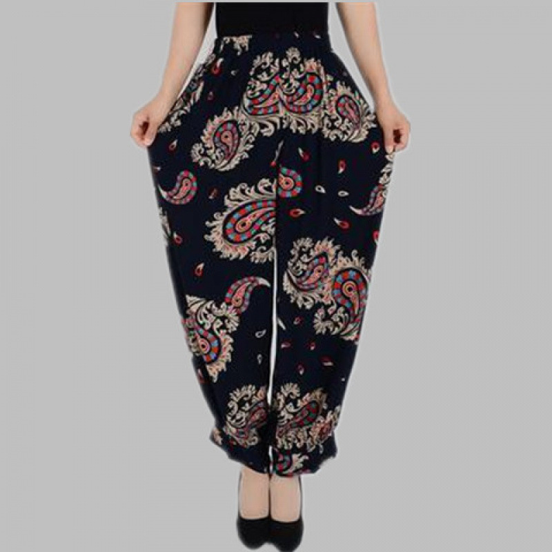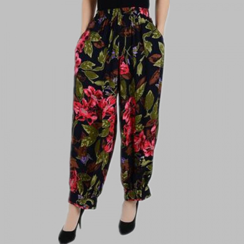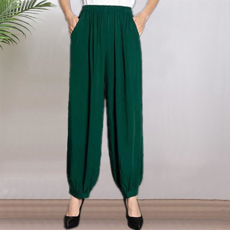 봄과 여름 광장 댄스 랜턴 바지 플러스 사이즈 윈난 넓은 다리 민족 스타일 캐주얼 어머니 코튼 실크 여성을위한 높은 허리 바지