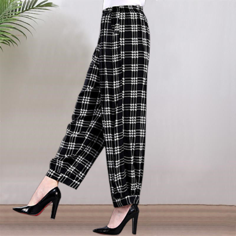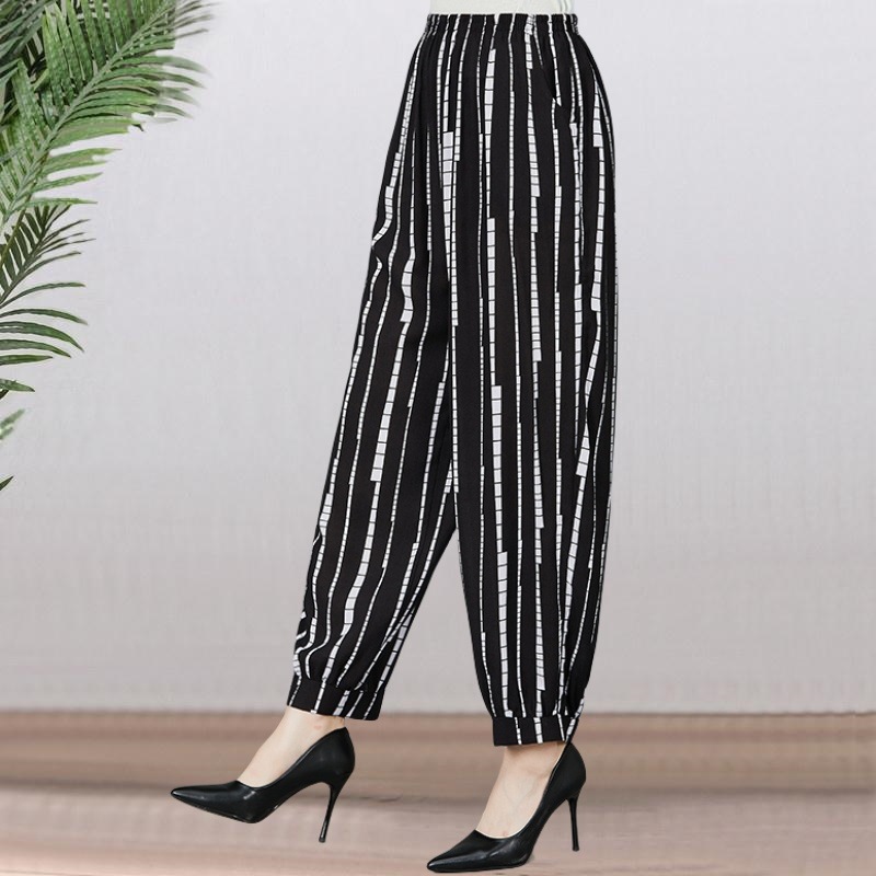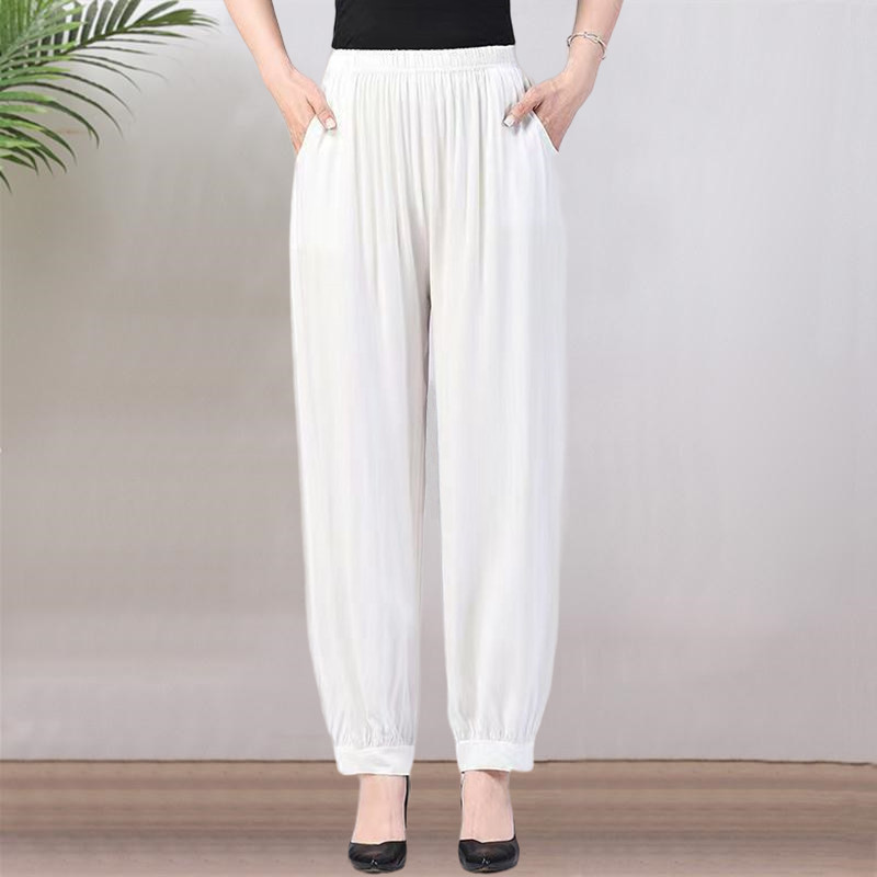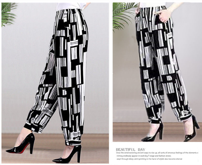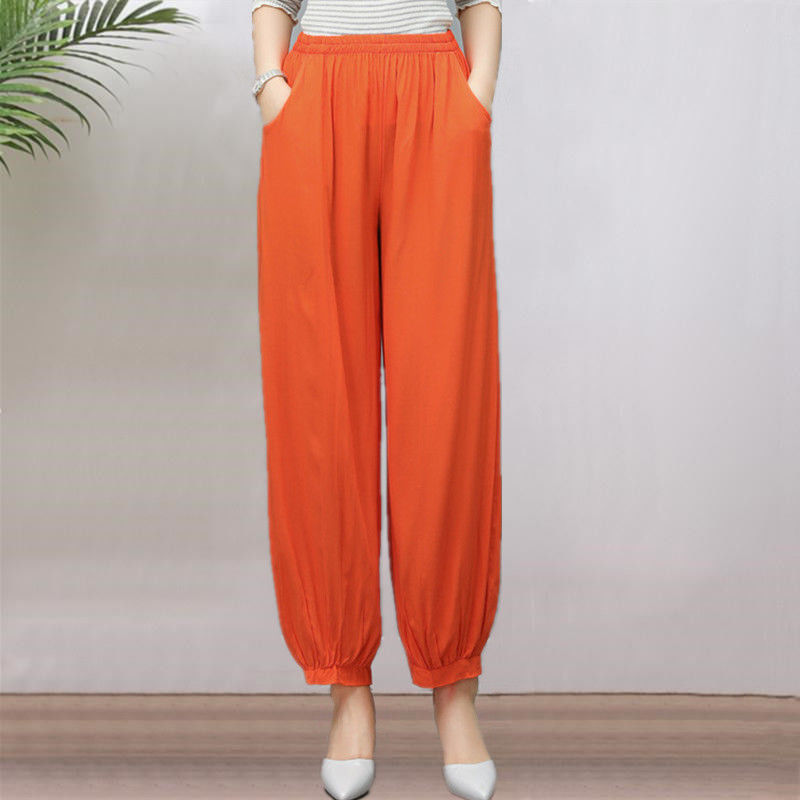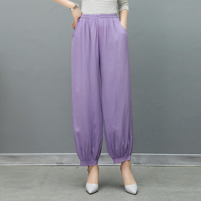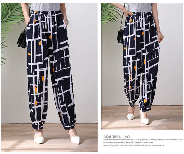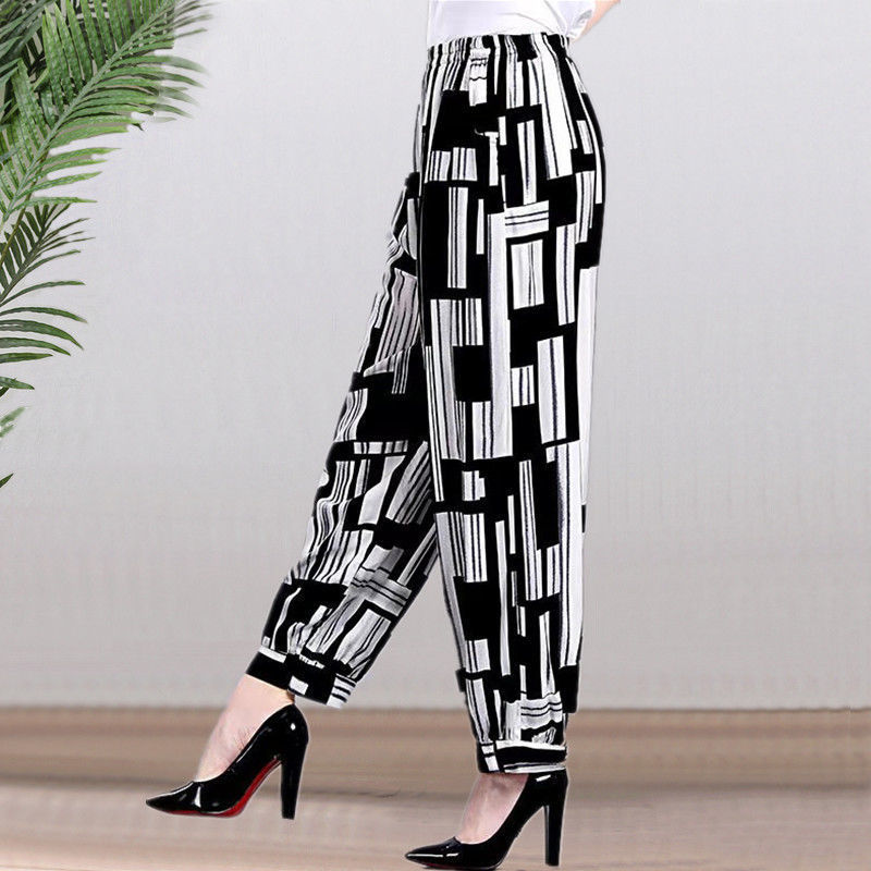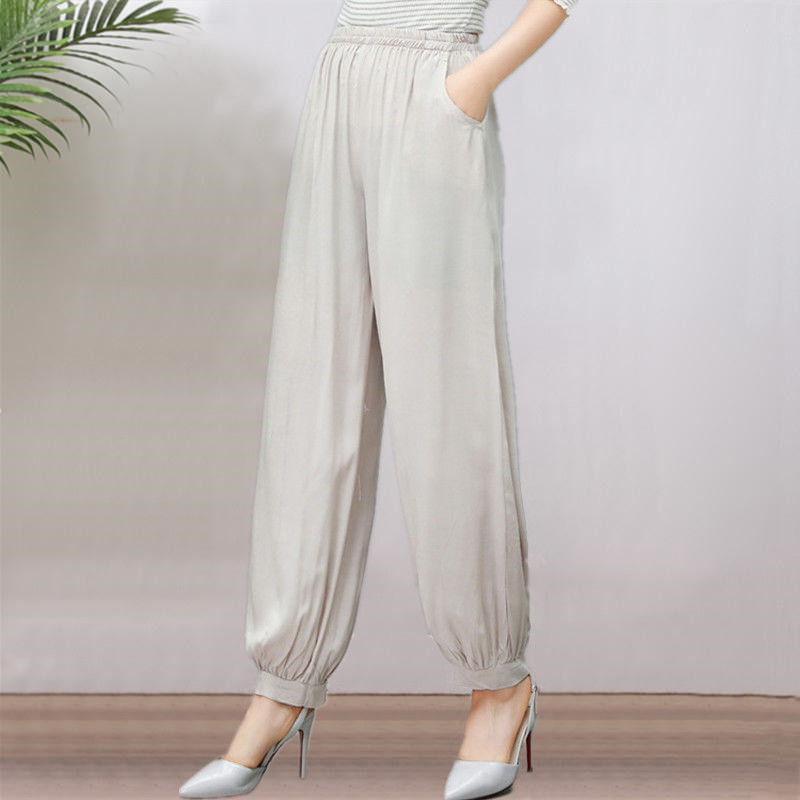 봄과 여름 광장 댄스 랜턴 바지 플러스 사이즈 윈난 넓은 다리 민족 스타일 캐주얼 어머니 코튼 실크 여성을위한 높은 허리 바지